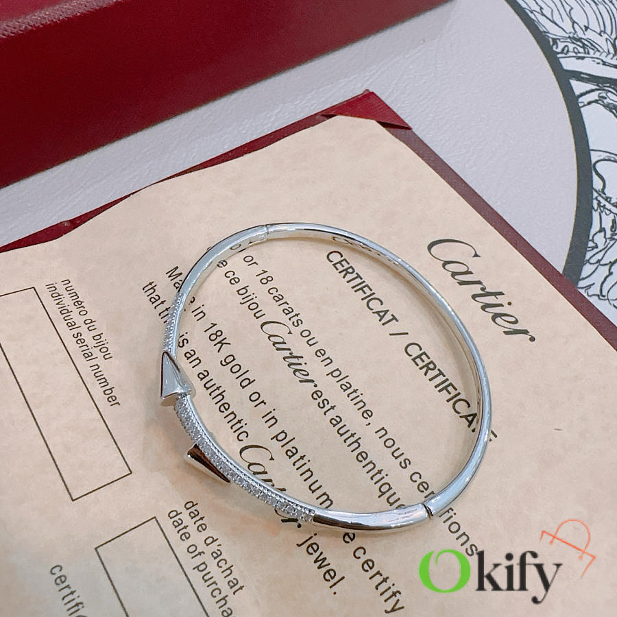 This Cartier bracelet/bangle in V gold is in perfect condition, with impeccable details and a unique, flawless luster. Adorned with a classic ring design, it is simple yet elegantly striking. The handcrafted V gold construction enhances the wearer's complexion, making it refined and captivating.