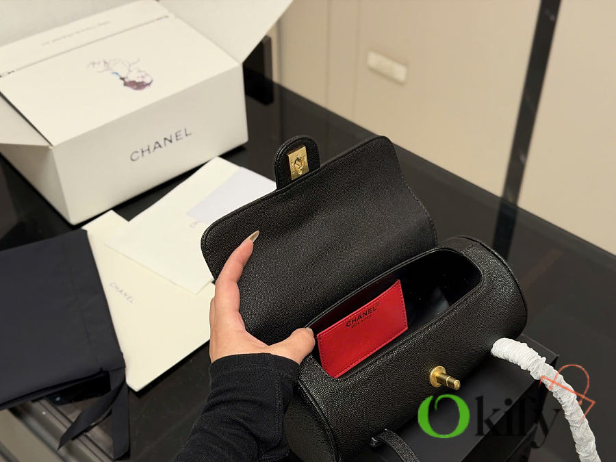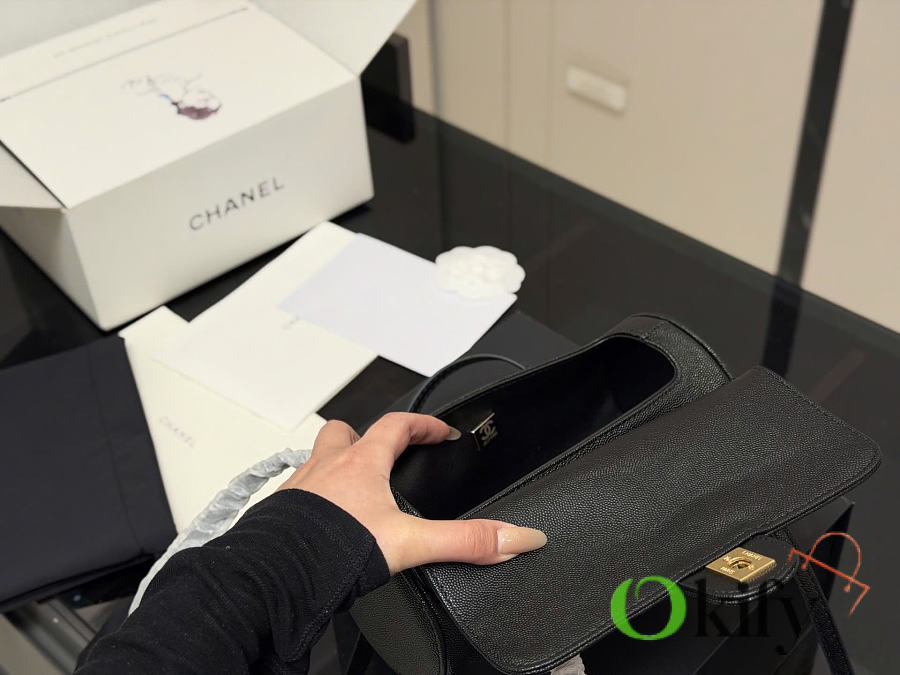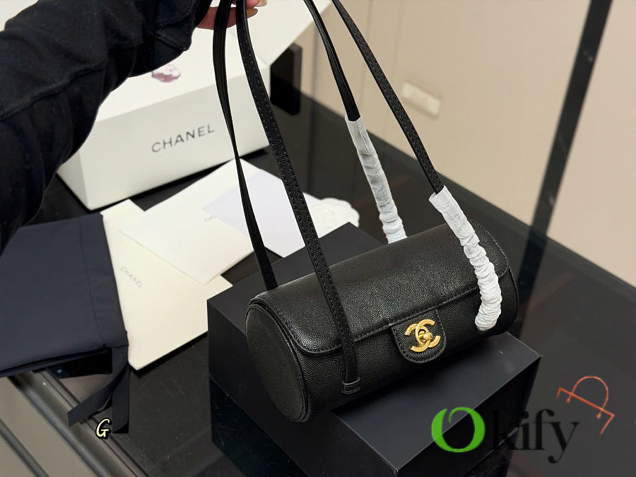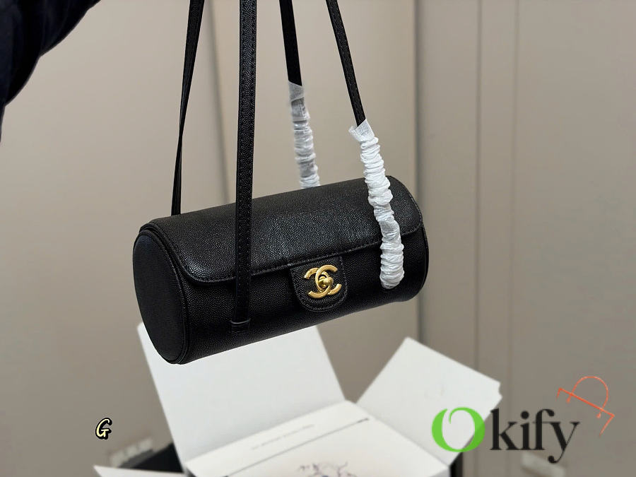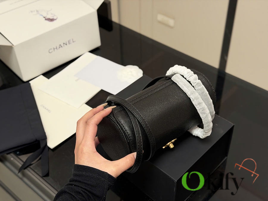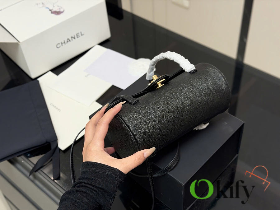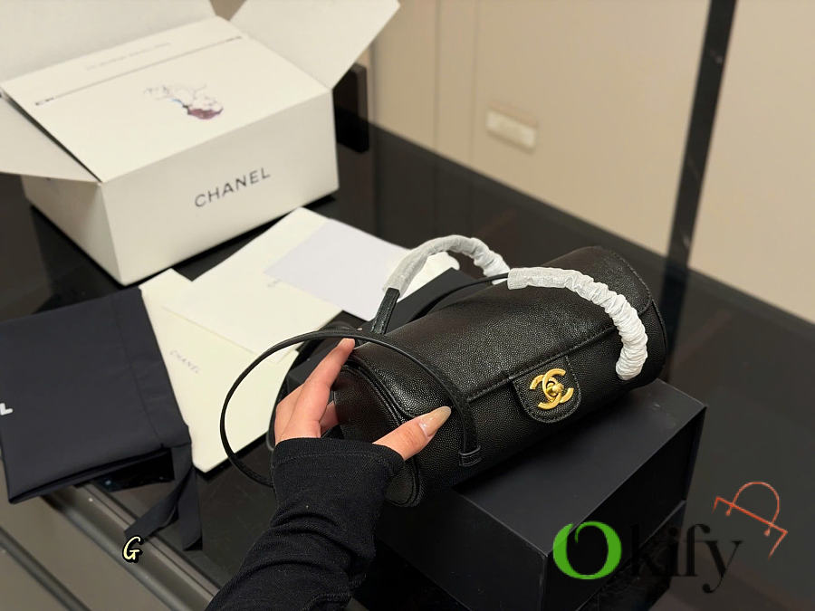 Okify CC 2026 Preppy Coco Small Bowling Bag Black Caviar 21x11cm