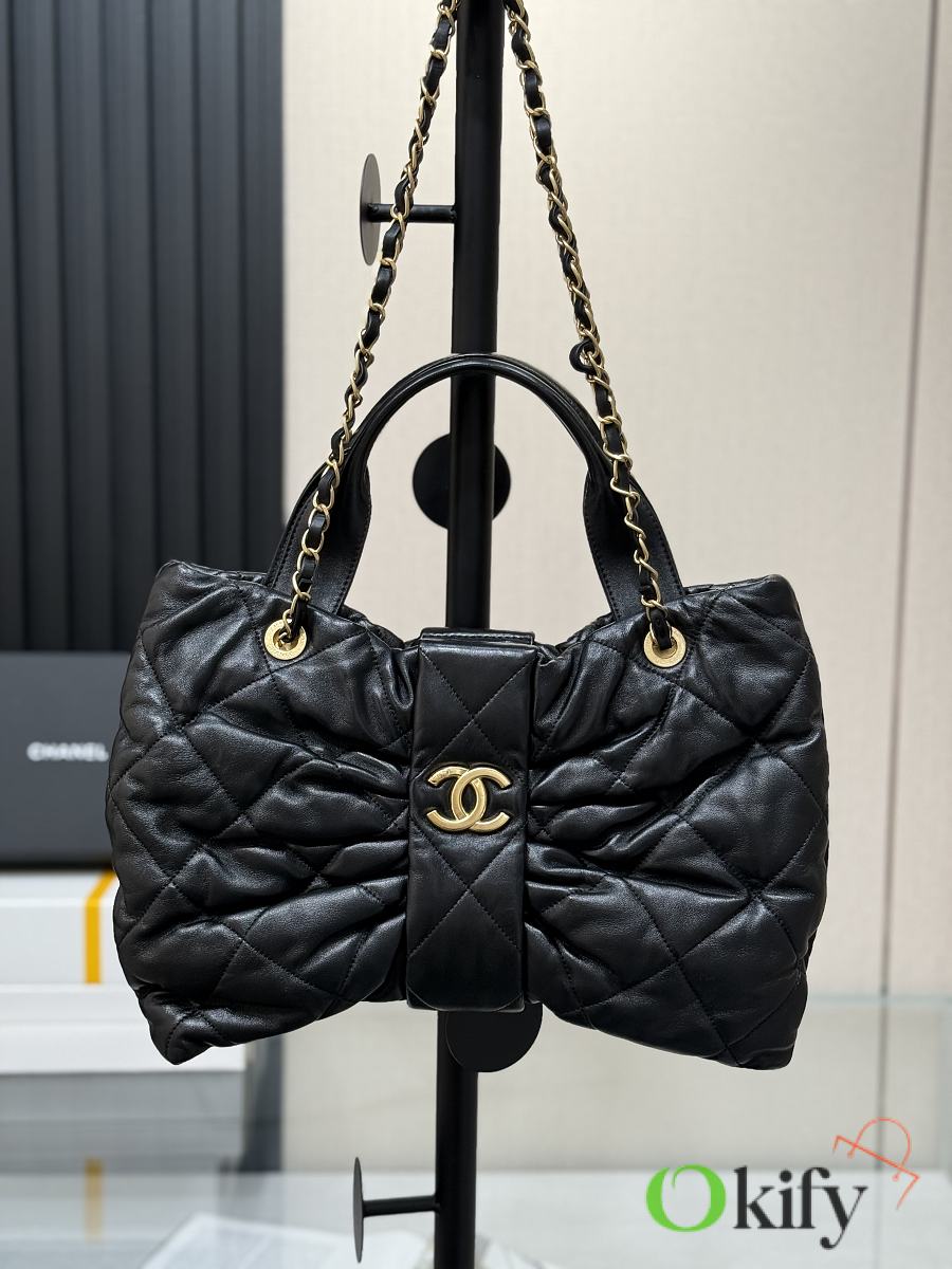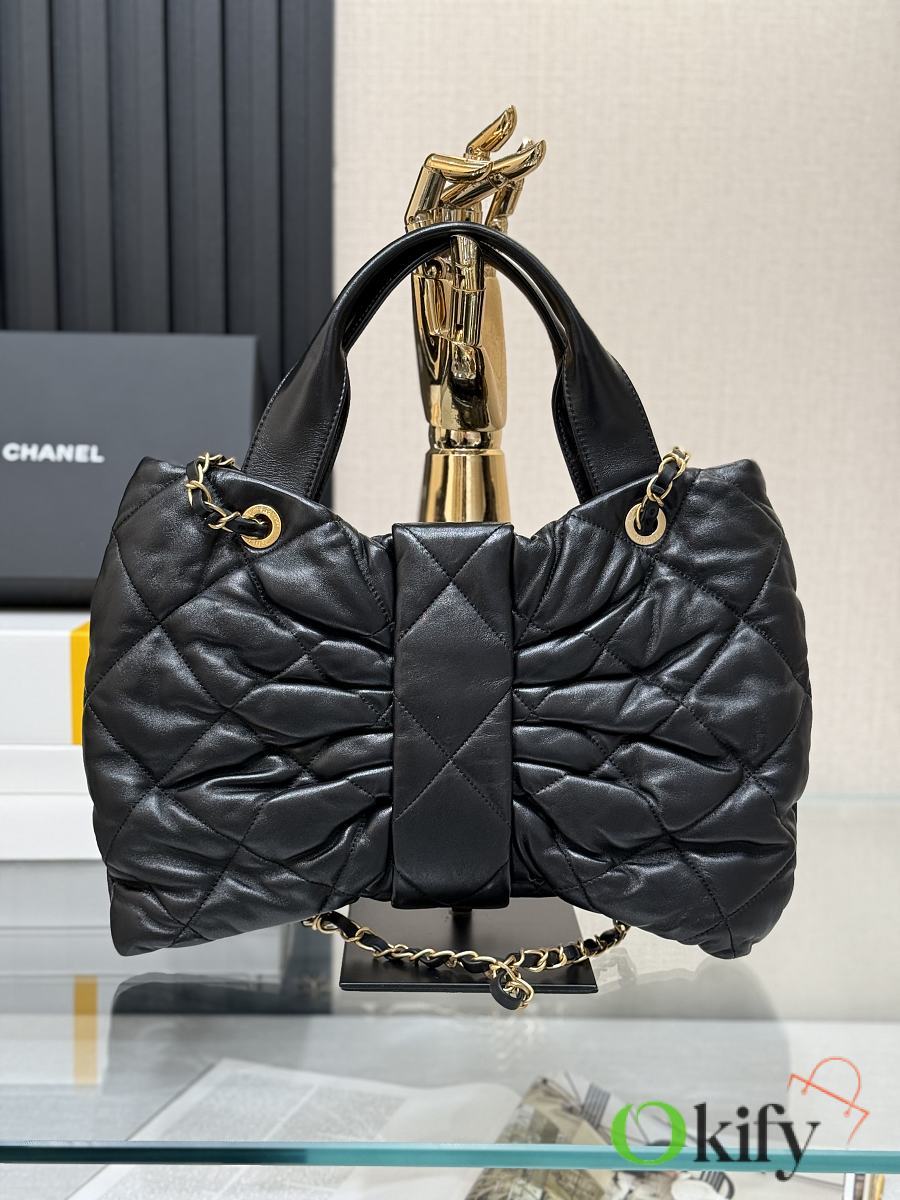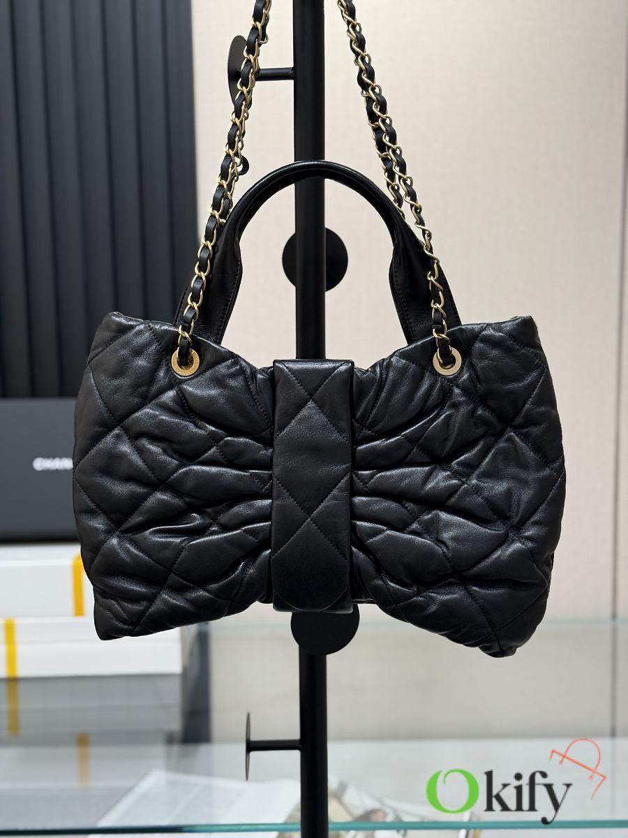 The 25K's bow design this season is so girly! Combined with a classic diamond pattern, it's both casual and sweet, giving the entire bag a sweet touch. Breaking the bag's conventional form, the bow becomes the centerpiece, not just an accessory. The double C buckle in the center is a striking accent. The sheepskin creates a fluffy, soft feel. The leather handles and metal chain drape freely, creating a sweet-cool look in a snap. It can be paired with a formal suit or a playful, cute look! It's a style enhancer for everyday wear, hahaha.