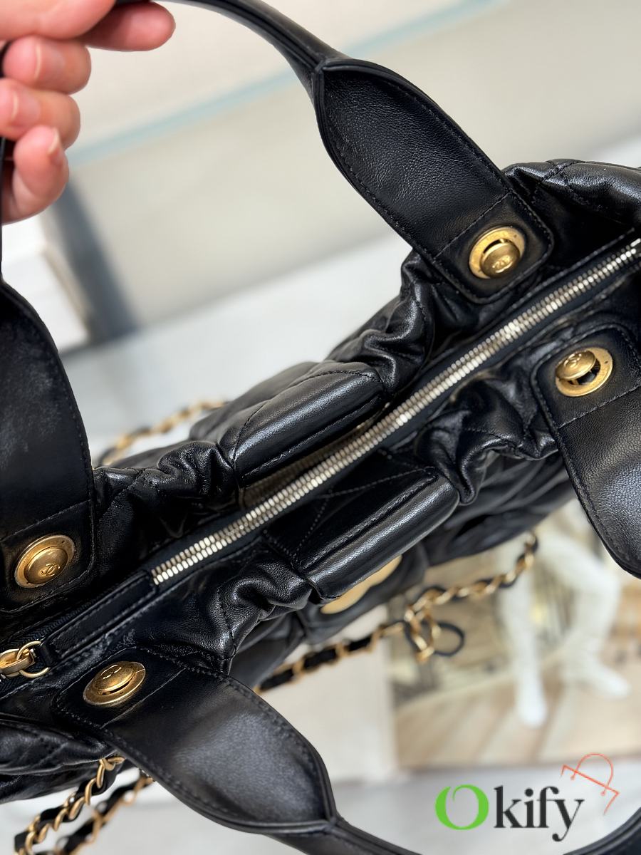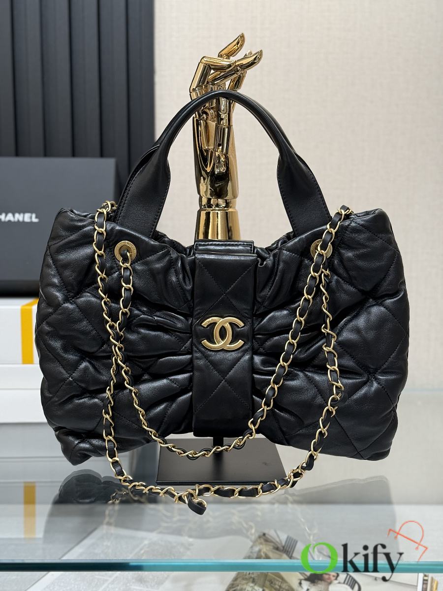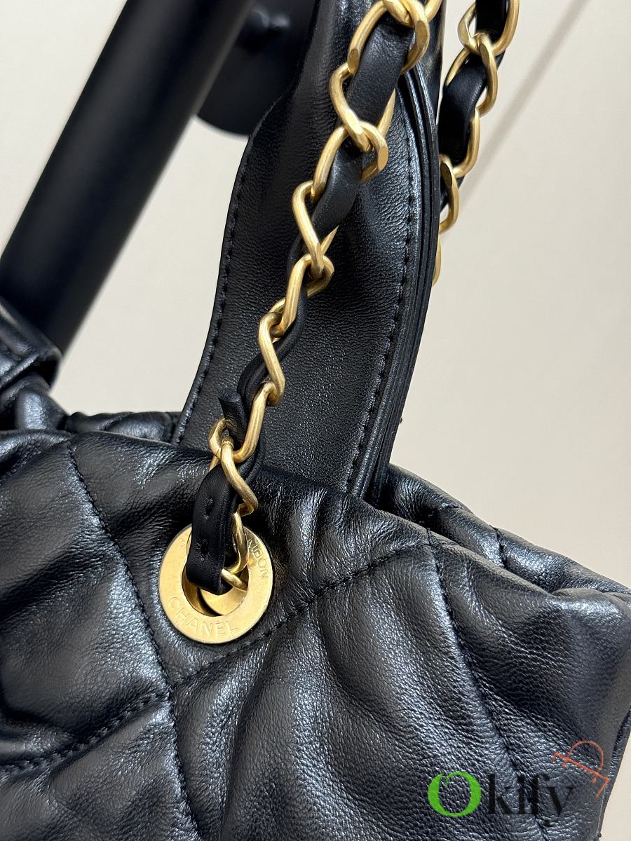 The 25K's bow design this season is so girly! Combined with a classic diamond pattern, it's both casual and sweet, giving the entire bag a sweet touch. Breaking the bag's conventional form, the bow becomes the centerpiece, not just an accessory. The double C buckle in the center is a striking accent. The sheepskin creates a fluffy, soft feel. The leather handles and metal chain drape freely, creating a sweet-cool look in a snap. It can be paired with a formal suit or a playful, cute look! It's a style enhancer for everyday wear, hahaha.