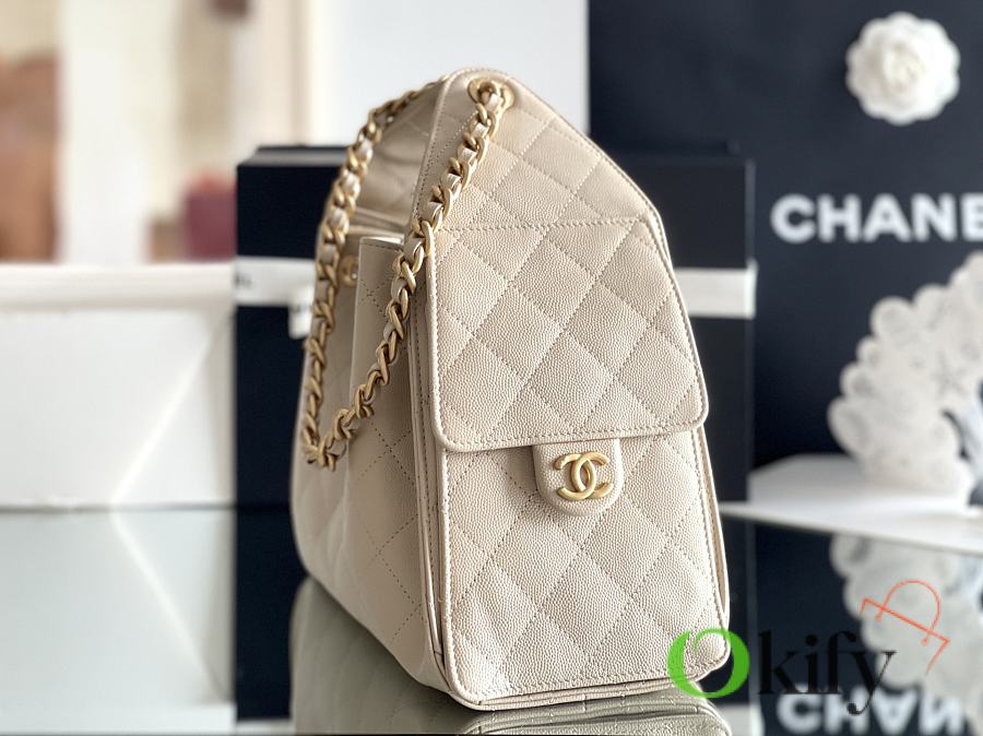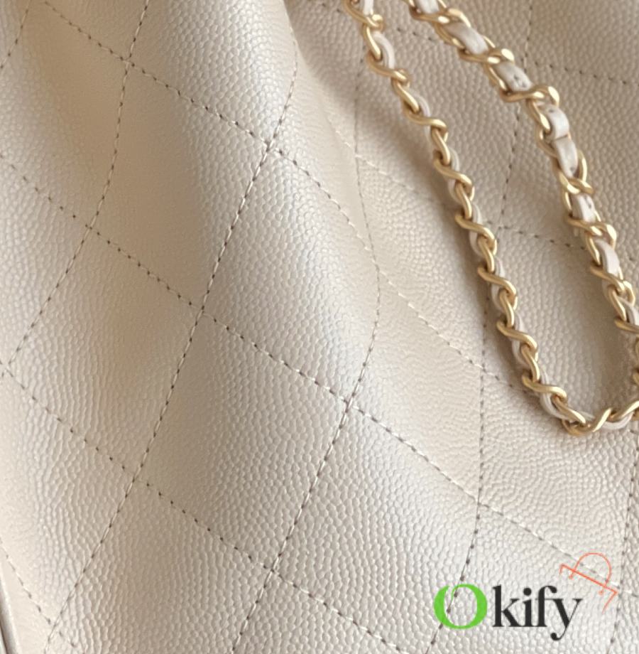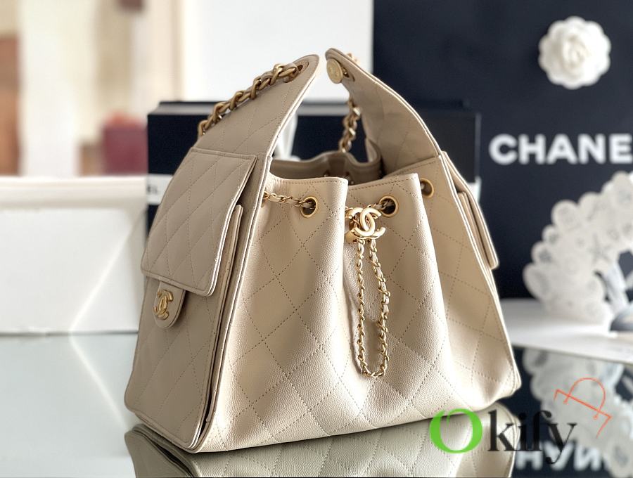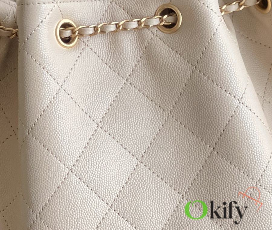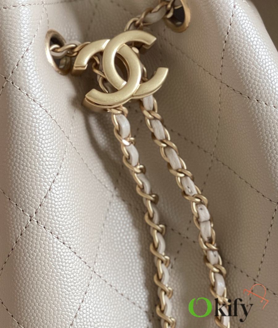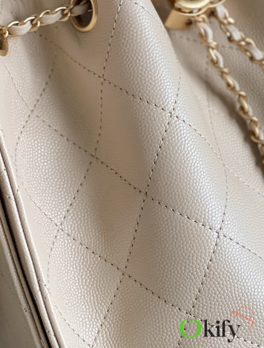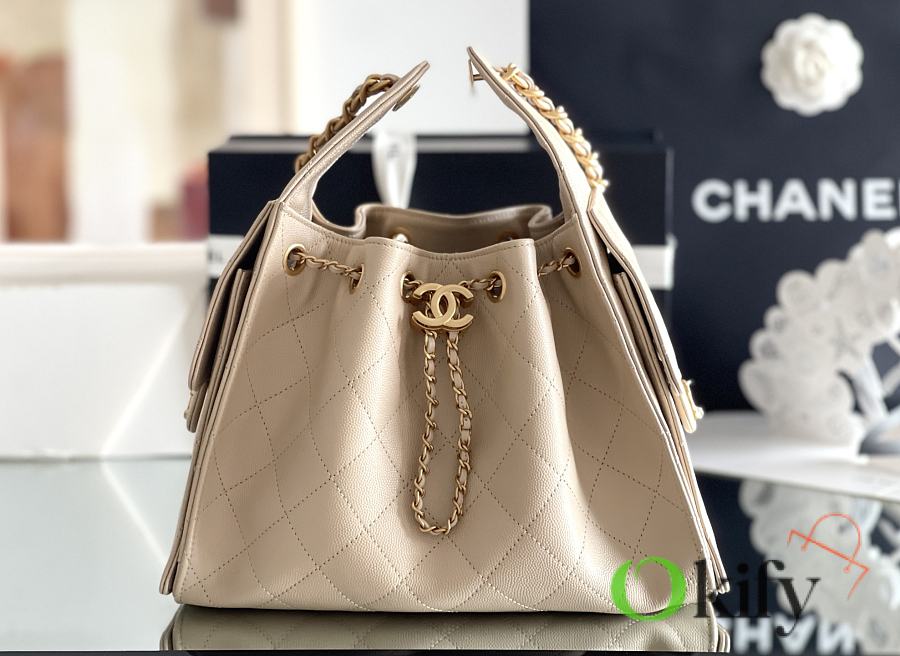 Original small ball grain cowhide! Apricot Show model, the real thing is very beautiful, very cool and beautiful Retro gold coin button drawstring bucket bag Classic diamond pattern retro old chain design