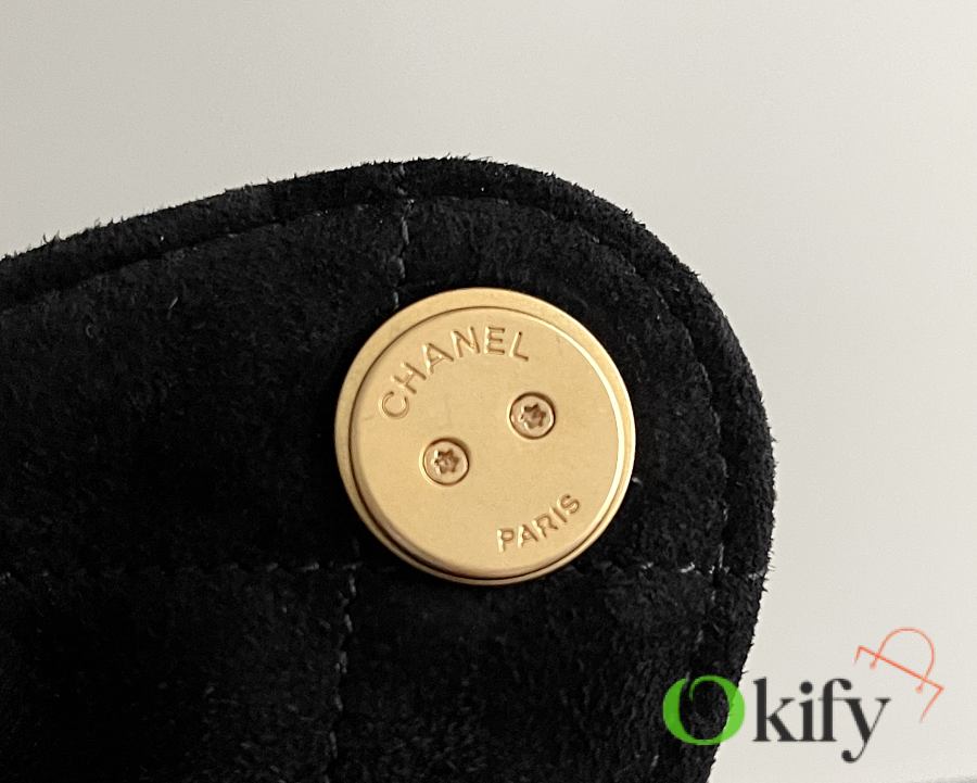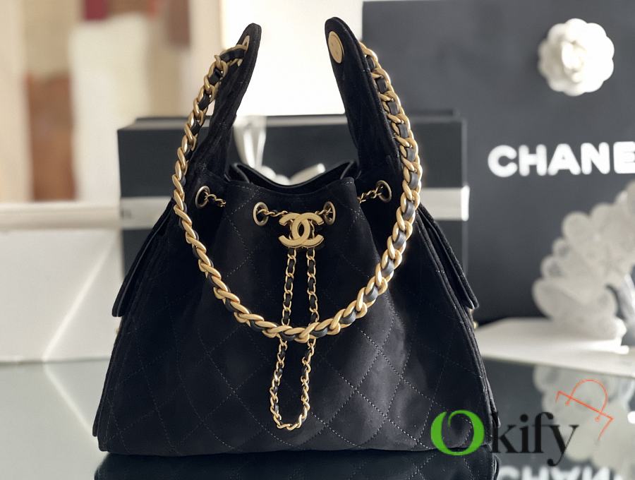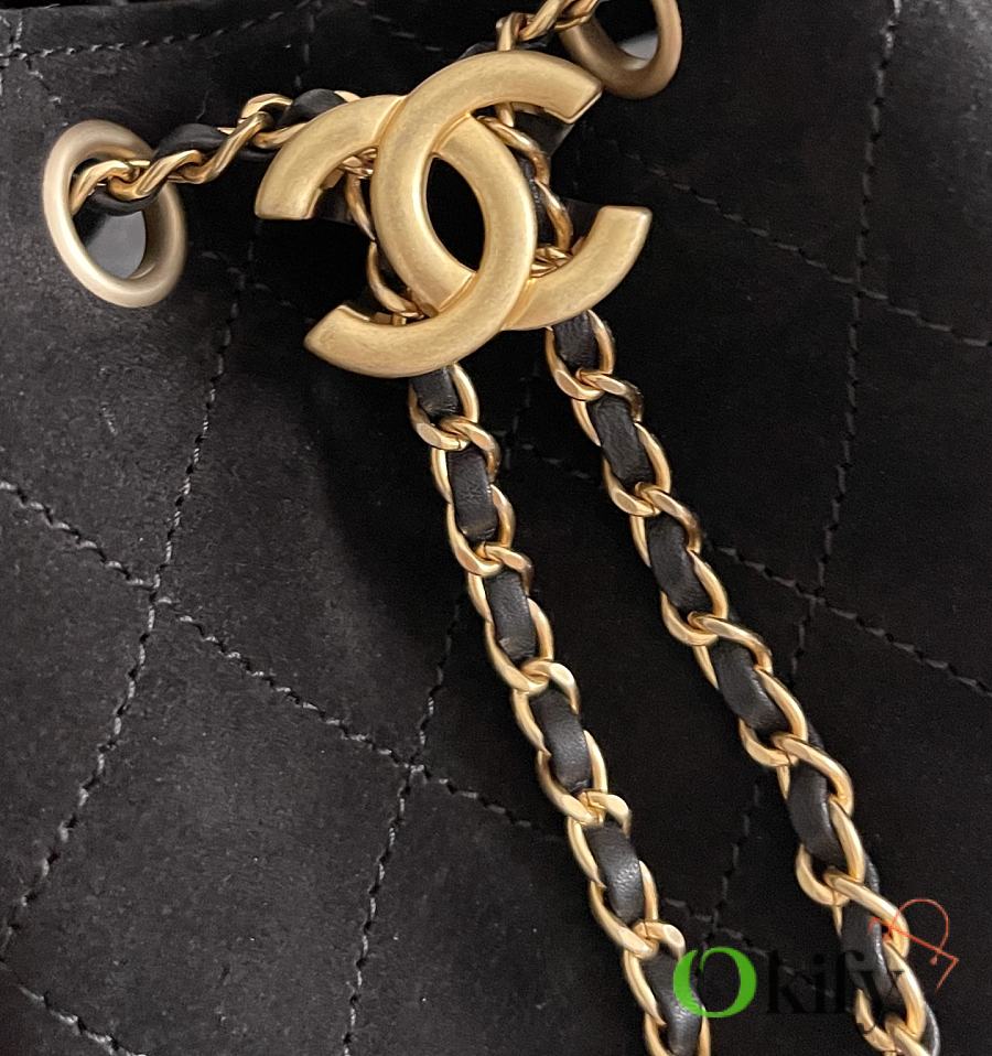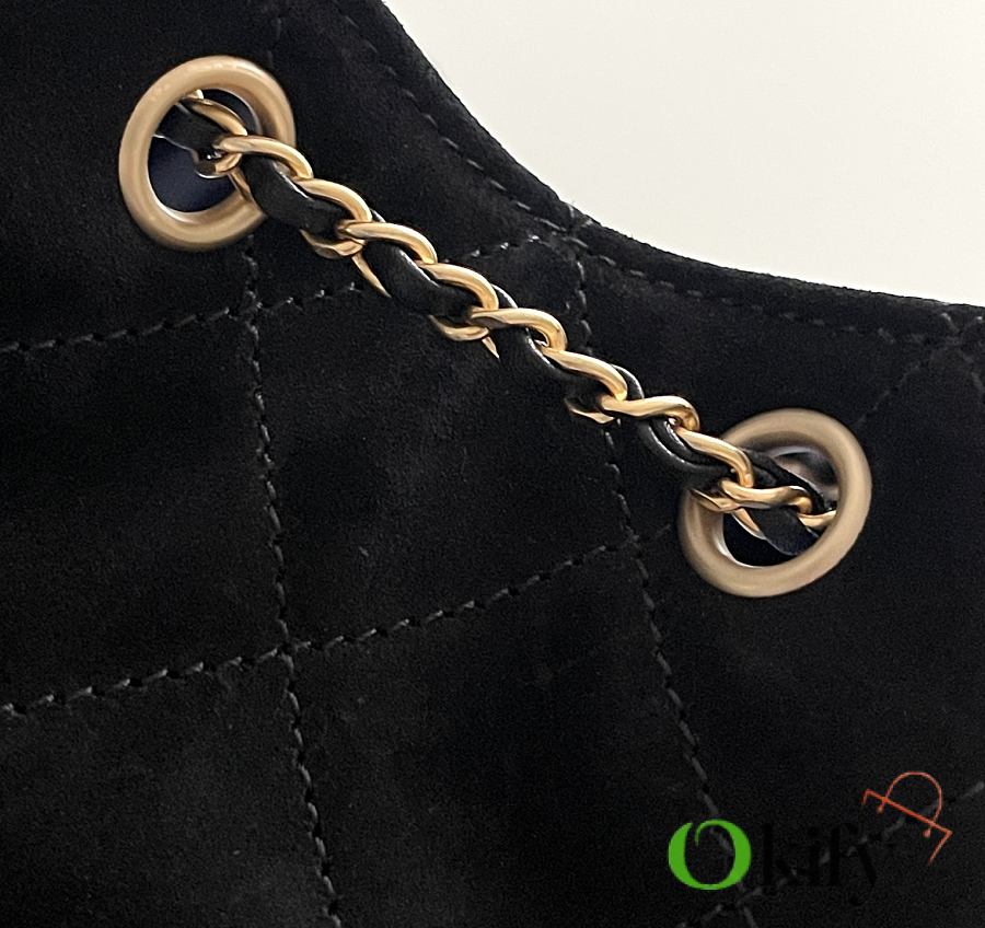 Limited Edition Calfskin Suede! Black Show model, the real thing is very beautiful, very cool and beautiful Retro gold coin button drawstring bucket bag Classic diamond pattern retro old chain design