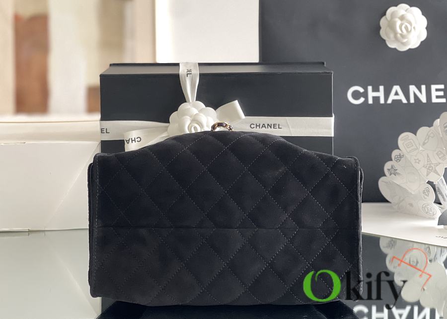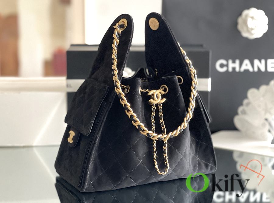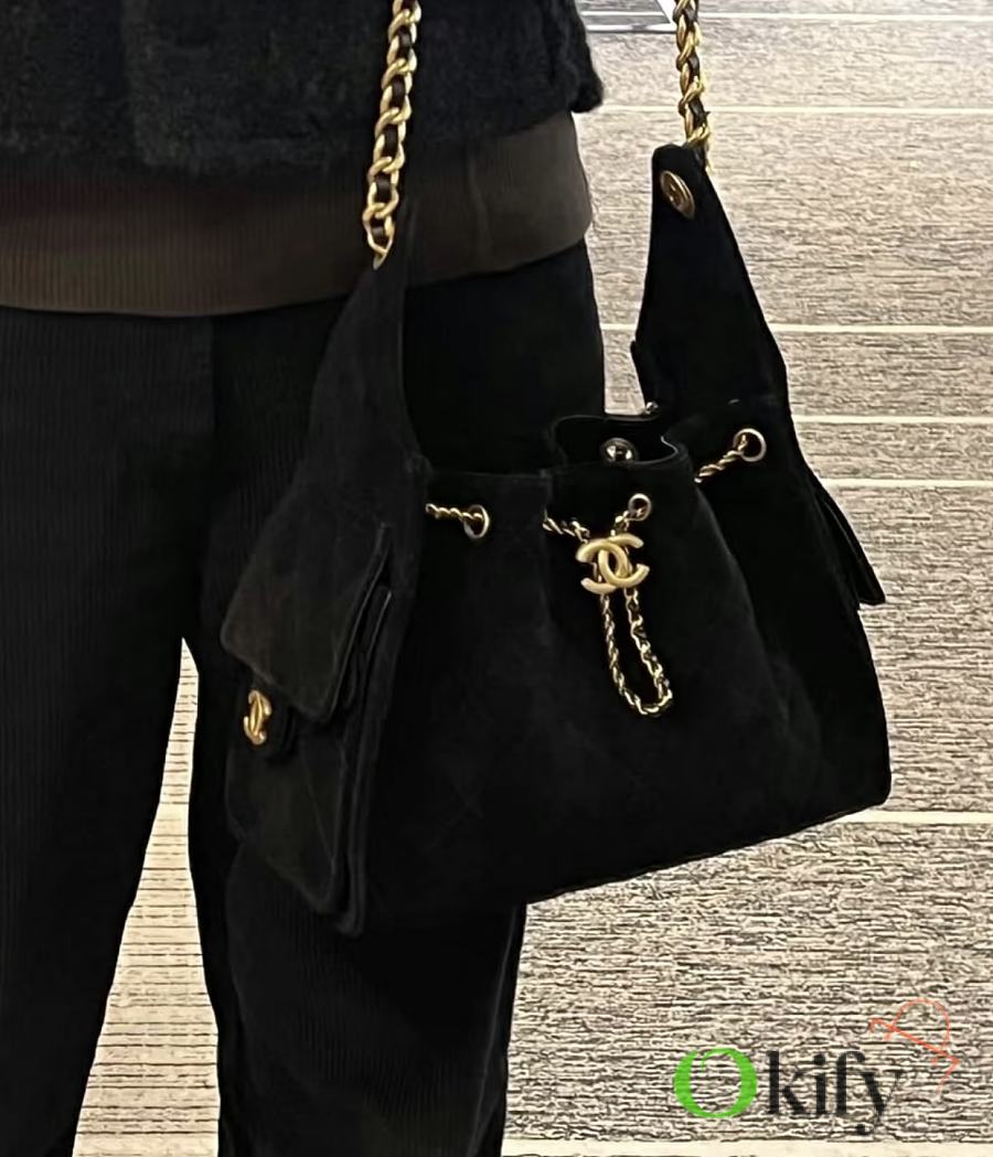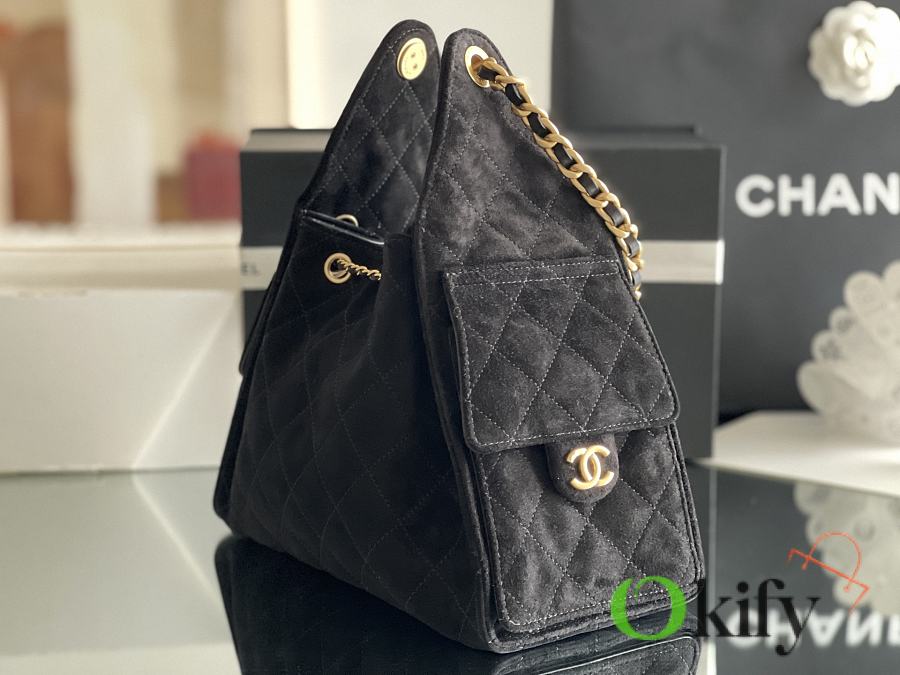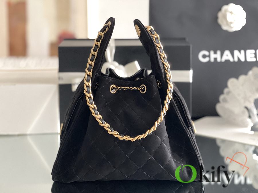 Limited Edition Calfskin Suede! Black Show model, the real thing is very beautiful, very cool and beautiful Retro gold coin button drawstring bucket bag Classic diamond pattern retro old chain design