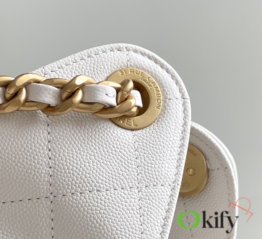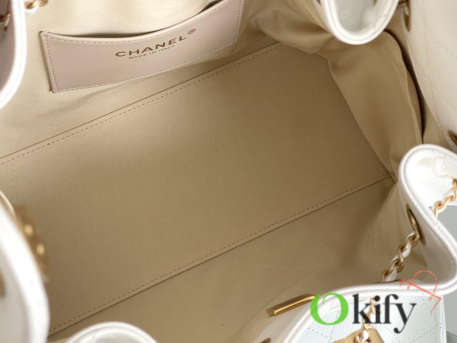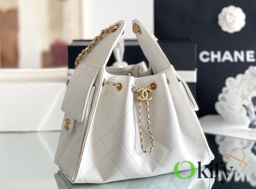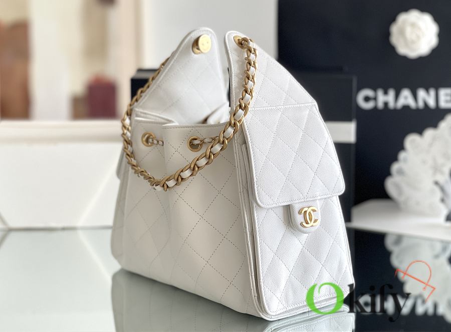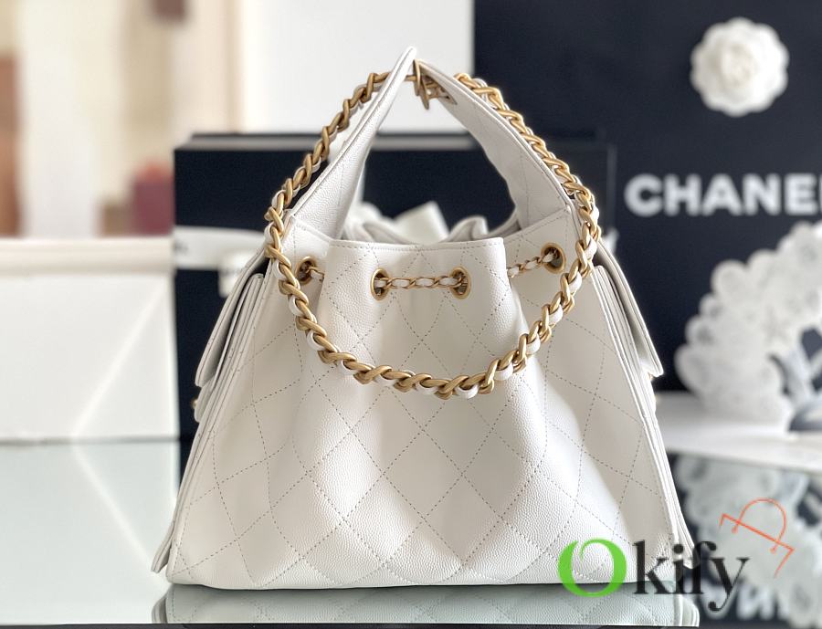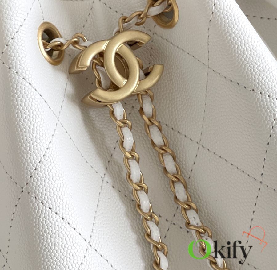 Original small ball grain cowhide! White Show model, the real thing is very beautiful, very cool and beautiful Retro gold coin button drawstring bucket bag Classic diamond pattern retro old chain design