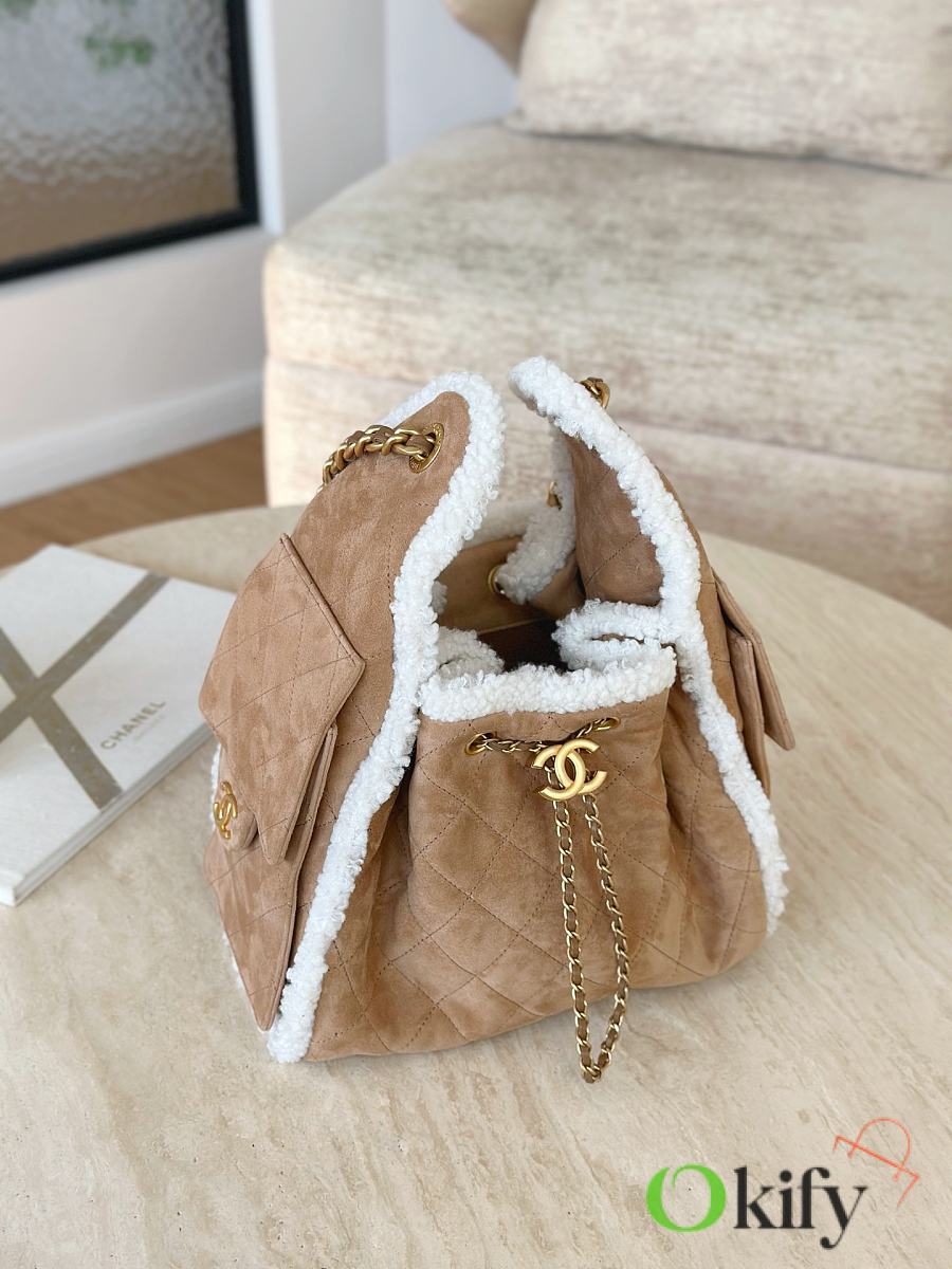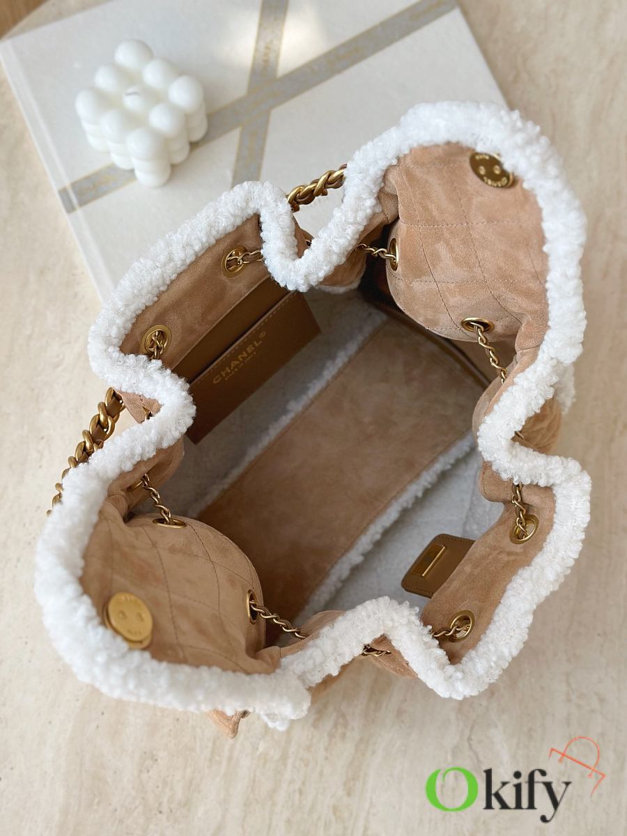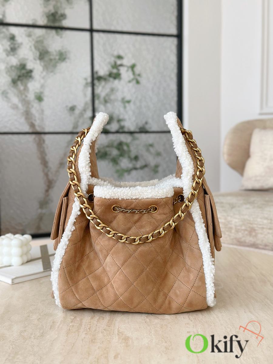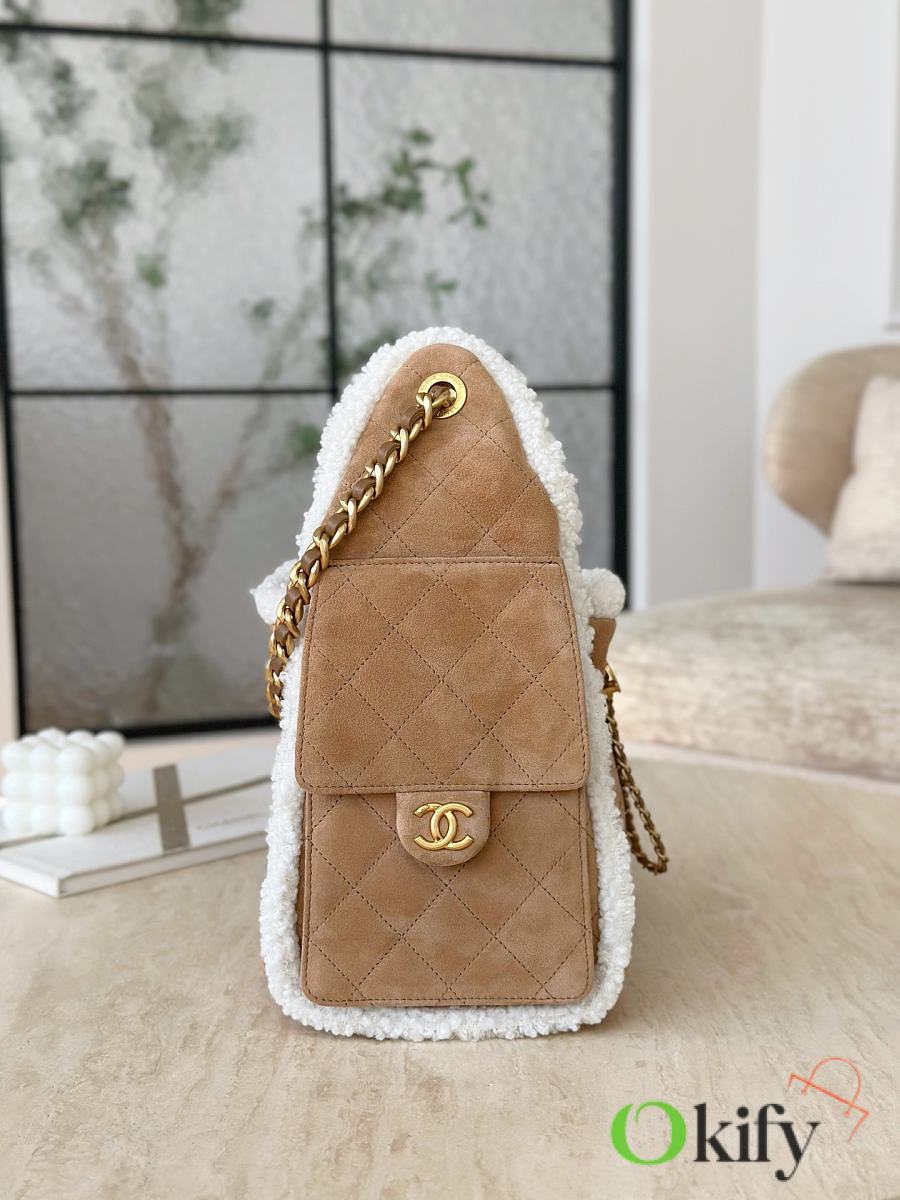 Suede & Lambswool Patchwork: Soft and warm, perfect for autumn and winter. ✨ Classic quilted pattern + gold chain + double C logo, bursting with luxury! Spacious enough for both work and leisure, the lambswool trim is super playful and looks amazing with coats and sweaters. Practical and stylish, a must-have item for autumn and winter