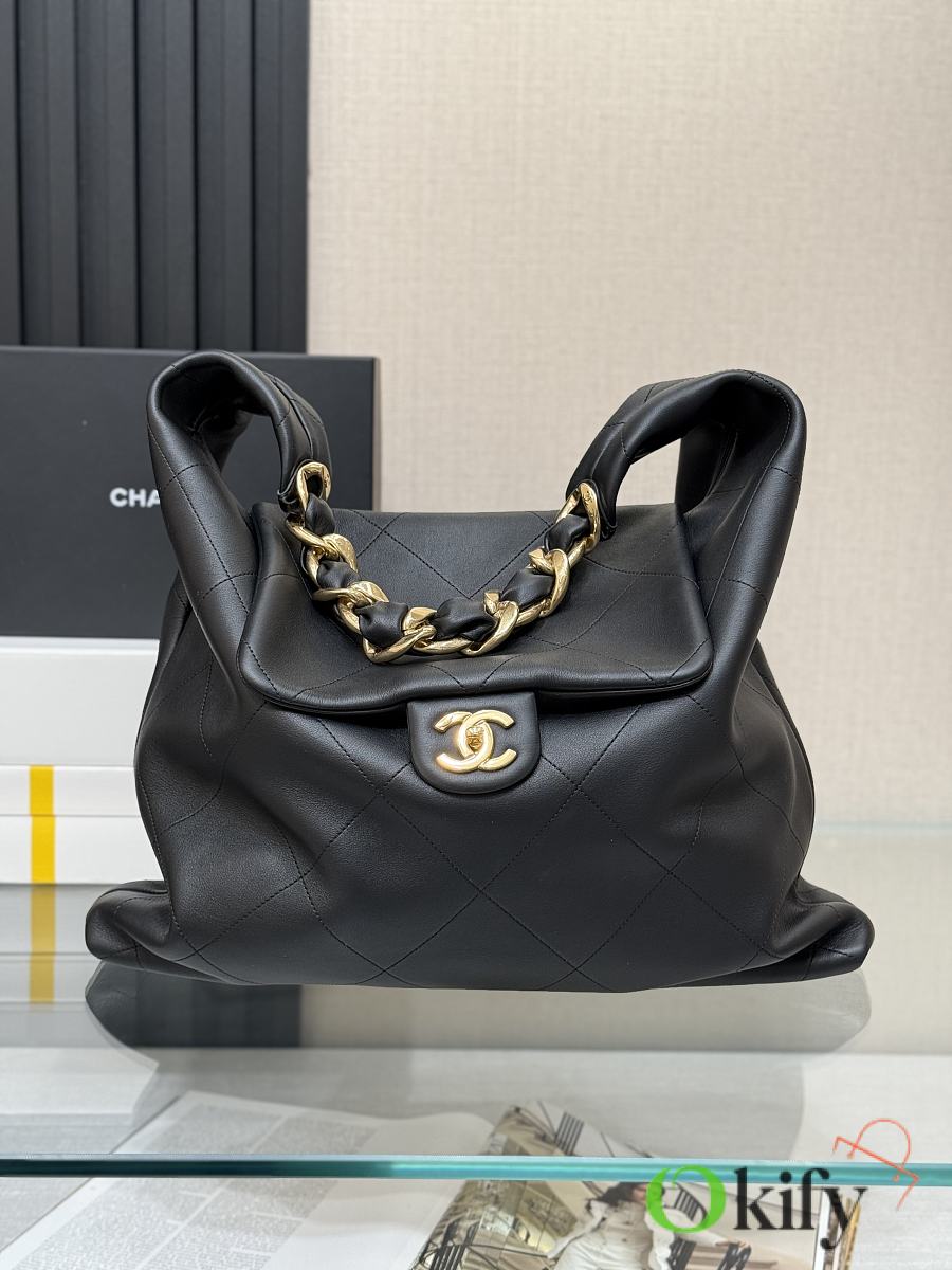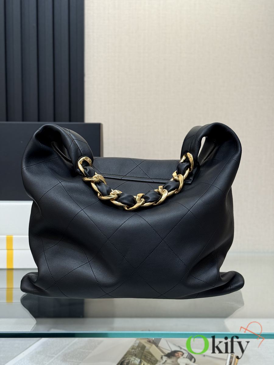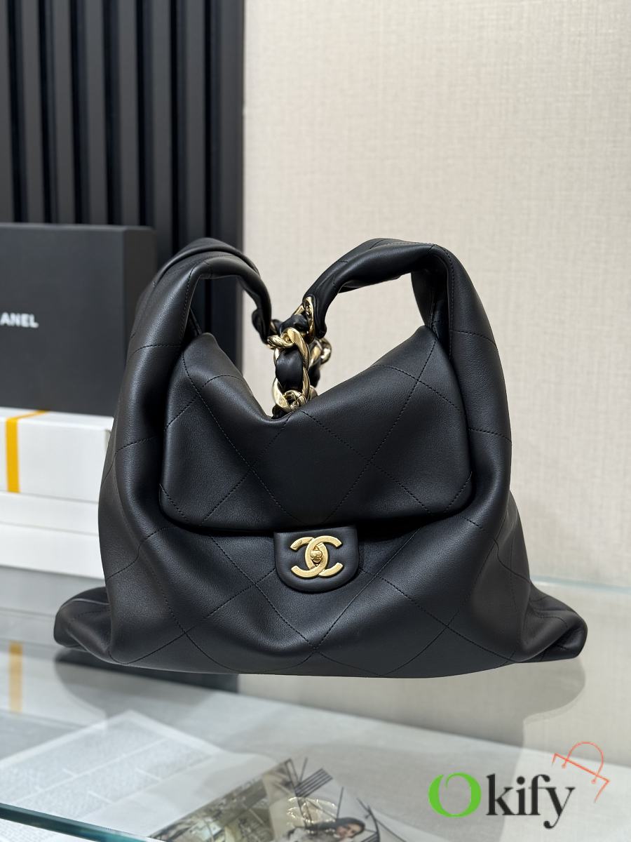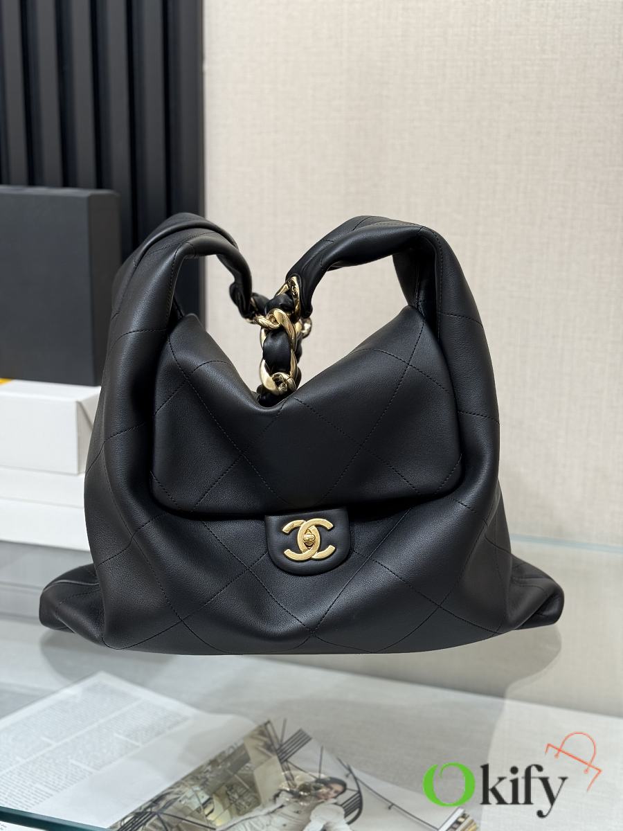 Okify CC 25 Maxi Hobo Bag In Black Calfskin 53x43x9cm