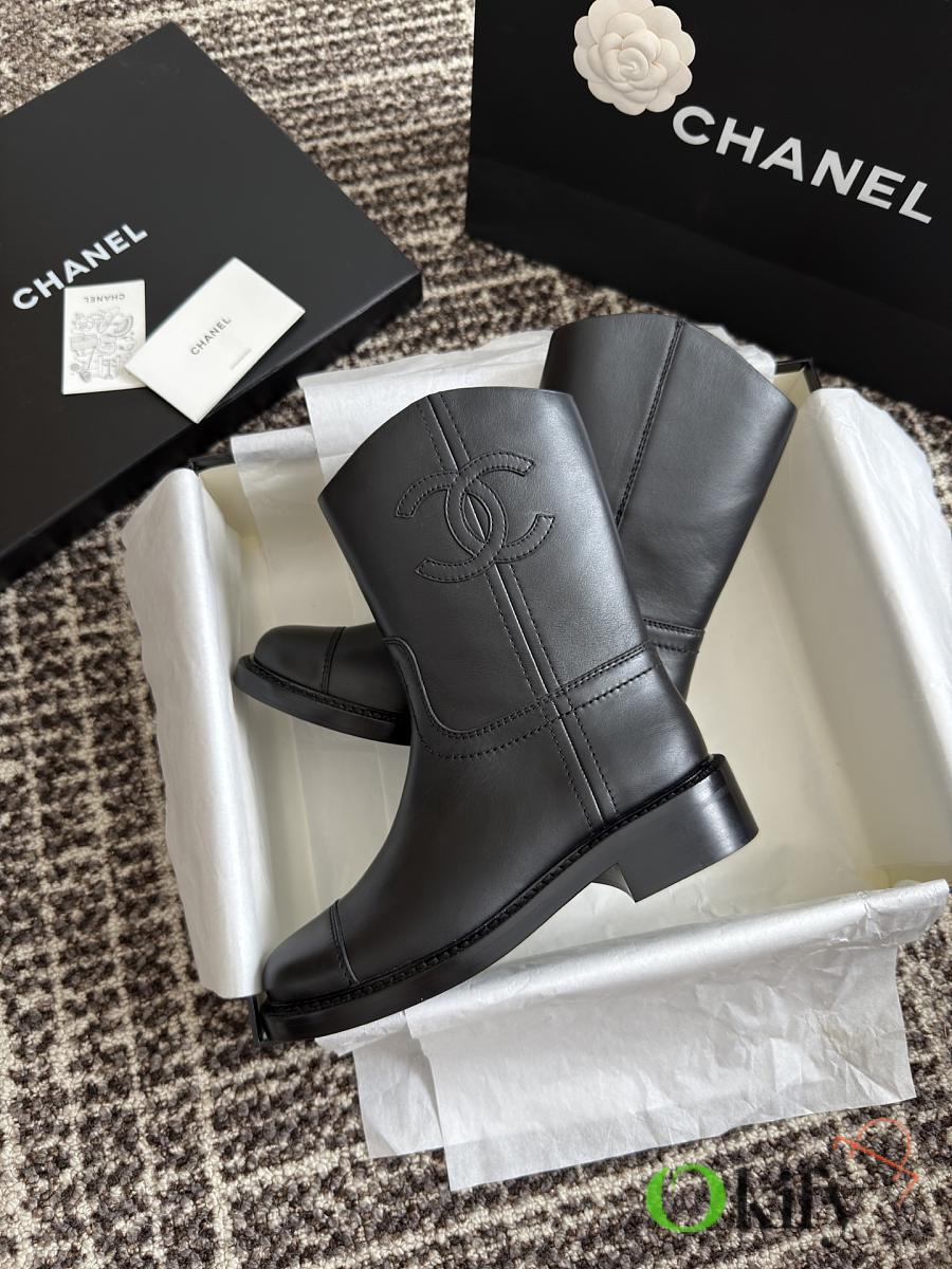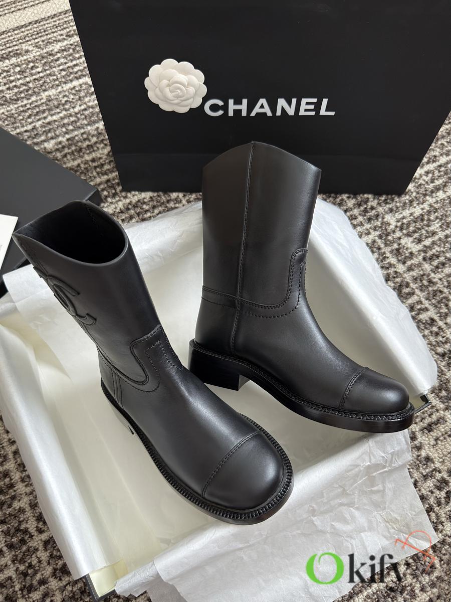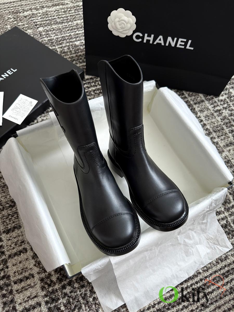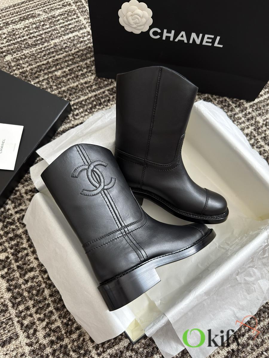 Available as a shopping agent, this classic biker boot is a must-have for Chanel this fall and winter. Always trust Chanel's design, it flatters any leg shape and adds dimension. Made in Italy, every stitching is exquisite! Upper: Premium Italian custom calfskin leather Lining: Premium Italian custom calfskin leather Outsole: Genuine leather outsole