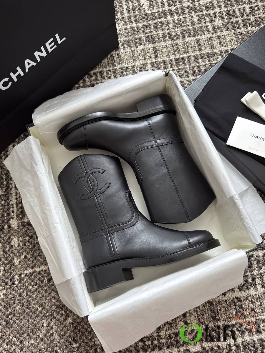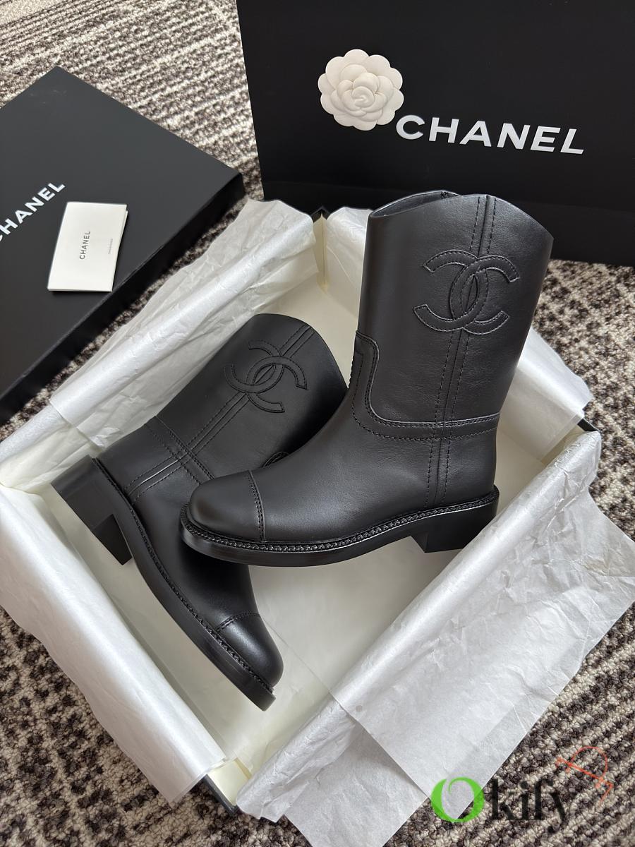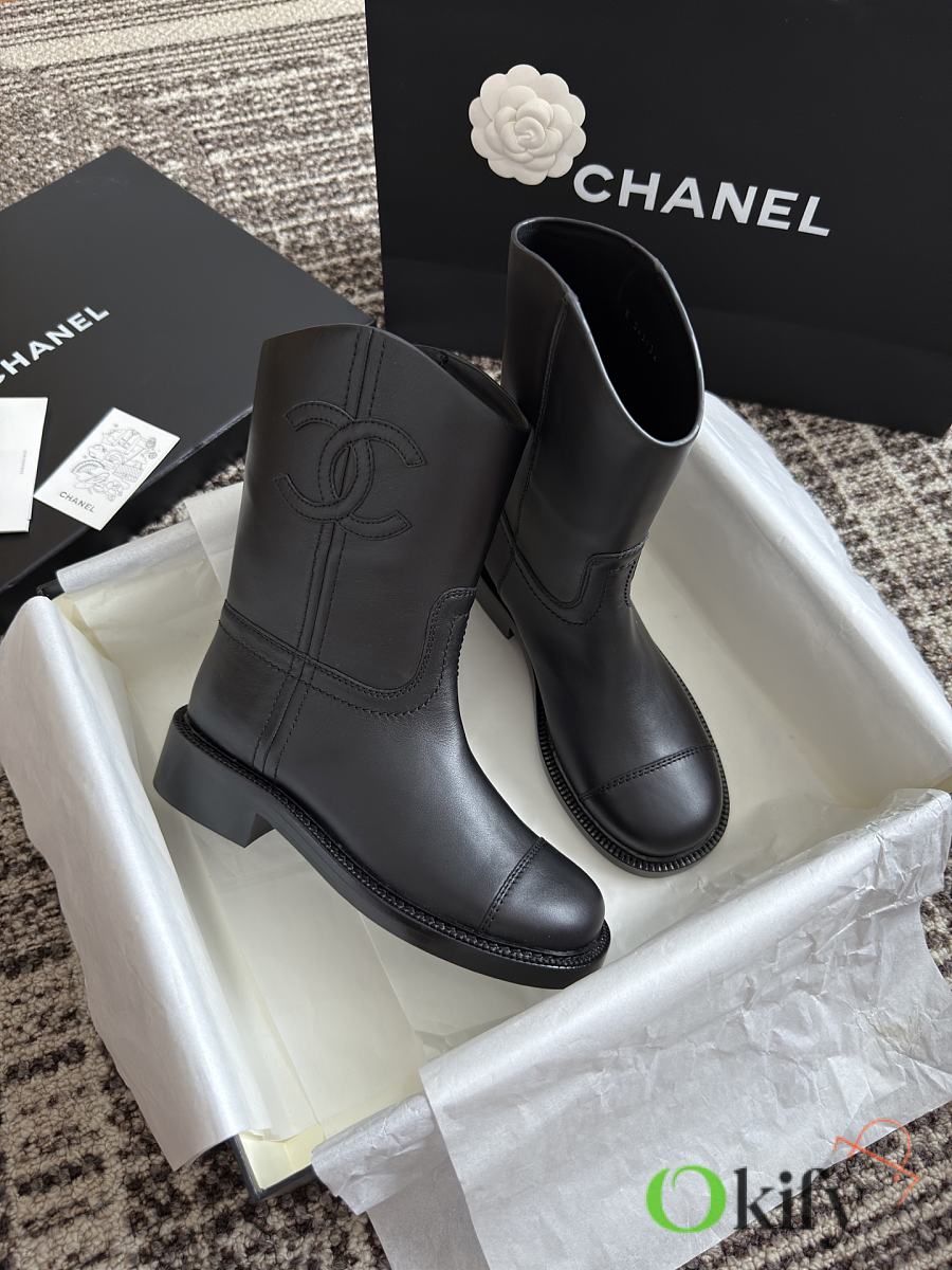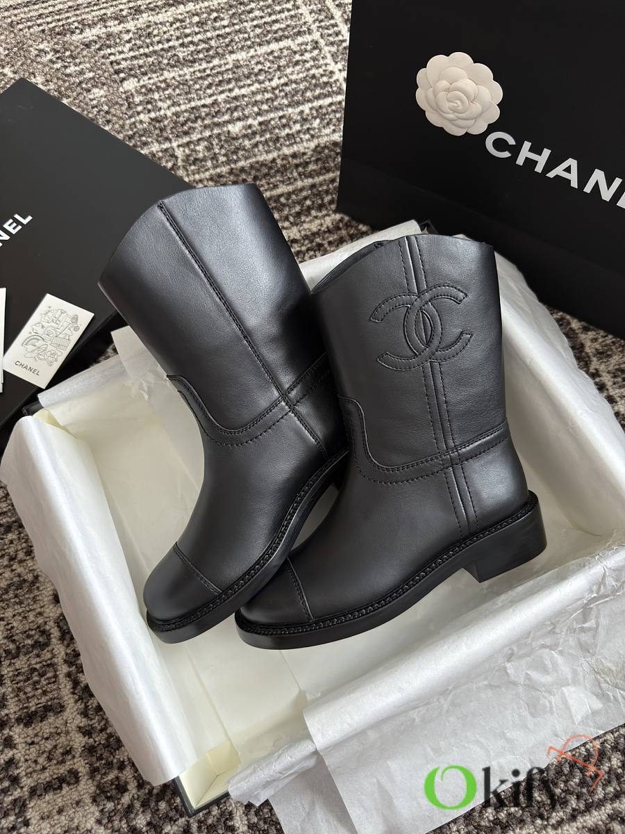 Available as a shopping agent, this classic biker boot is a must-have for Chanel this fall and winter. Always trust Chanel's design, it flatters any leg shape and adds dimension. Made in Italy, every stitching is exquisite! Upper: Premium Italian custom calfskin leather Lining: Premium Italian custom calfskin leather Outsole: Genuine leather outsole