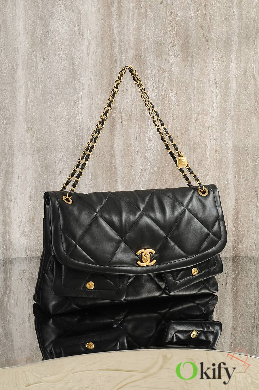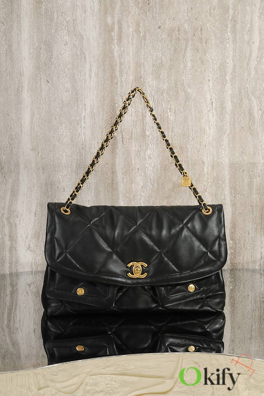 Okify CC 25K Hobo Shopping Bag In Black Lambskin 27x45x10cm