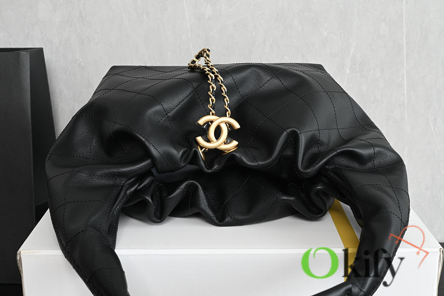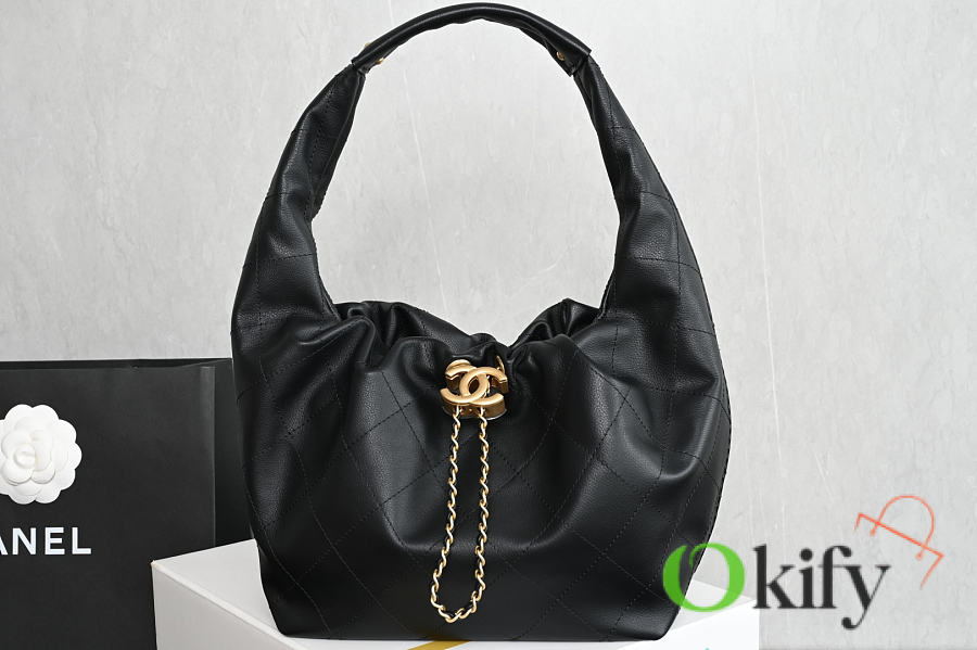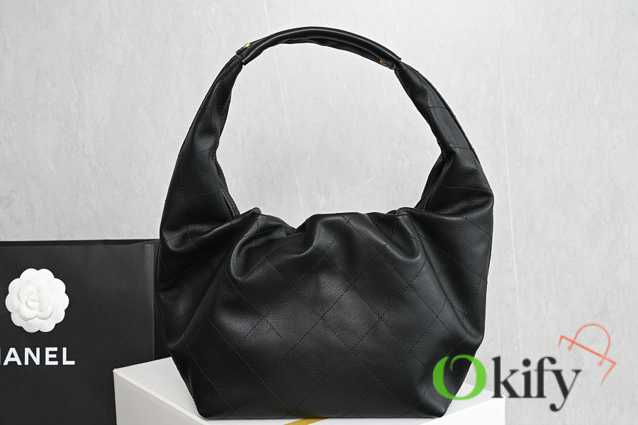 Okify CC 26C Hobo Small Bag Black Calfskin 32x24x12cm