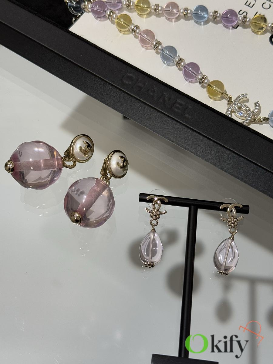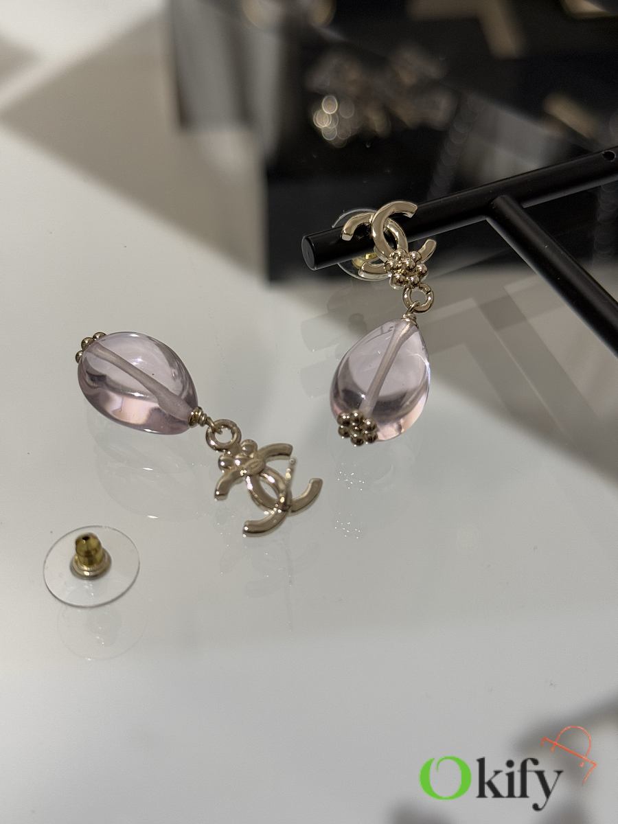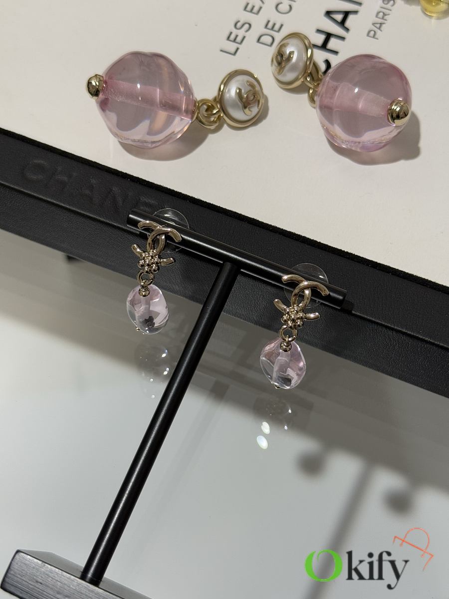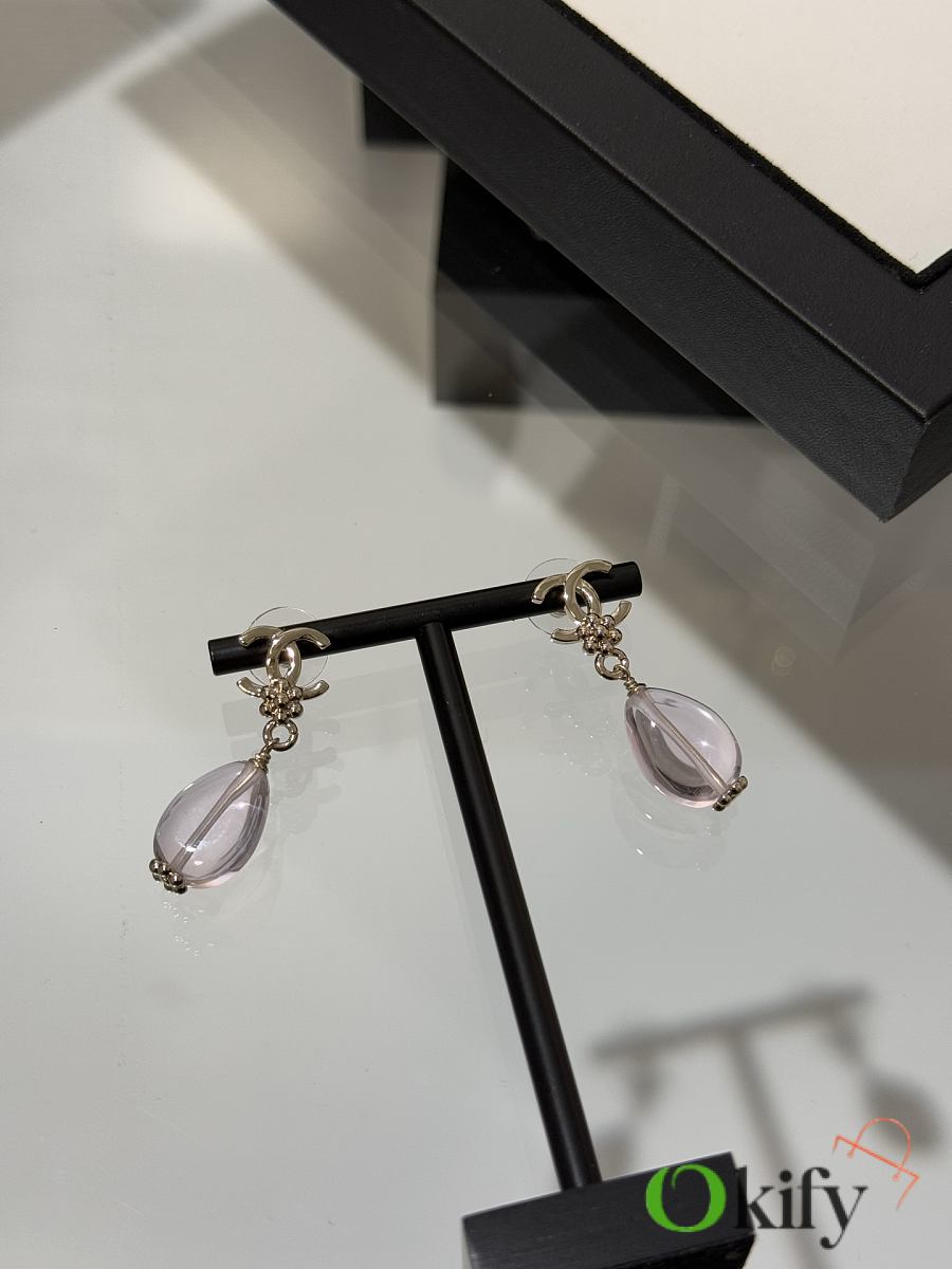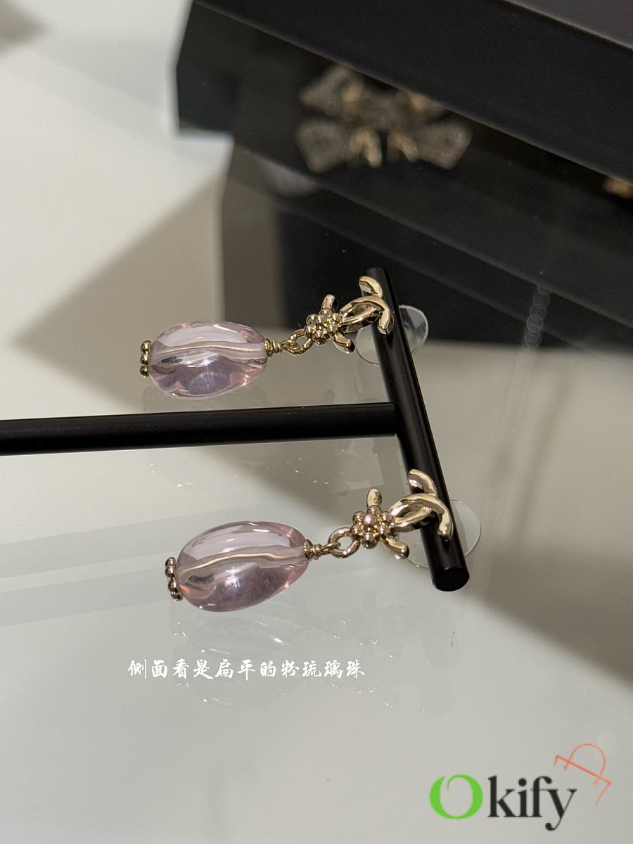 Okify CC 26C Light Gold Earrings With Pink Flat Glass Bead