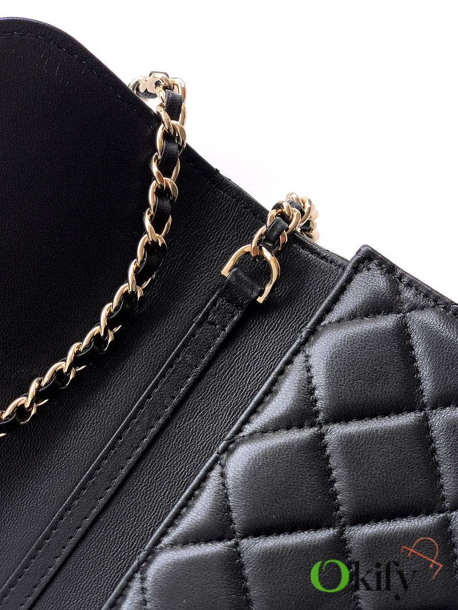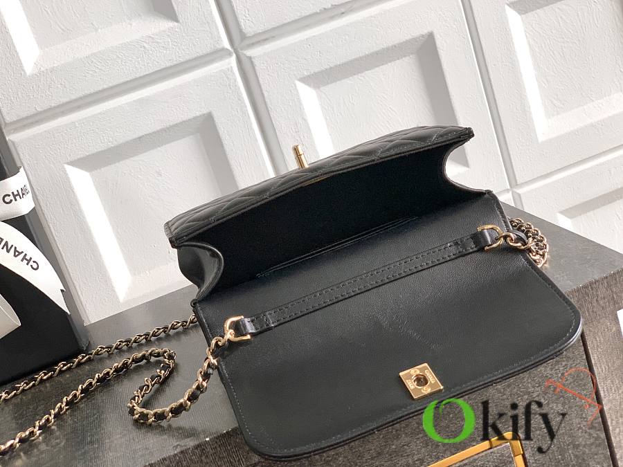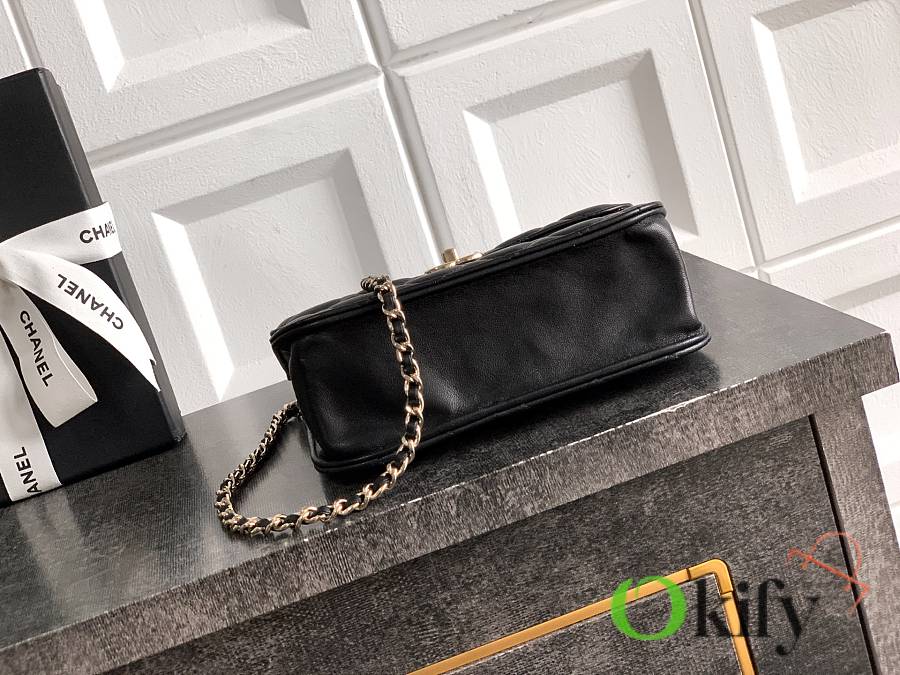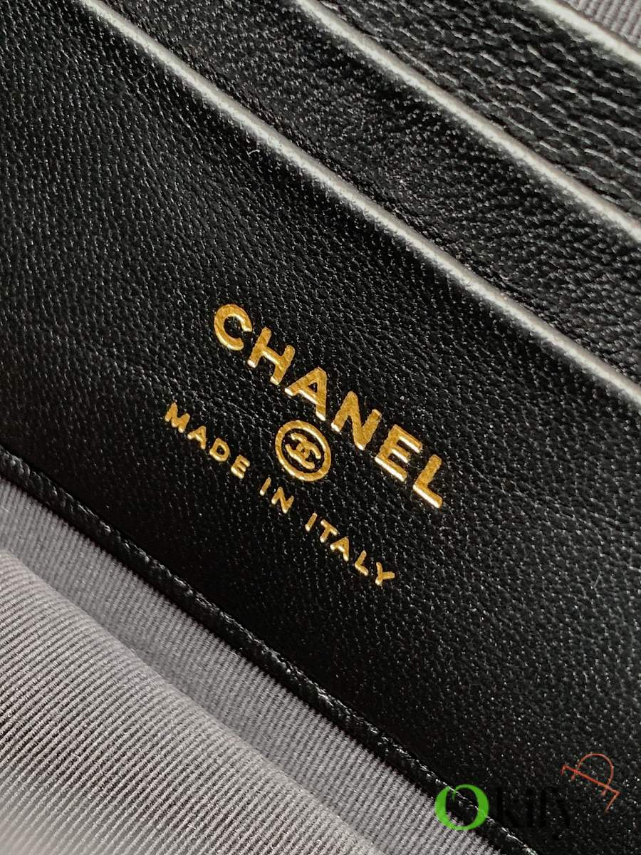 Champagne gold pebbled leather with classic quilted pattern and a highly recognizable double-C metal logo! The handle is adorned with pearls and black beads, exuding sophistication and elegance. Mini size, can be carried by hand or worn crossbody, perfect for everyday outings or parties. The interior, though small, is well-organized, easily holding a phone and lipstick. Practical and stylish, a super hot item!