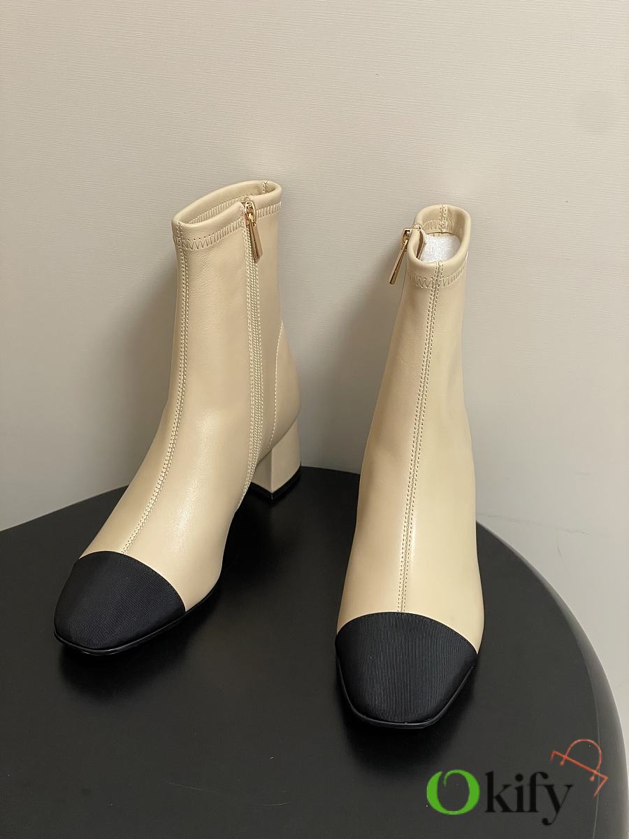 Okify CC Beige Suede Knee High Boots With Black Toe 8.5cm