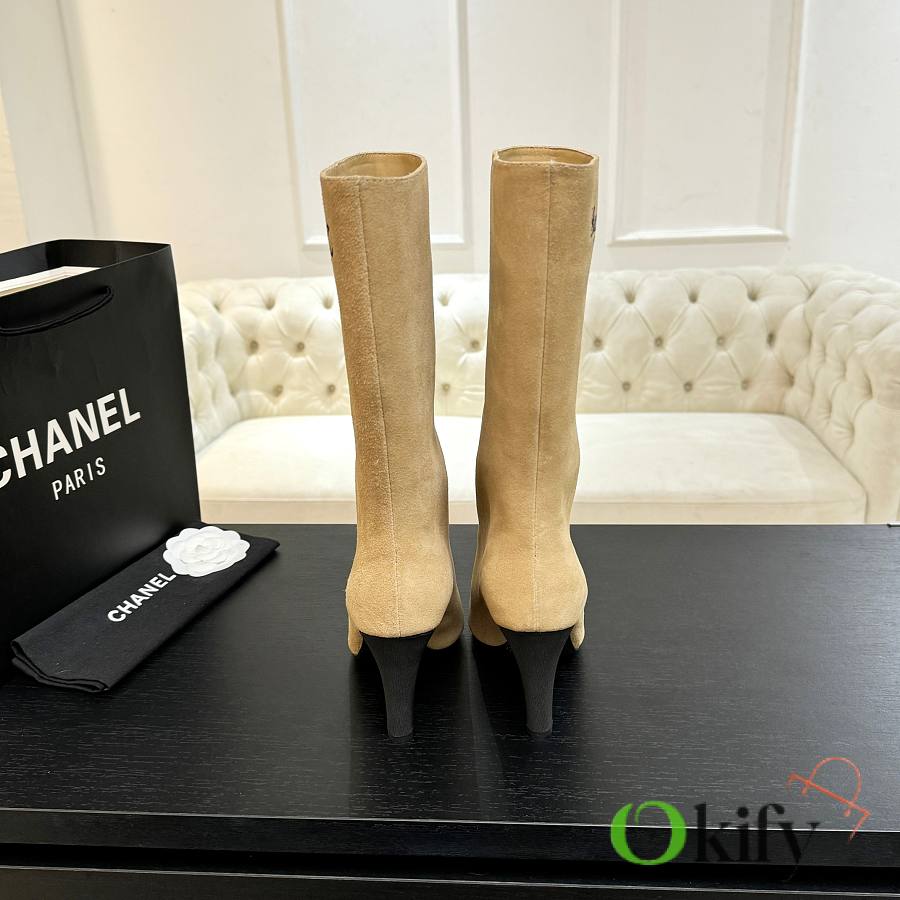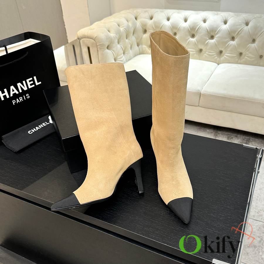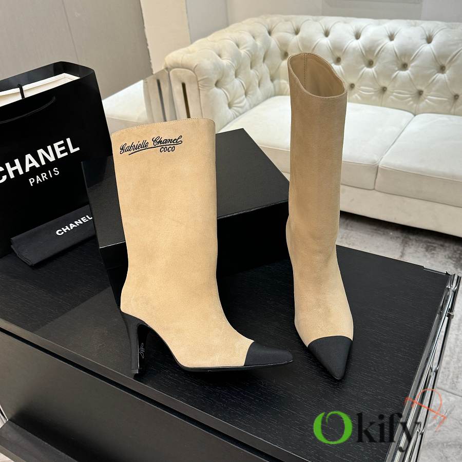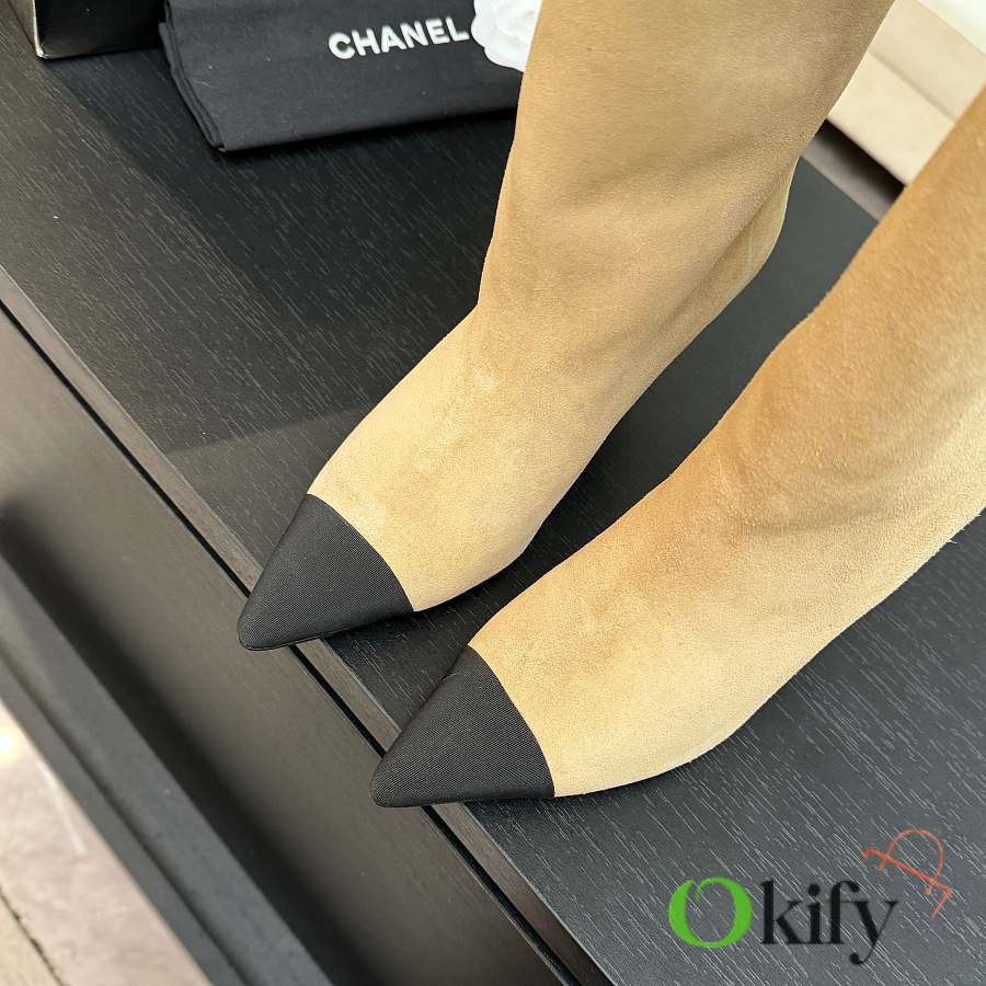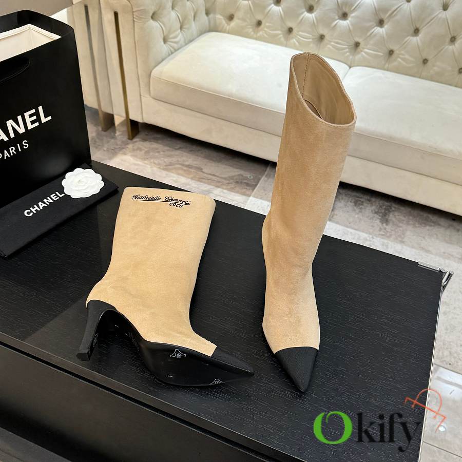 These ankle boots are absolutely a bombshell in the fashion world! The classic double-C embroidered logo is boldly spliced together, proclaiming its extraordinary origin. The sleek boot shape perfectly conforms to the leg lines. It has the air of a socialite and a touch of effortless retro style. Whether paired with simple jeans or an elegant dress It can easily become the finishing touch to the overall look. The rounded splicing design has a very well controlled curvature. It shouldn't be a stiff, sharp shoe shape; it should be soft, harmonious, timeless, and tasteful. Custom-made original Yangjing brand uppers are very soft, comfortable, and not tight. The inner lining is made of imported silk sheepskin, which is extremely delicate and provides 100% comfort. Original mold, custom outsole with high safety performance Heel height: 8.5cm. The chunky heel design visually elongates the figure.