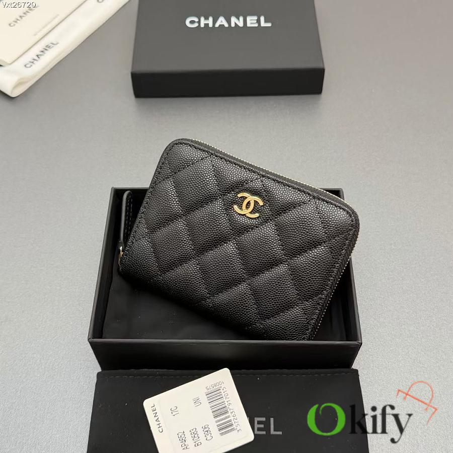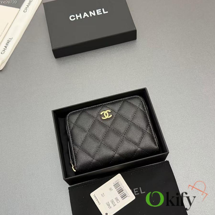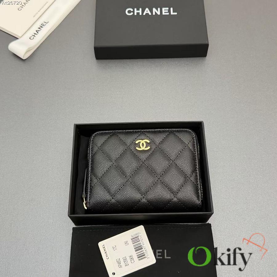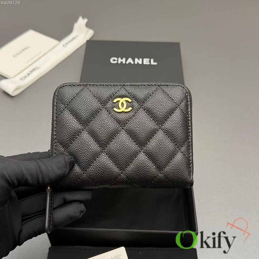 Okify CC Black Caviar Gold Hardware Zipper Small Wallet 12x9x2cm