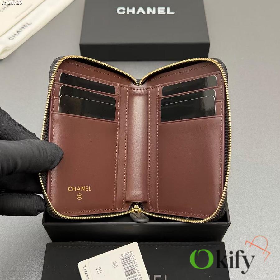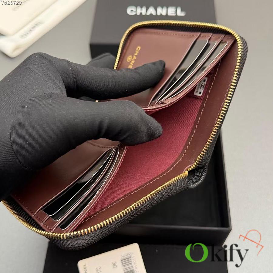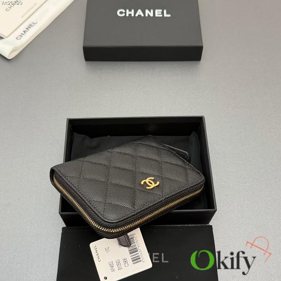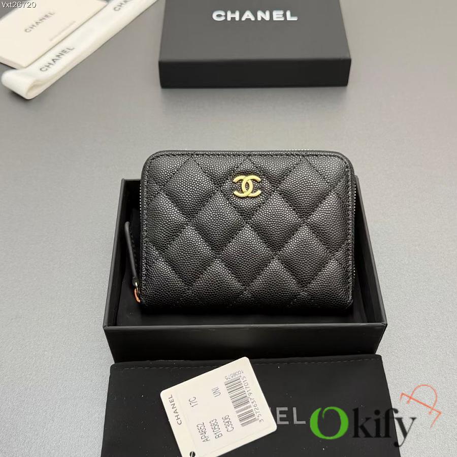 Okify CC Black Caviar Gold Hardware Zipper Small Wallet 12x9x2cm