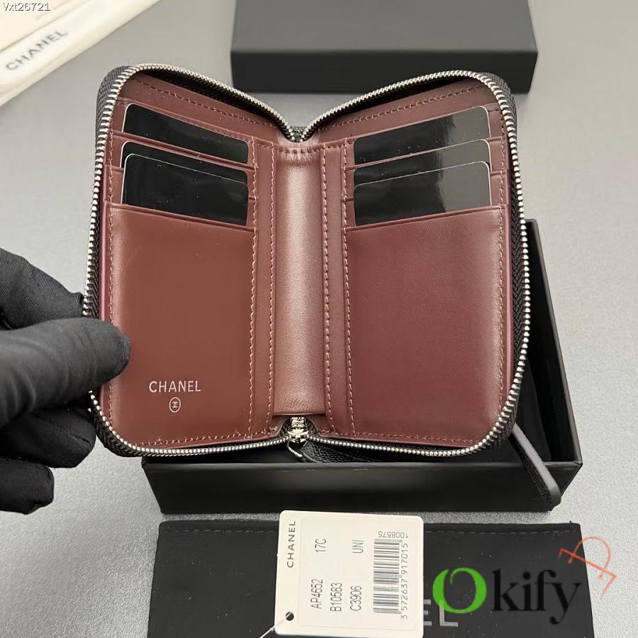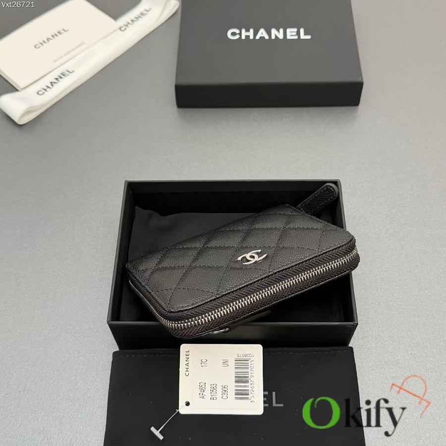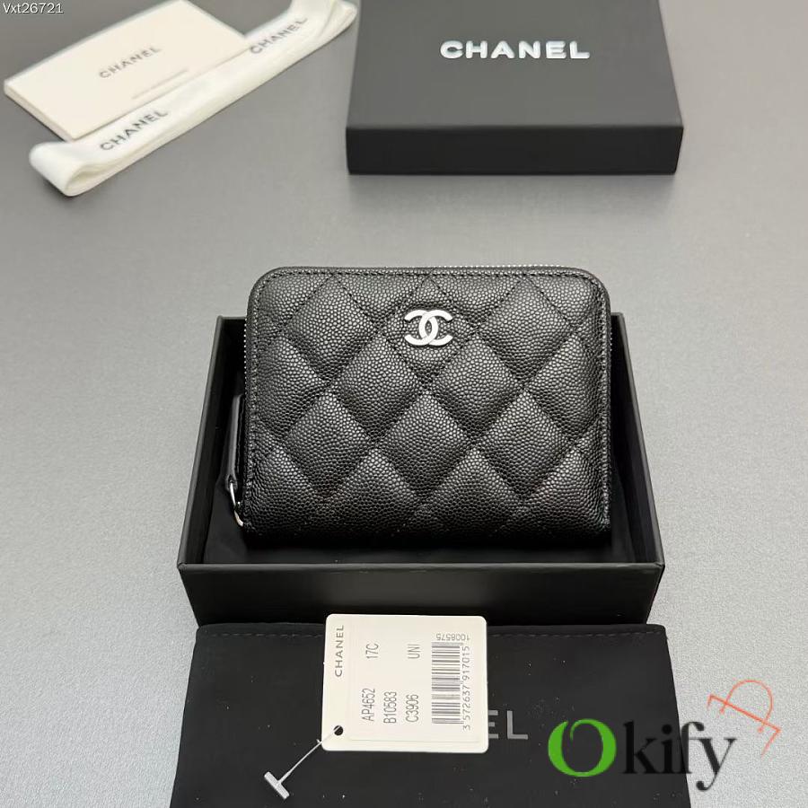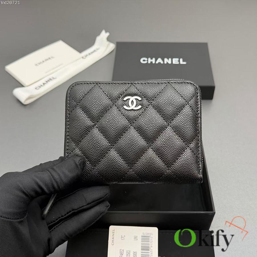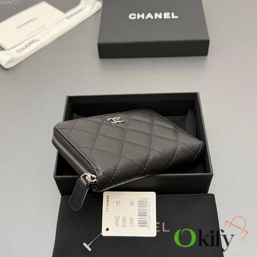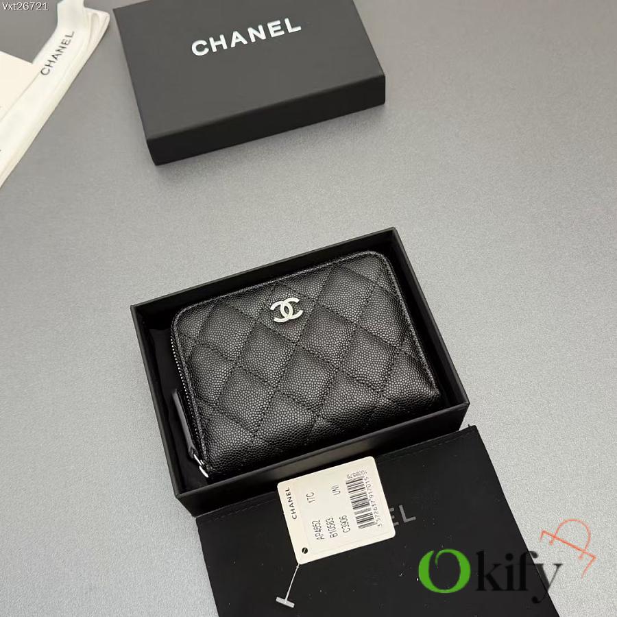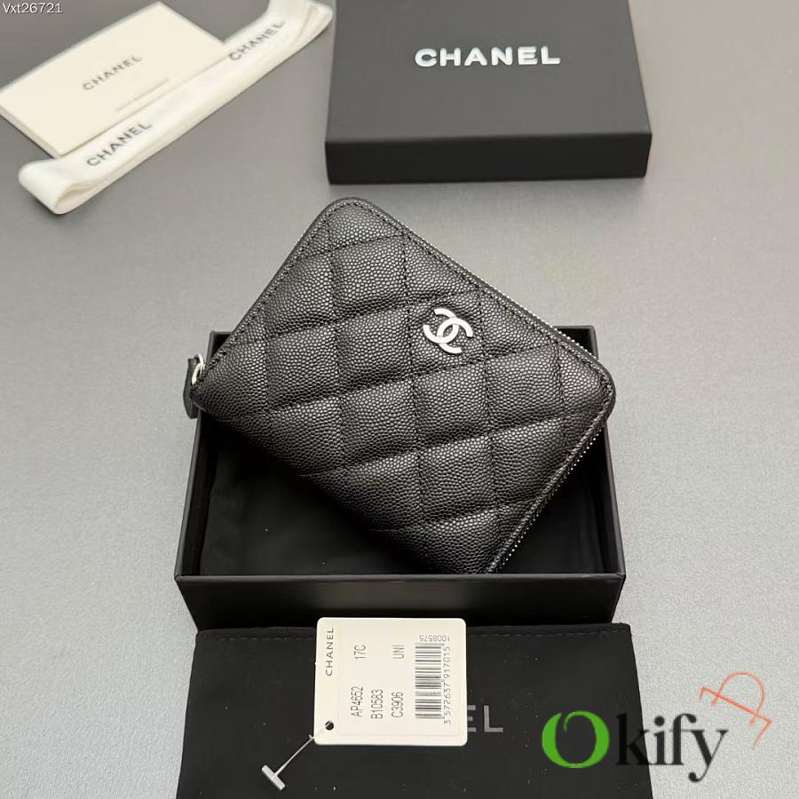 Okify CC Black Caviar Silver Hardware Zipper Small Wallet 12x9x2cm