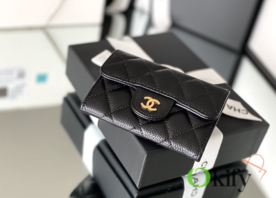 Okify CC Black Caviar Small Flap Wallet 11x7.5x2cm