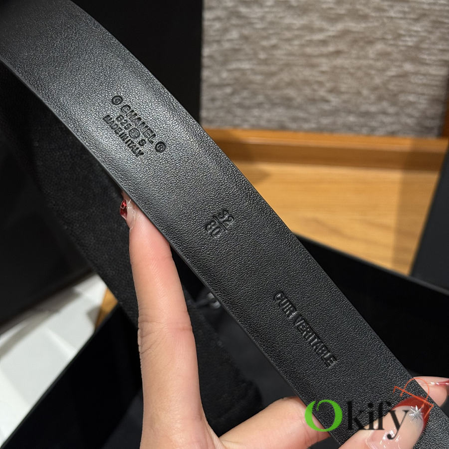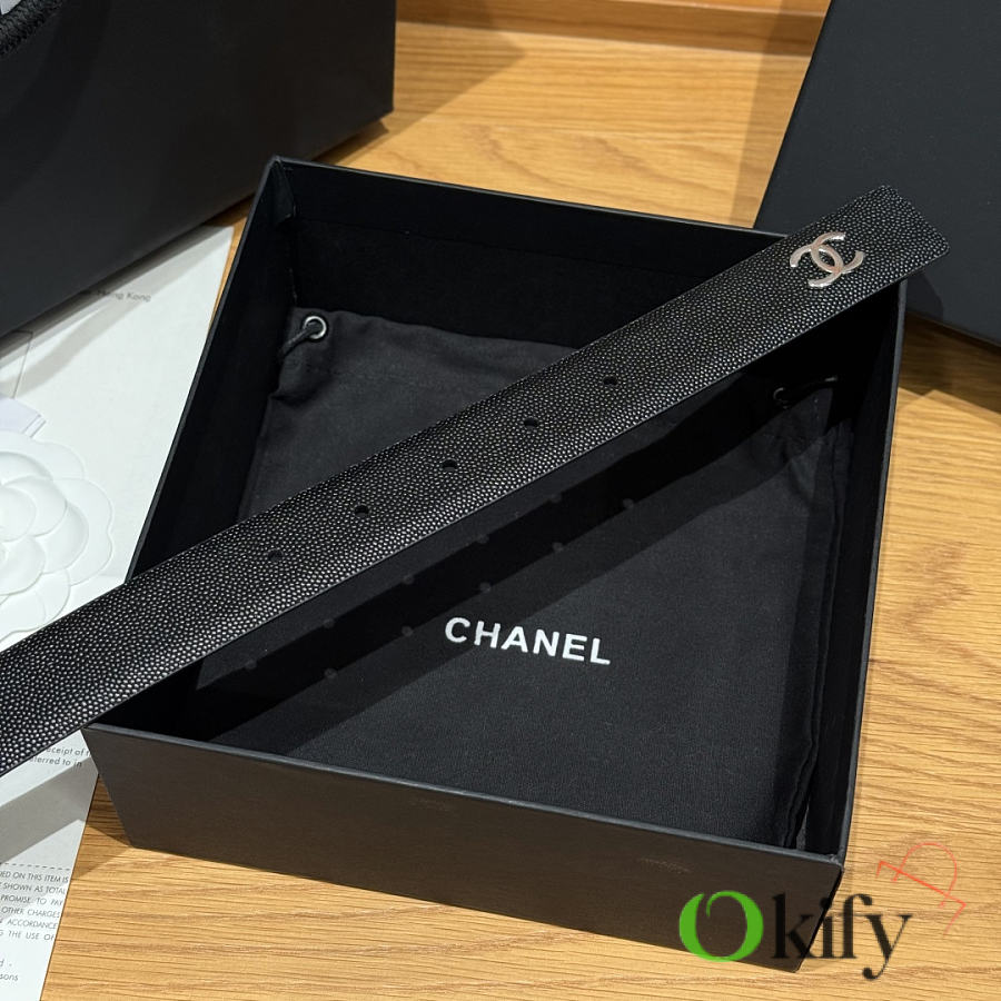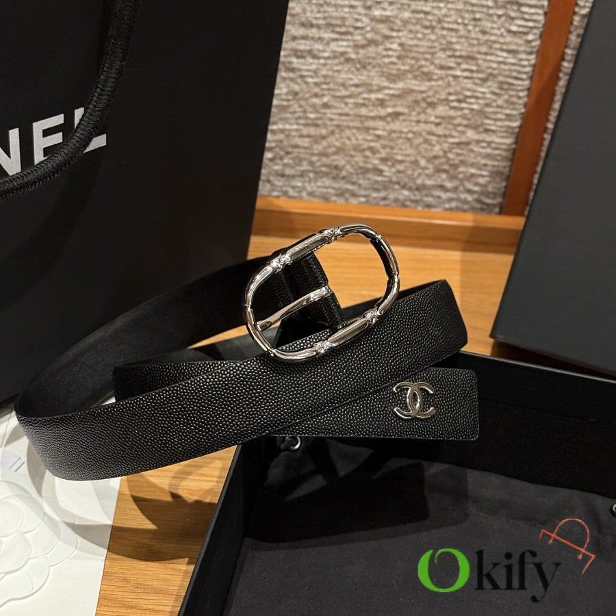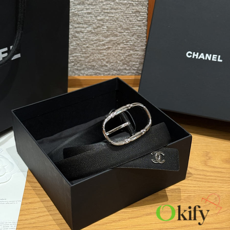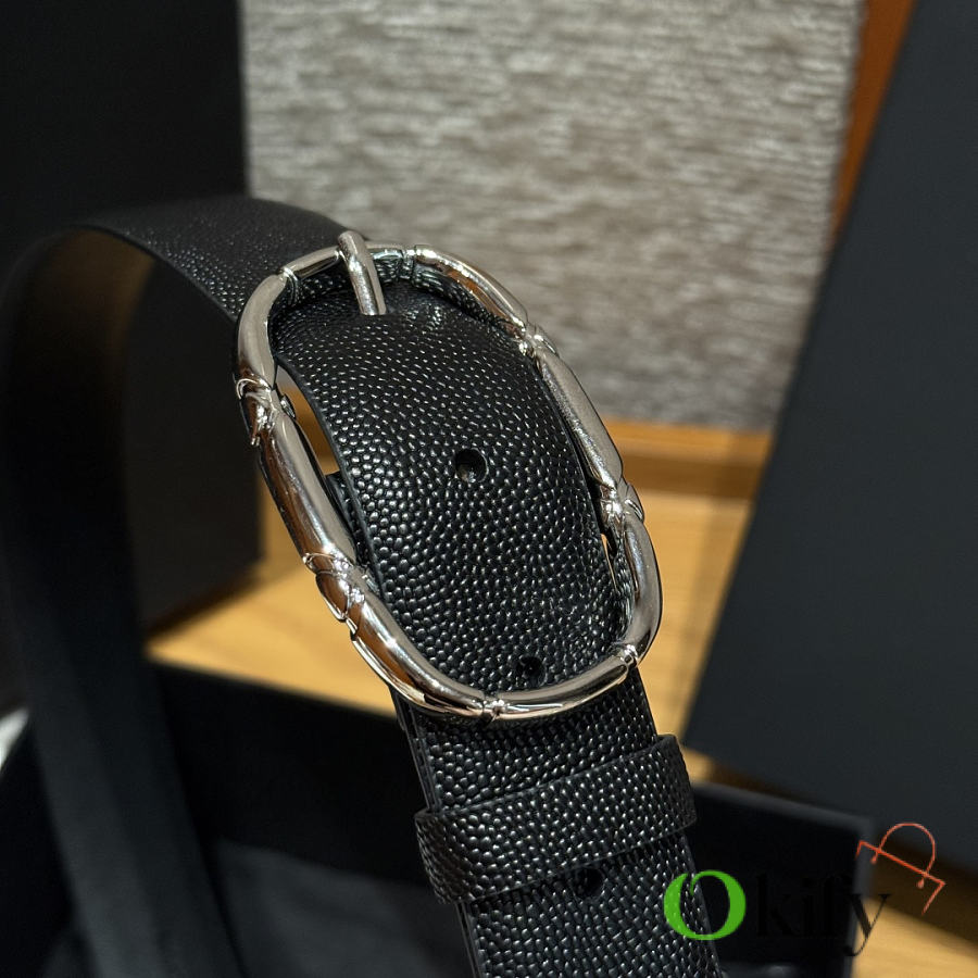 Okify CC Black Grain Belt Silver Hardware 3cm