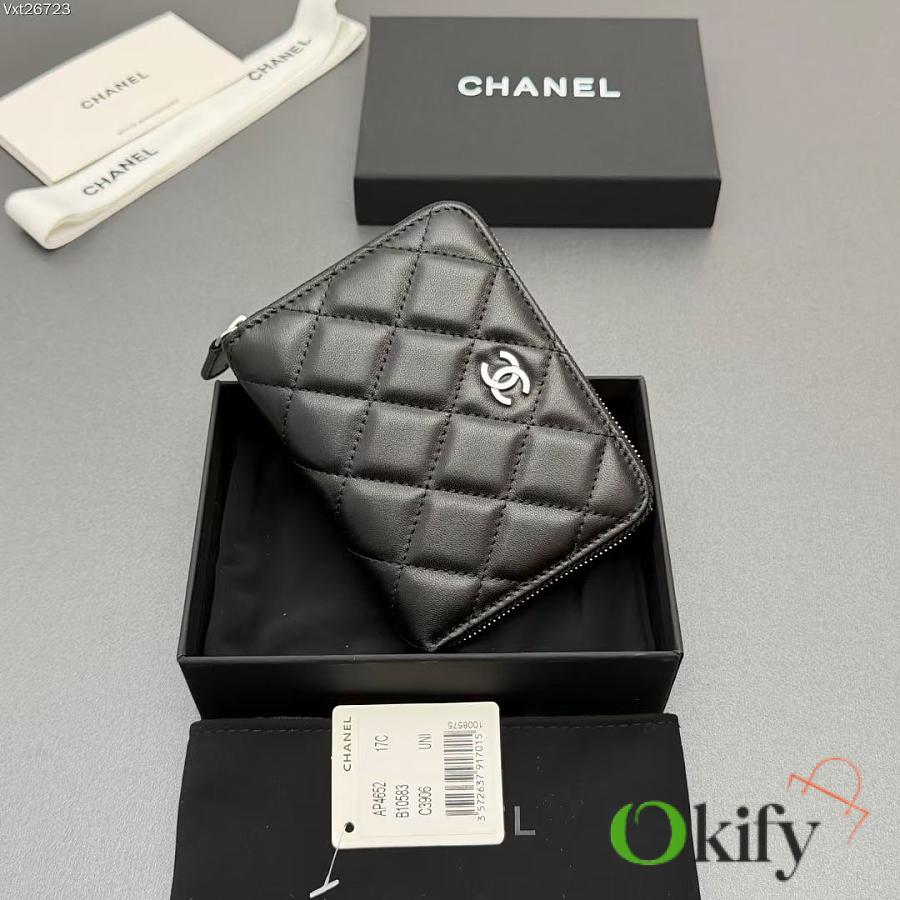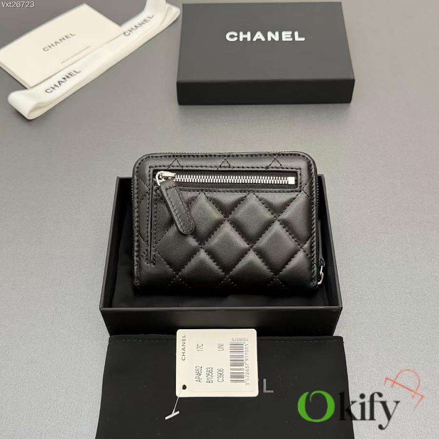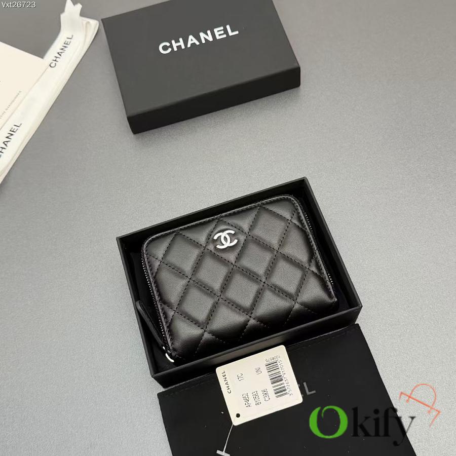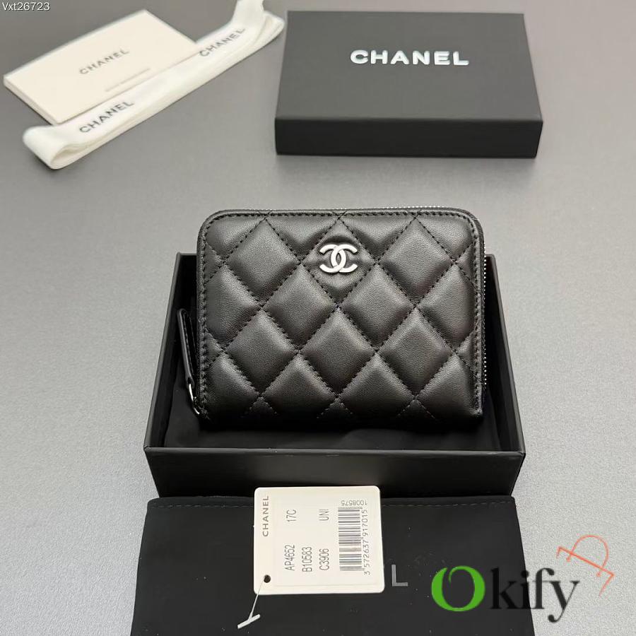 Okify CC Black Lambskin Silver Hardware Zipper Small Wallet 12x9x2cm