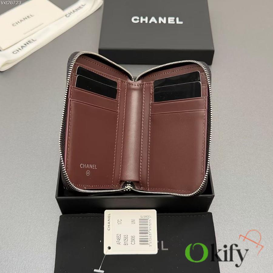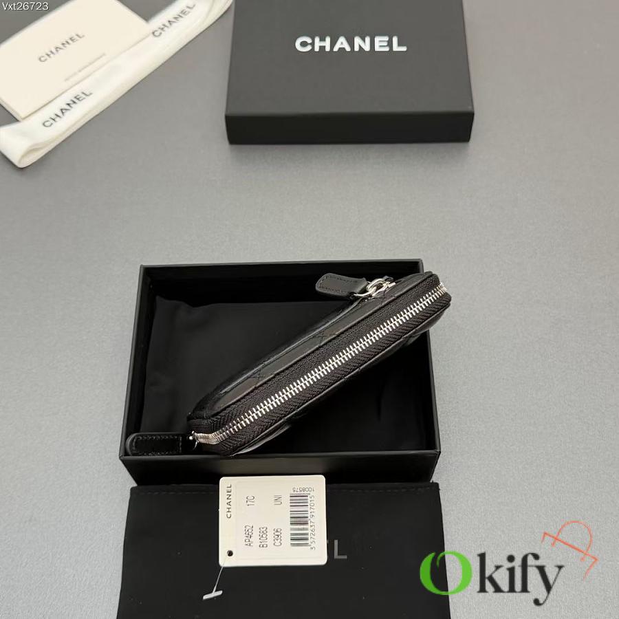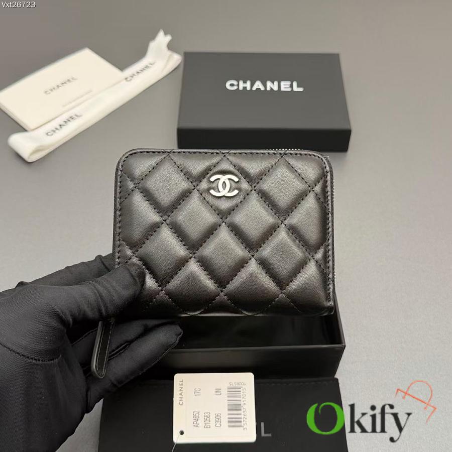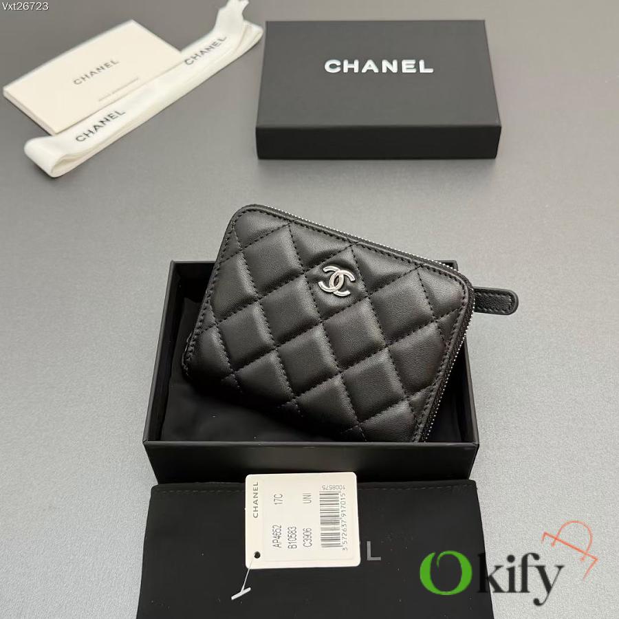 Okify CC Black Lambskin Silver Hardware Zipper Small Wallet 12x9x2cm