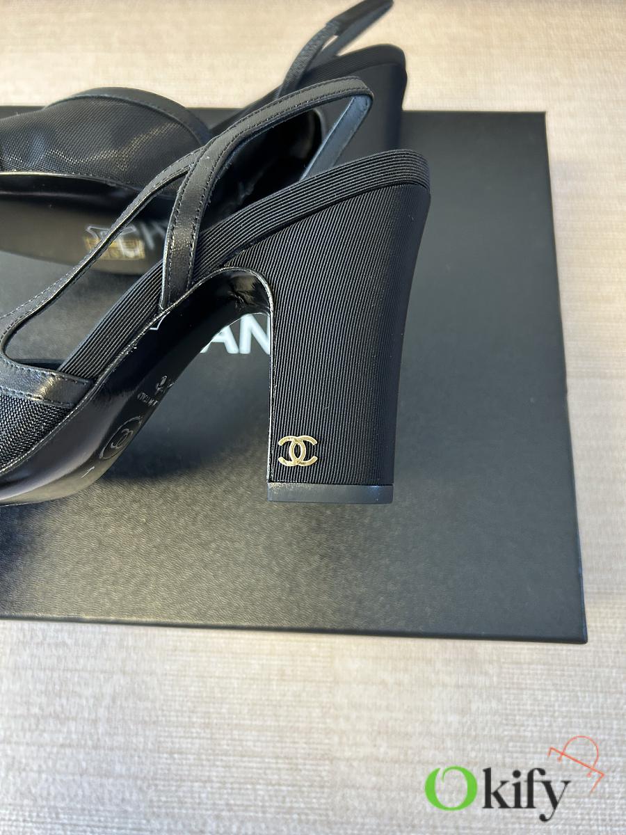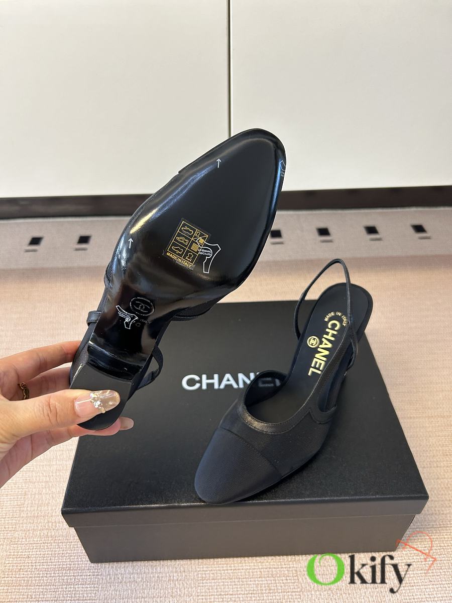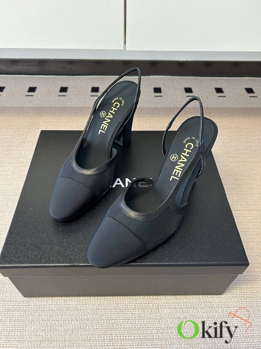 Okify CC Black Mesh Slingback Pumps With Block Heel 9cm