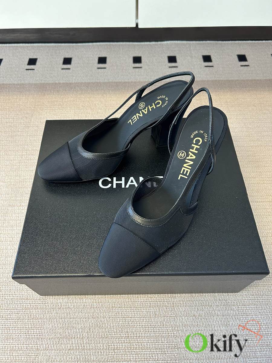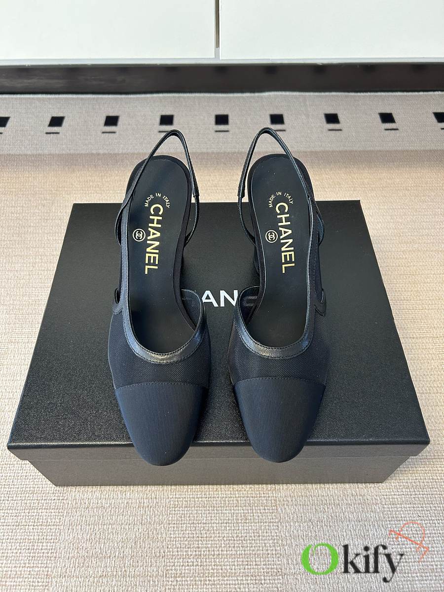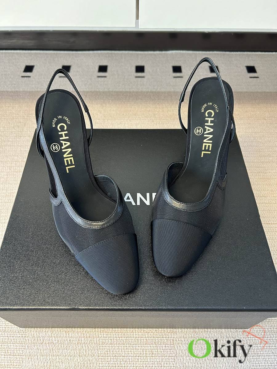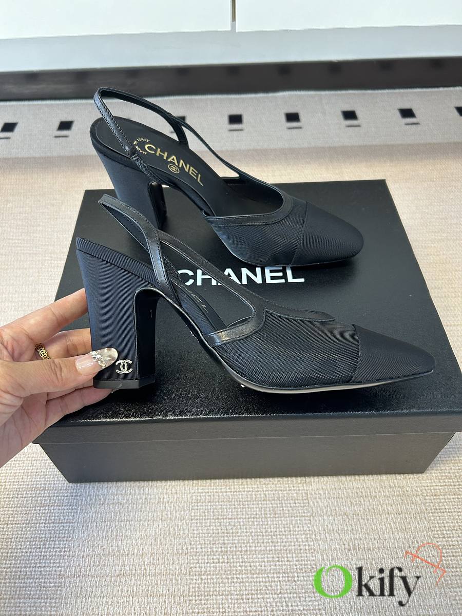 Okify CC Black Mesh Slingback Pumps With Block Heel 9cm