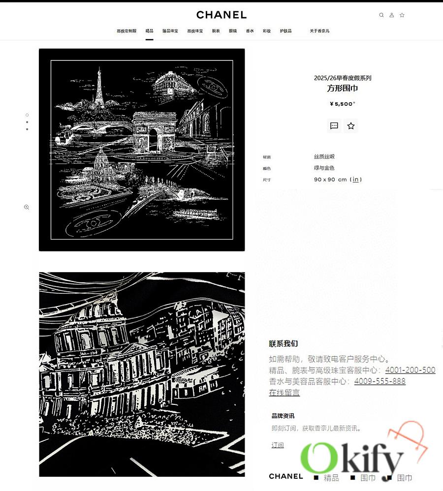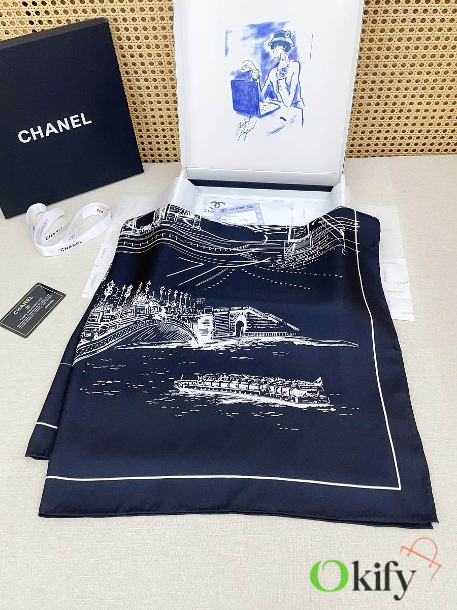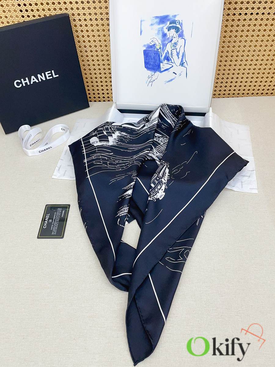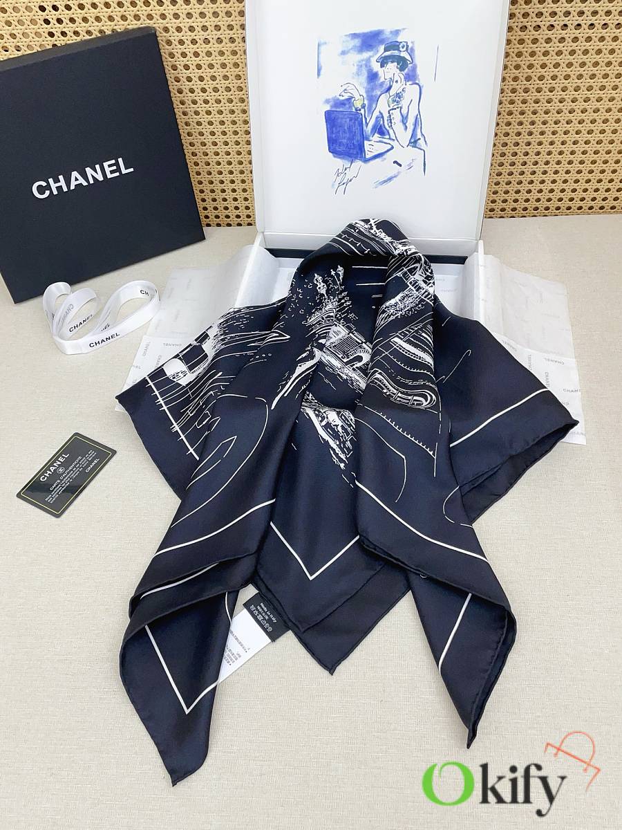 Okify CC Black Silk Square Scarf 90x90cm