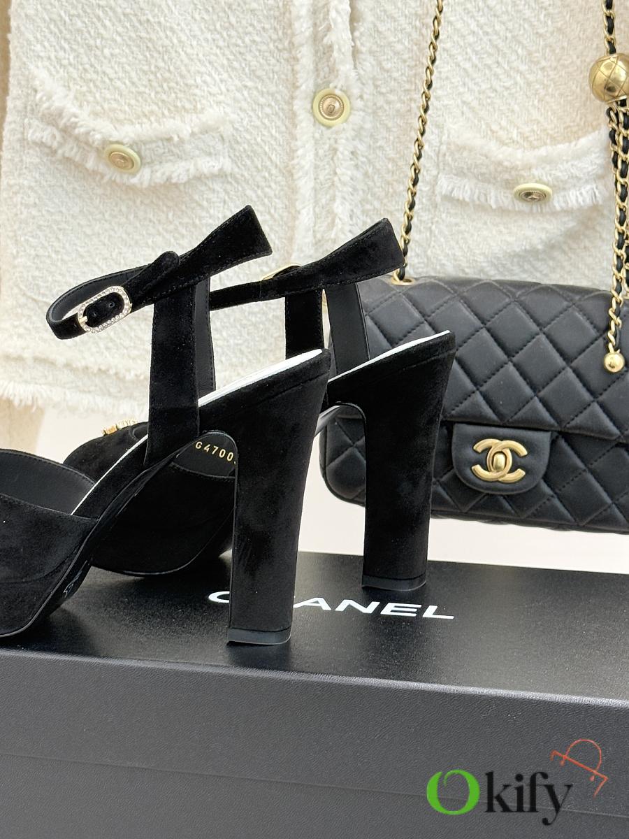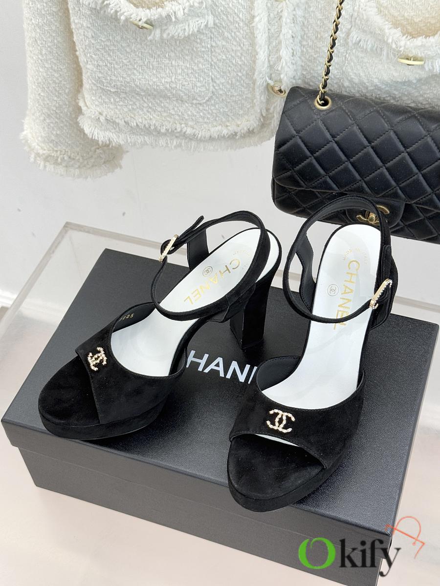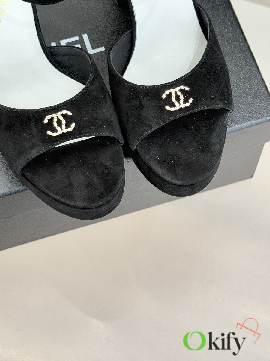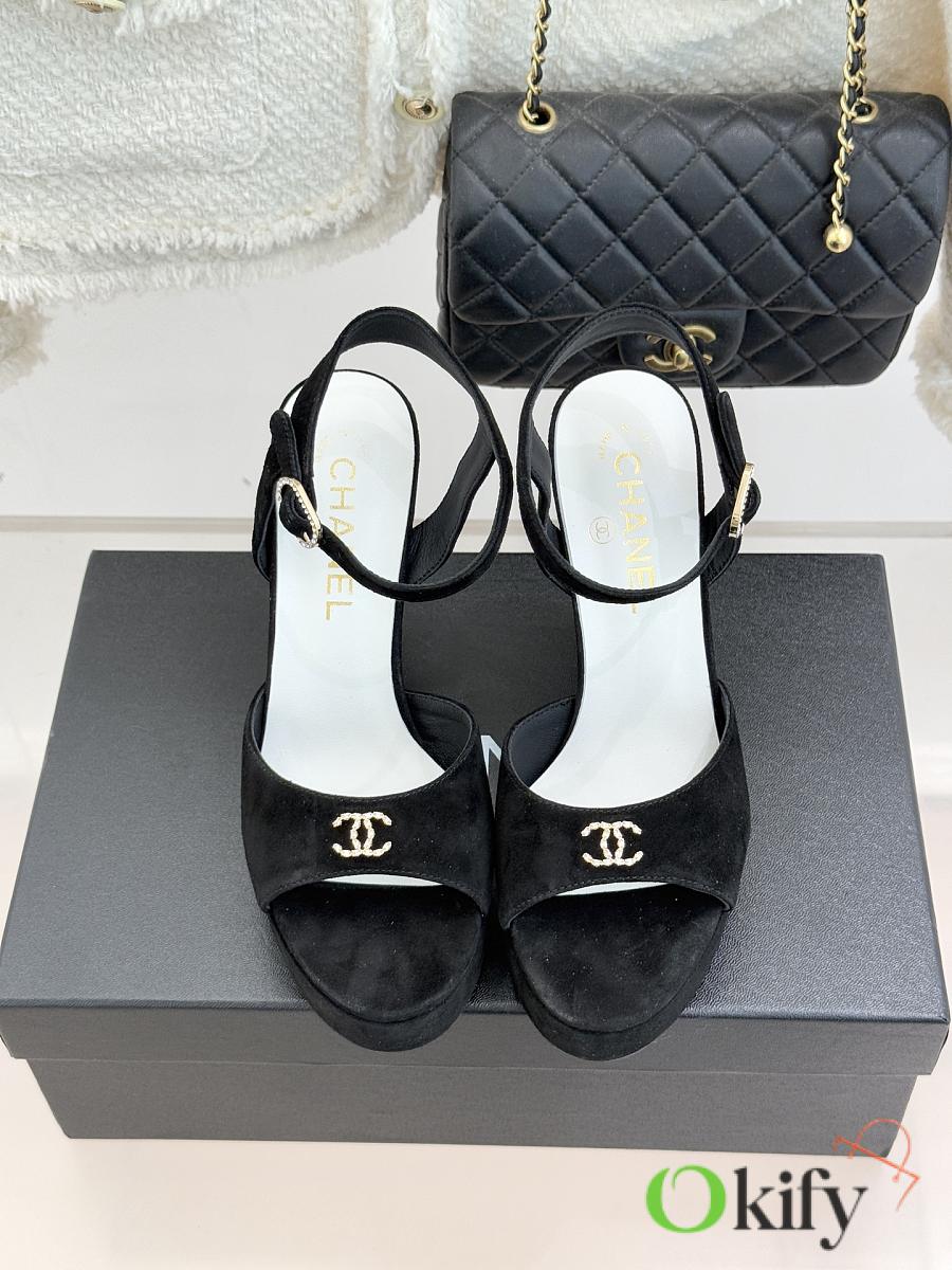 Okify CC Black Suede Platform High Heel Sandals