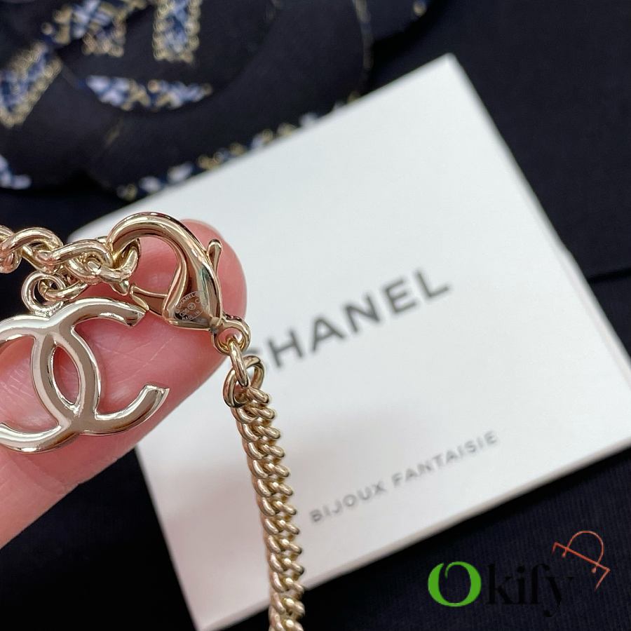 Okify Chanel Pearl Logo Charm Necklace 17880