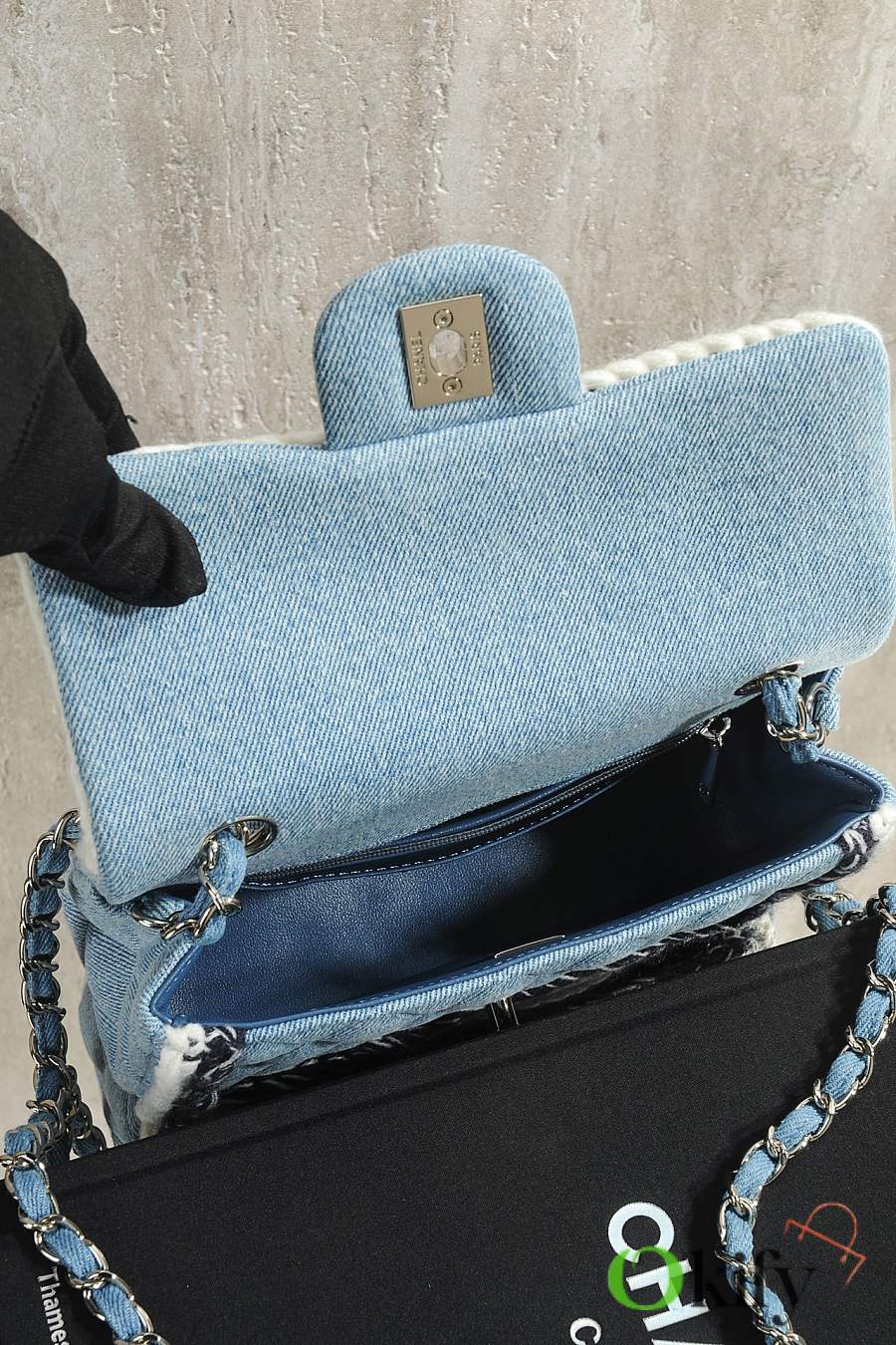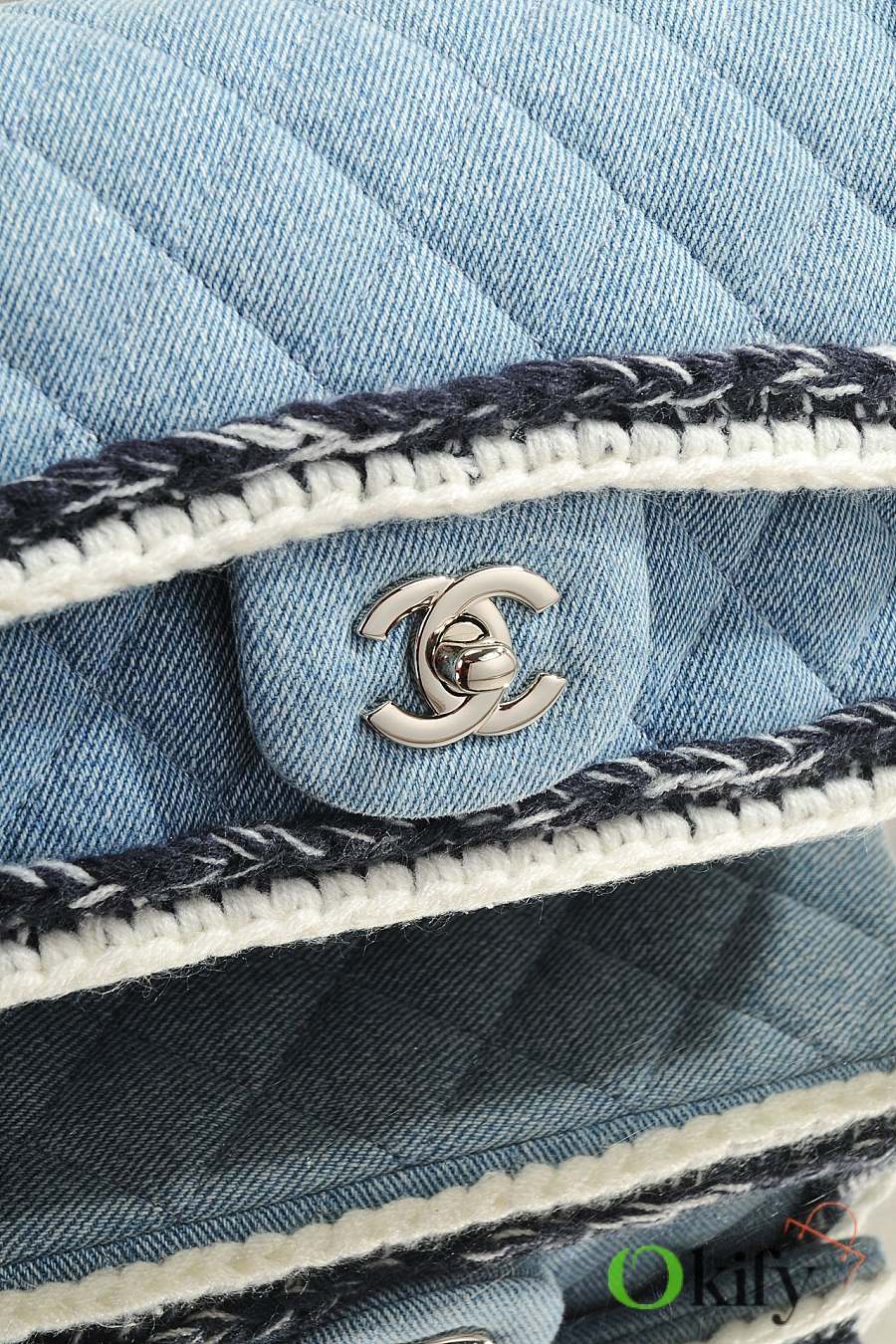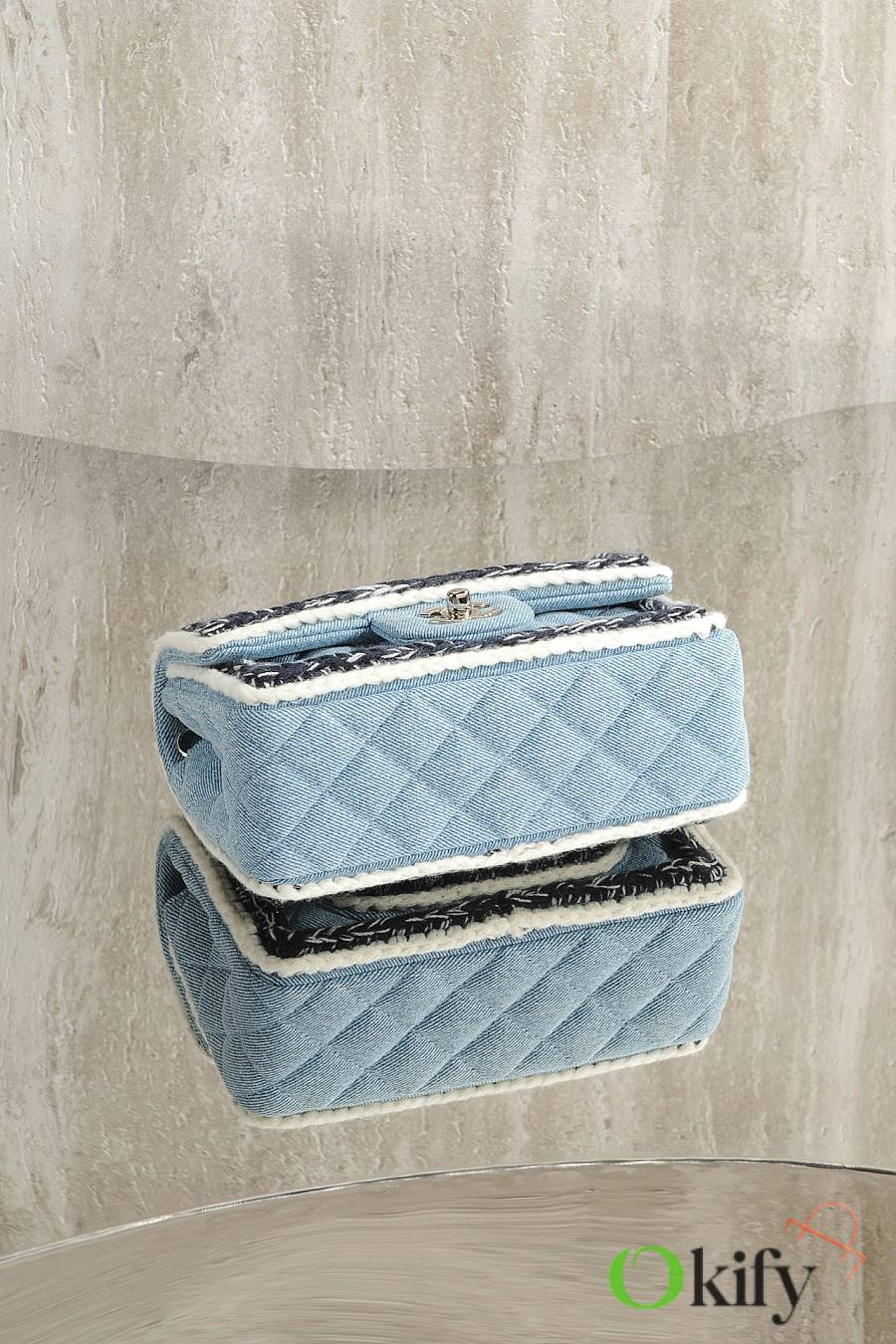 CF series denim with wool trim, featuring a retro yet stylish look. Classic quilted pattern + silver metal chain with the iconic double C logo for easy identification!