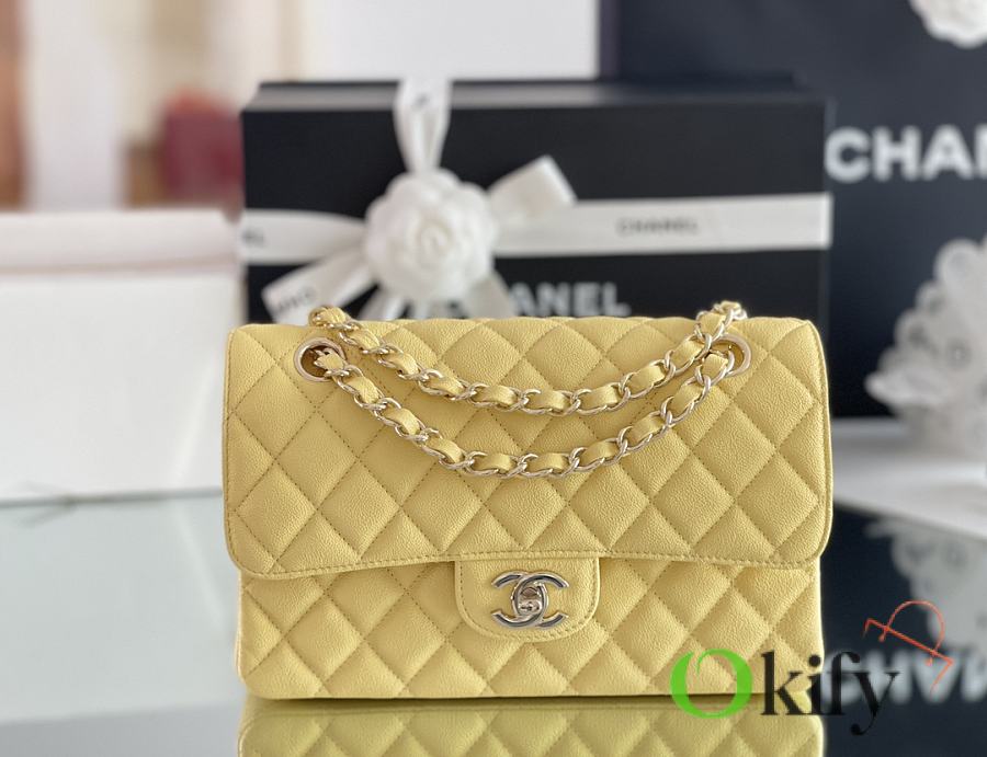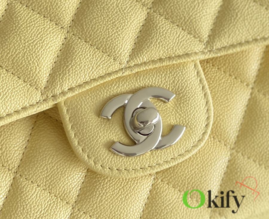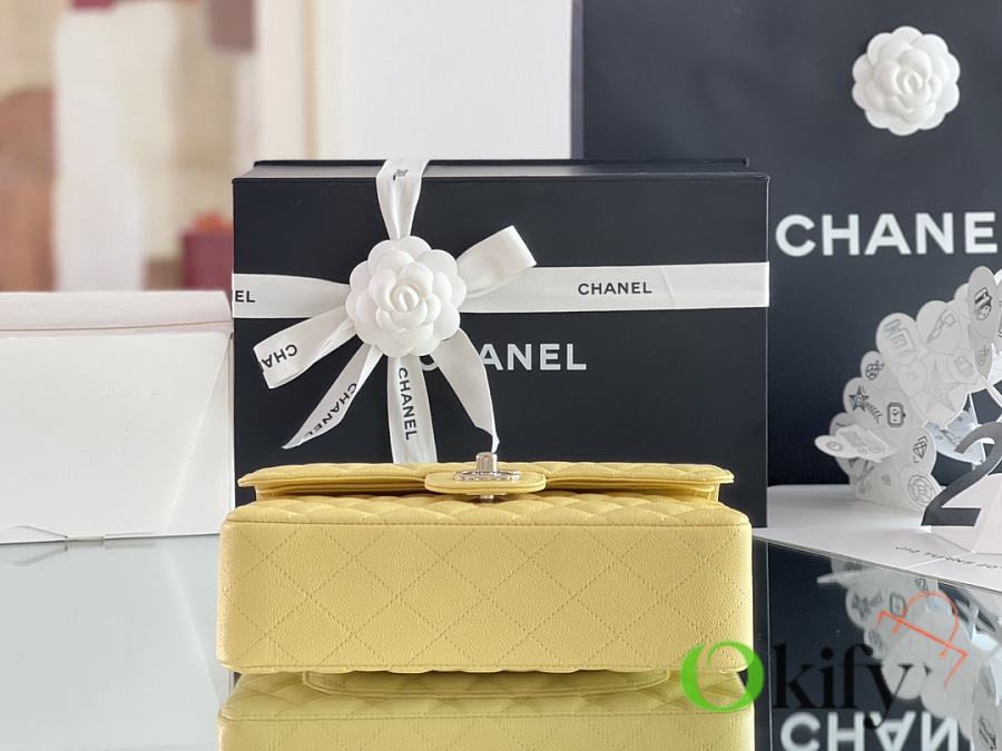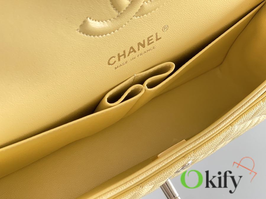 Okify CC Flap Bag In Light Yellow Caviar With Light Gold Hardware 23x14.5x6cm