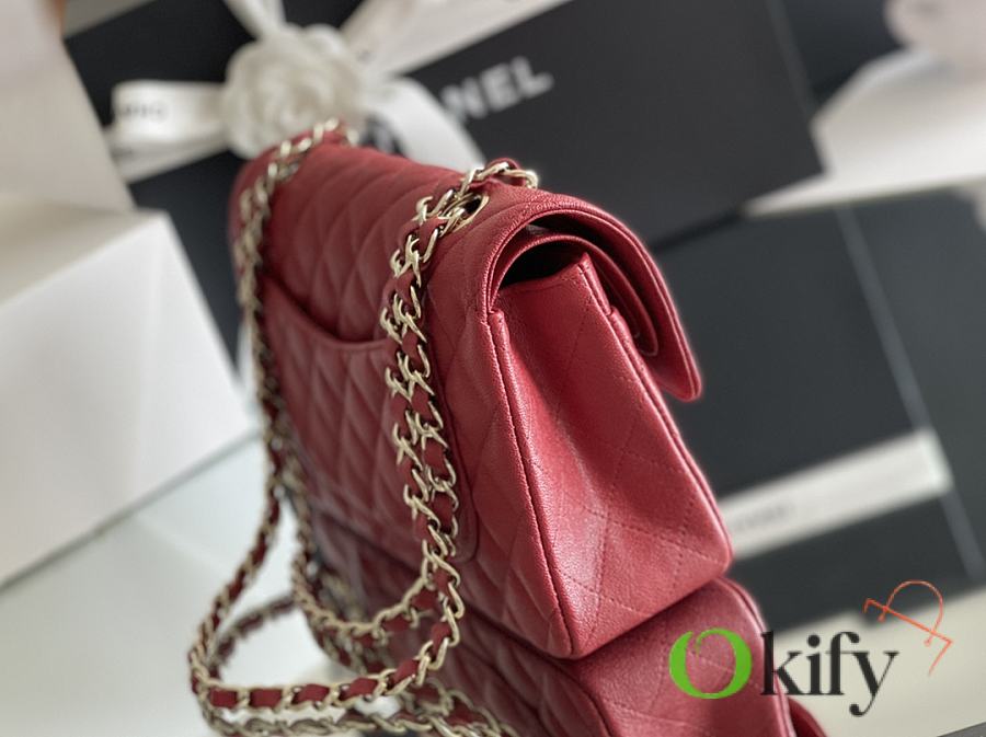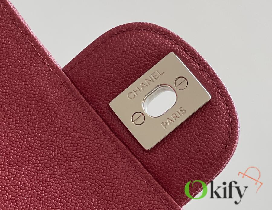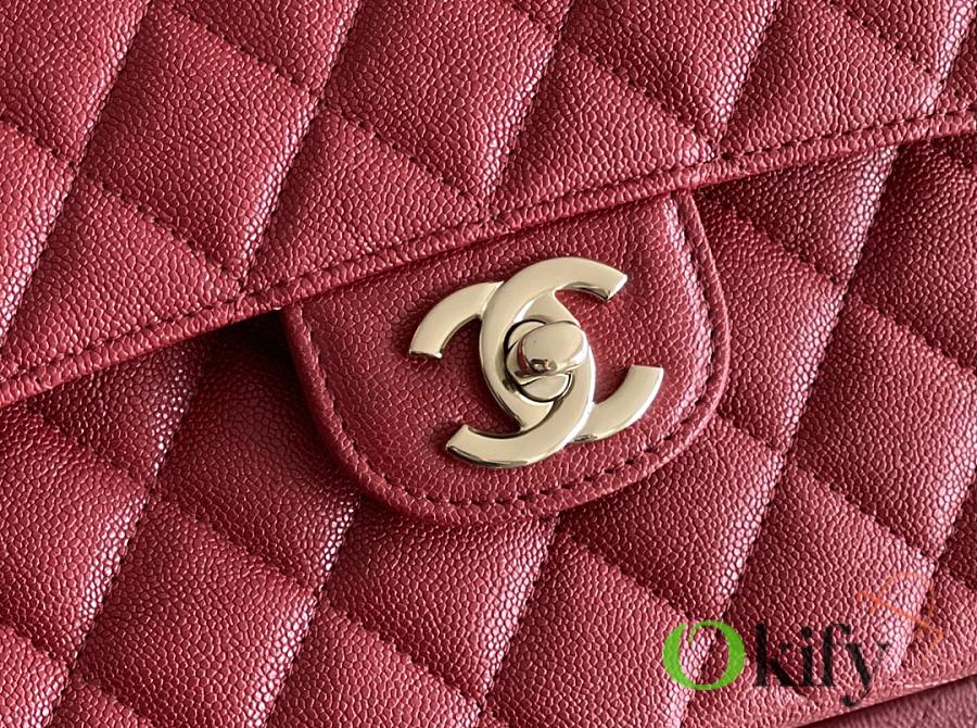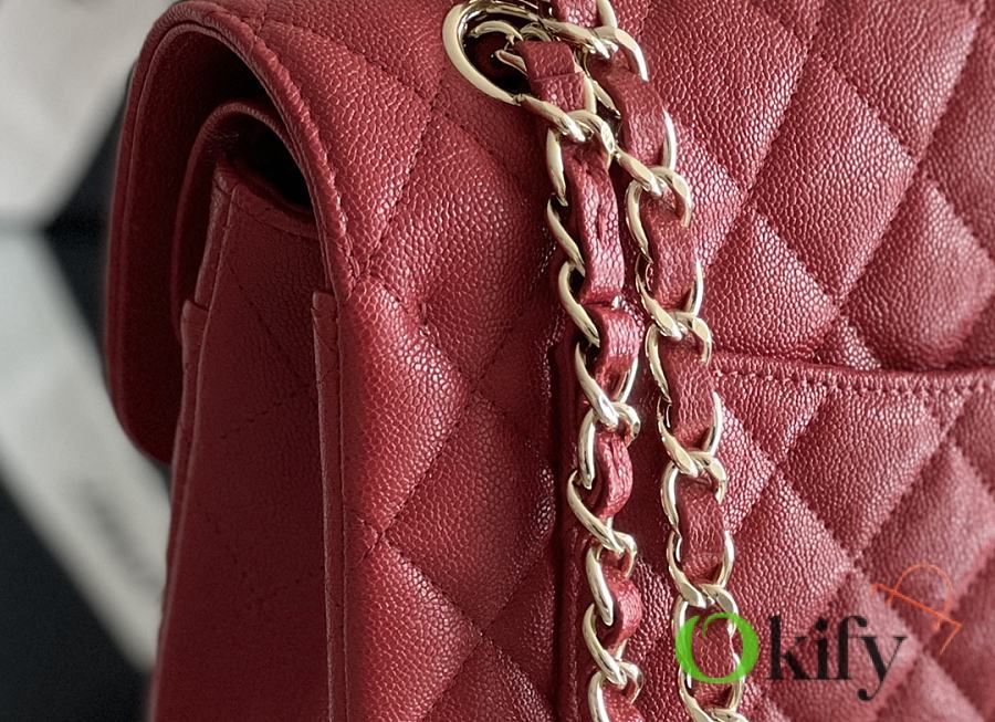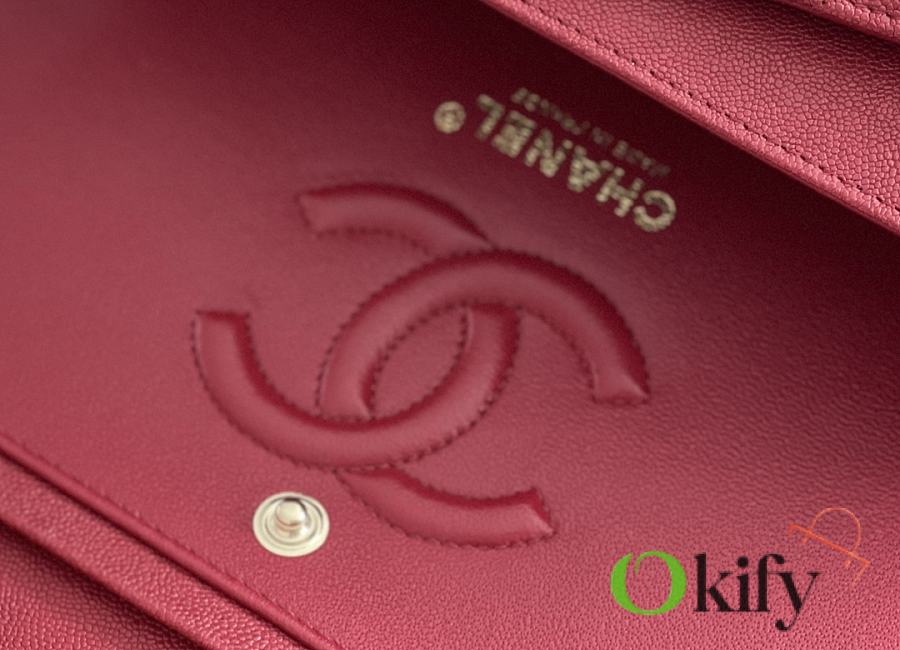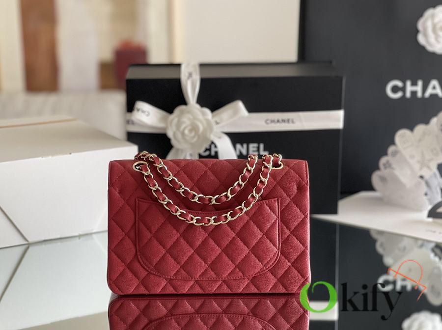 Okify CC Flap Bag In Red Caviar With Light Gold Hardware 23x14.5x6cm