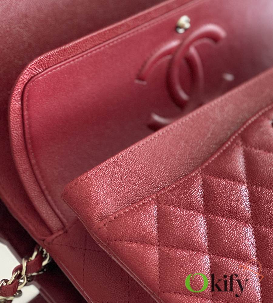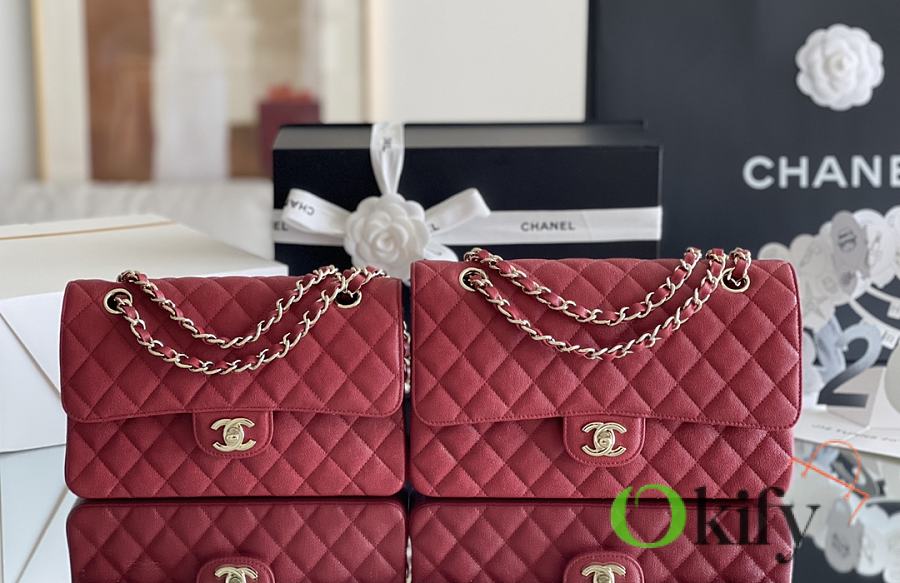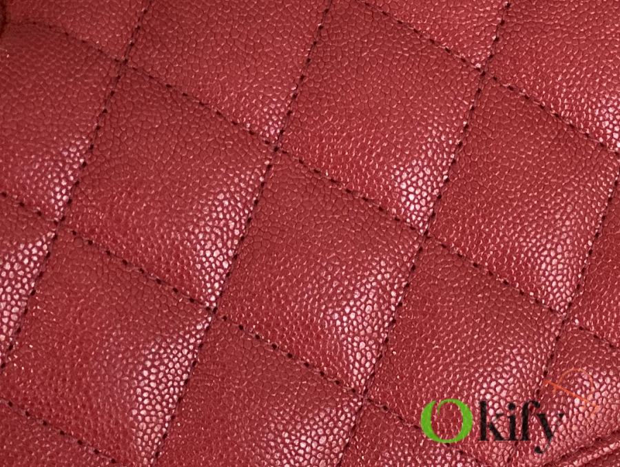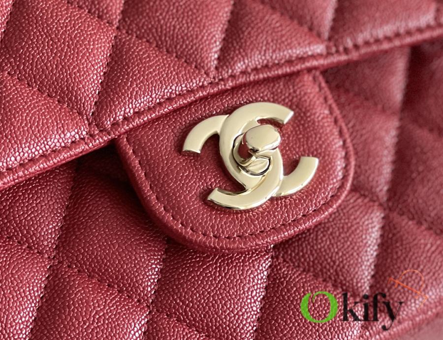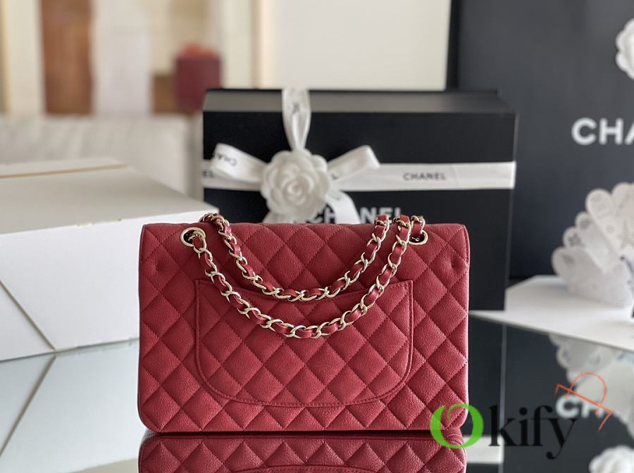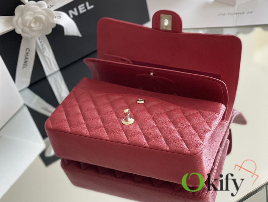 Okify CC Flap Bag In Red Caviar With Light Gold Hardware 25.5x15.5x6.5cm
