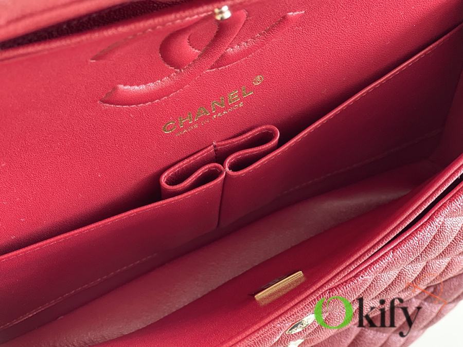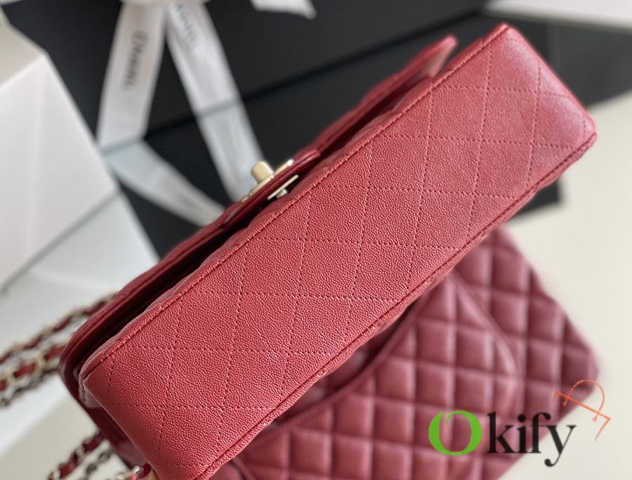 Okify CC Flap Bag In Red Caviar With Light Gold Hardware 23x14.5x6cm