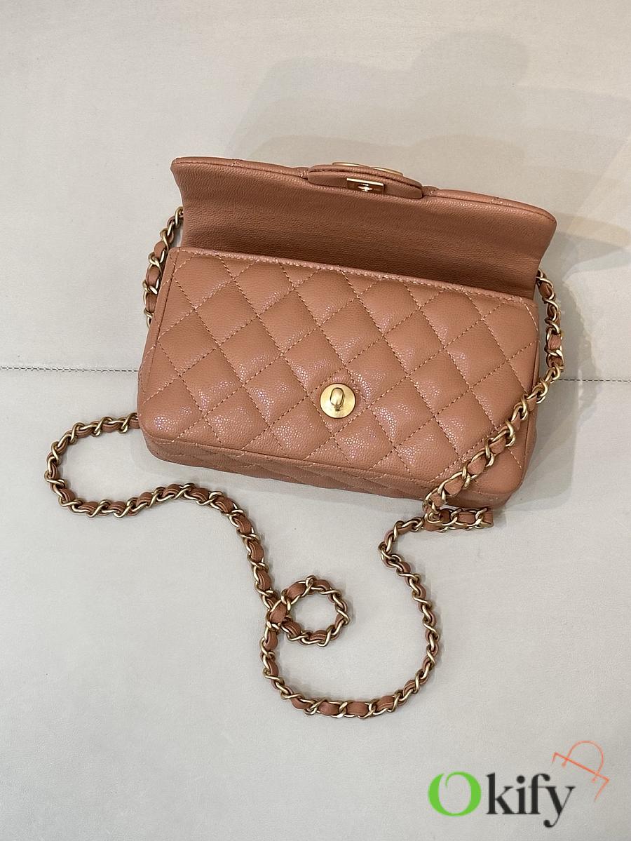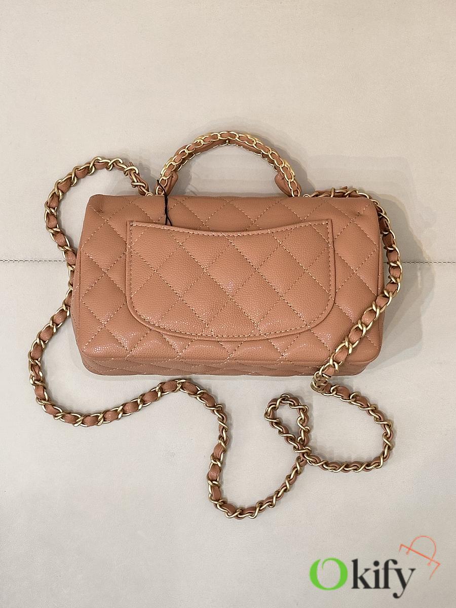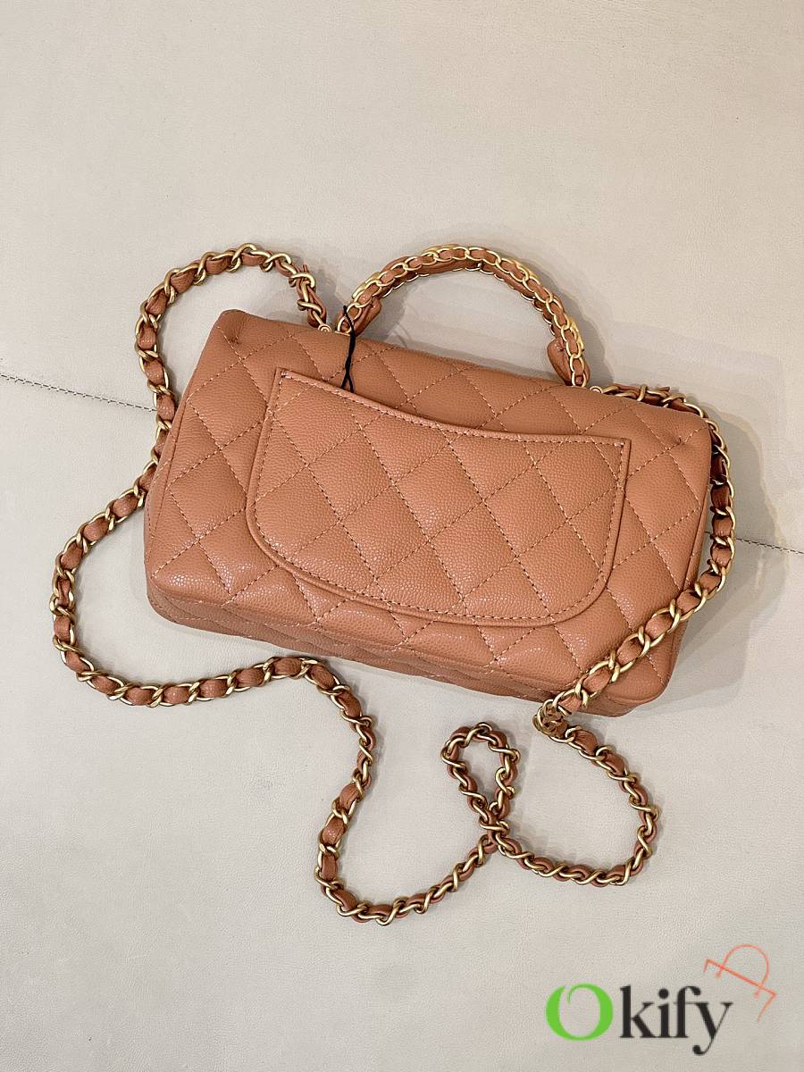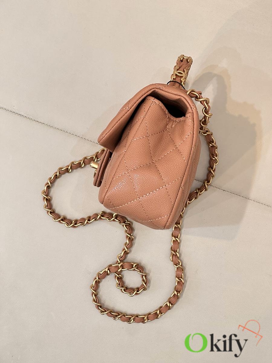 Okify CC Flap Bag With Handle In Peach Caviar 19.5x12x6.5cm