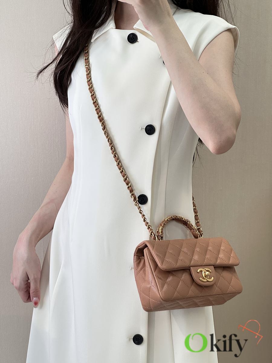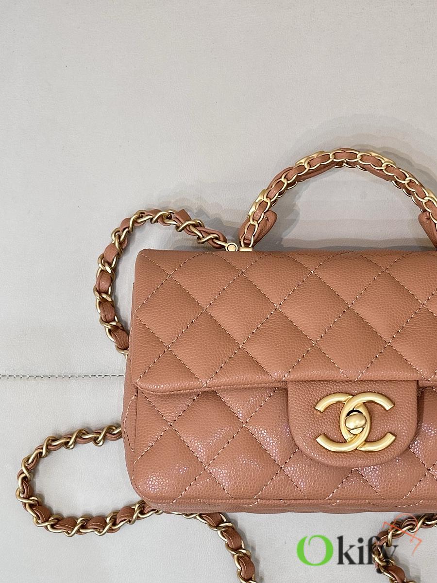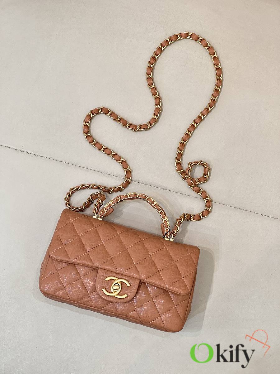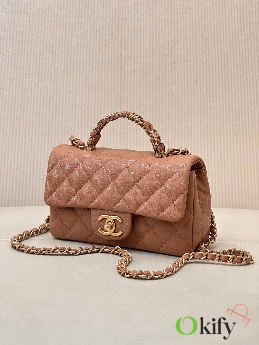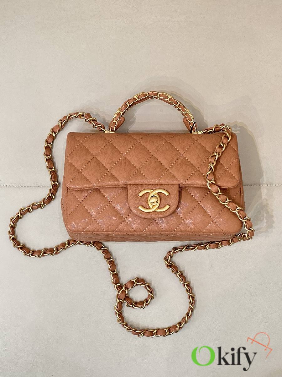Okify CC Flap Bag With Handle In Peach Caviar 19.5x12x6.5cm
