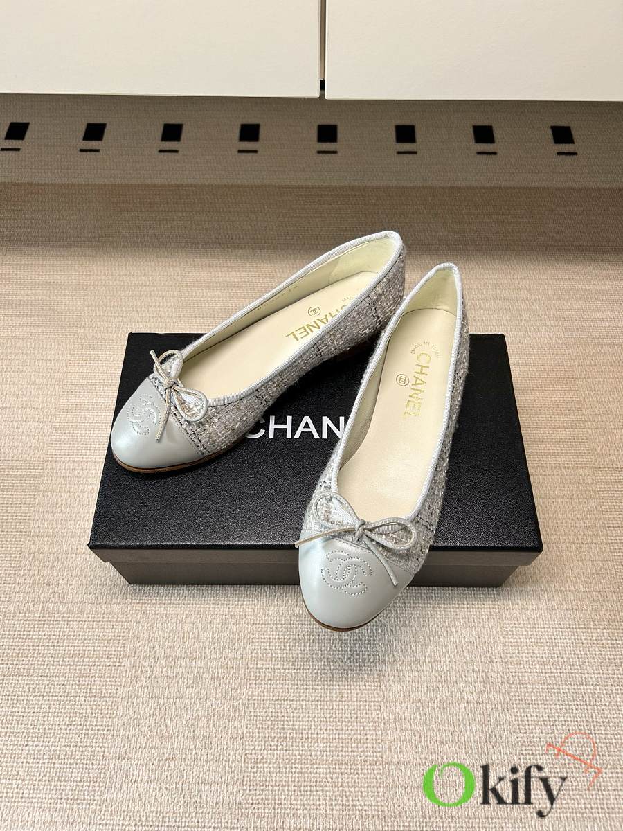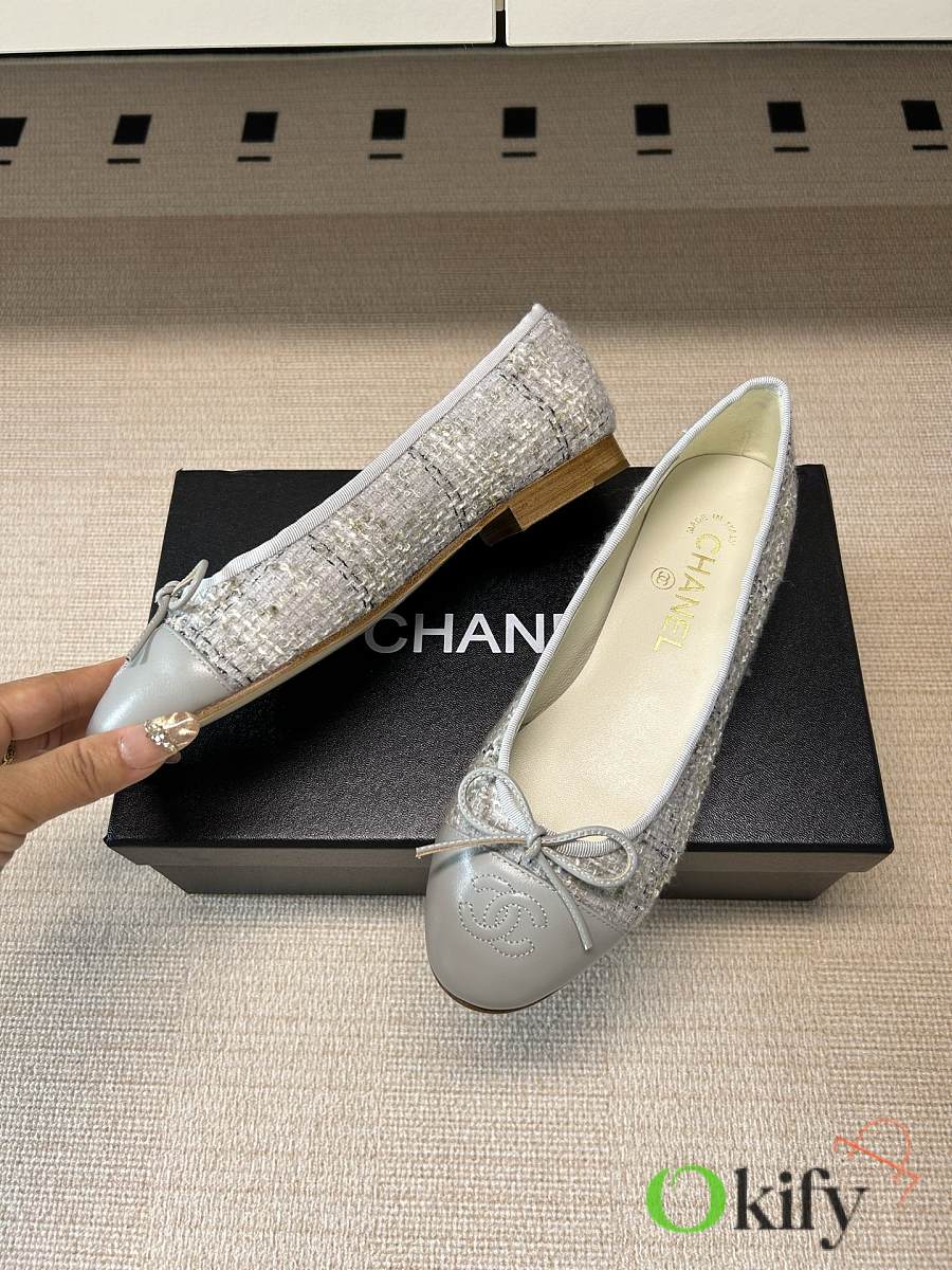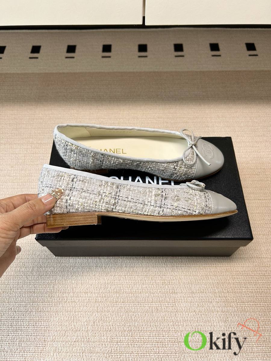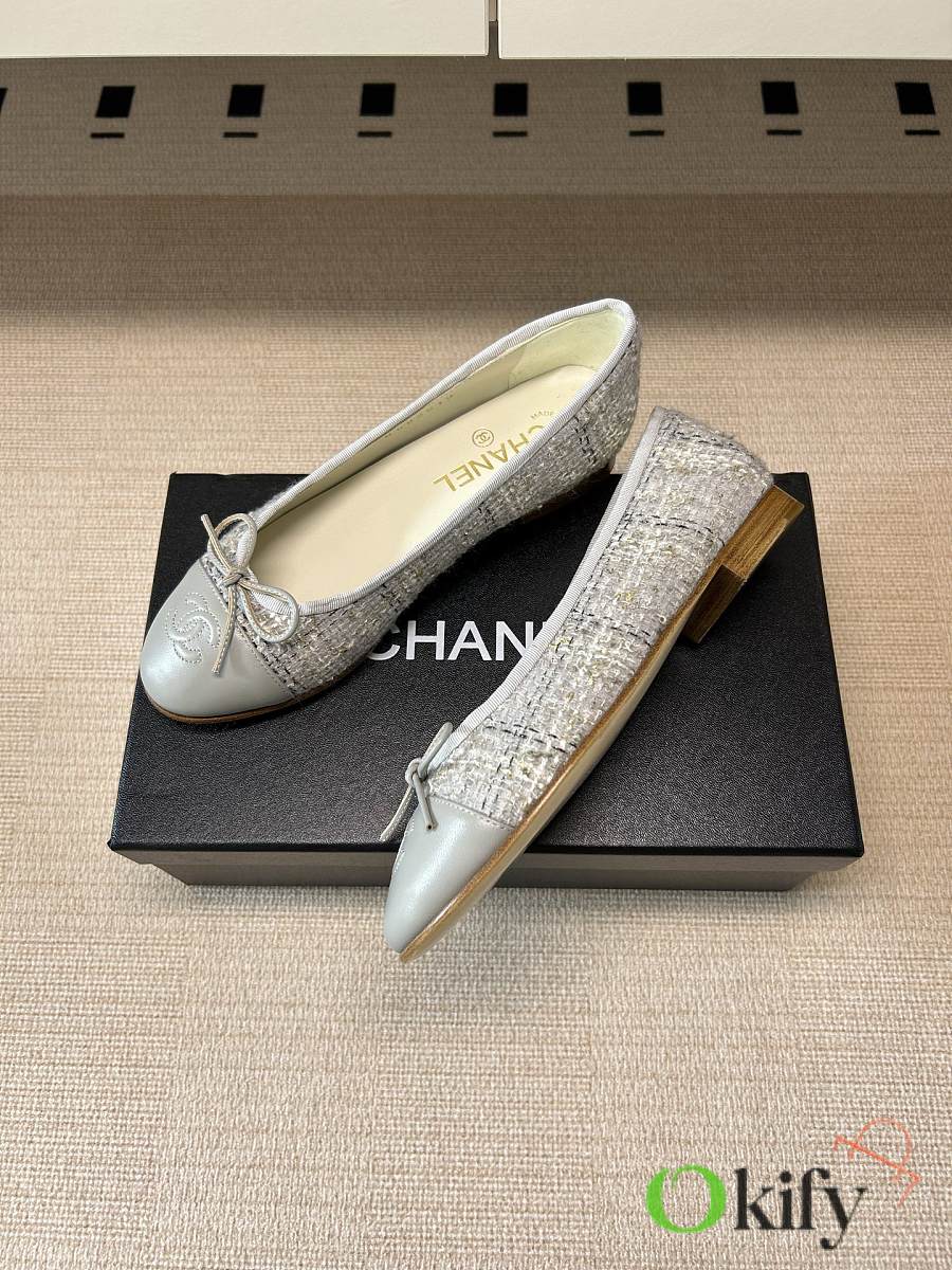 Okify CC Gray Tweed Ballet Shoes