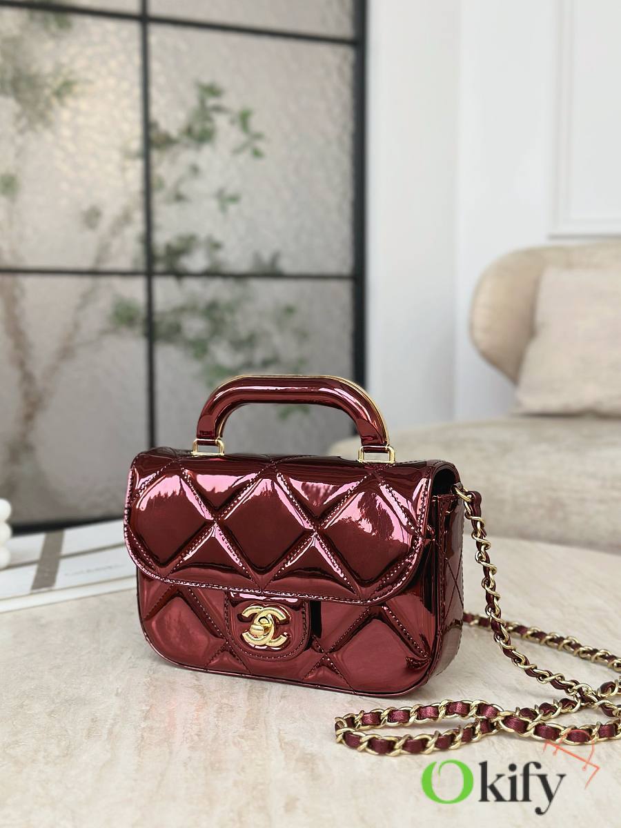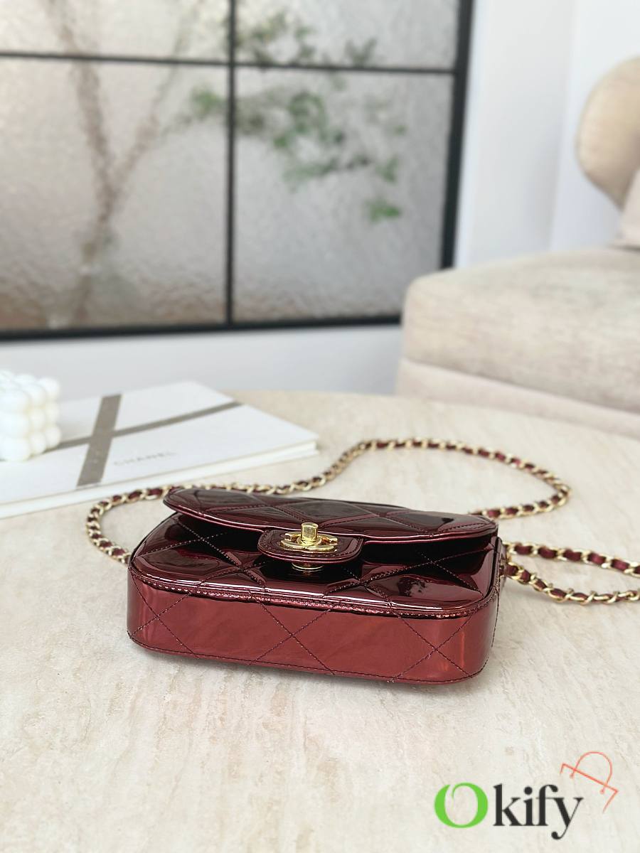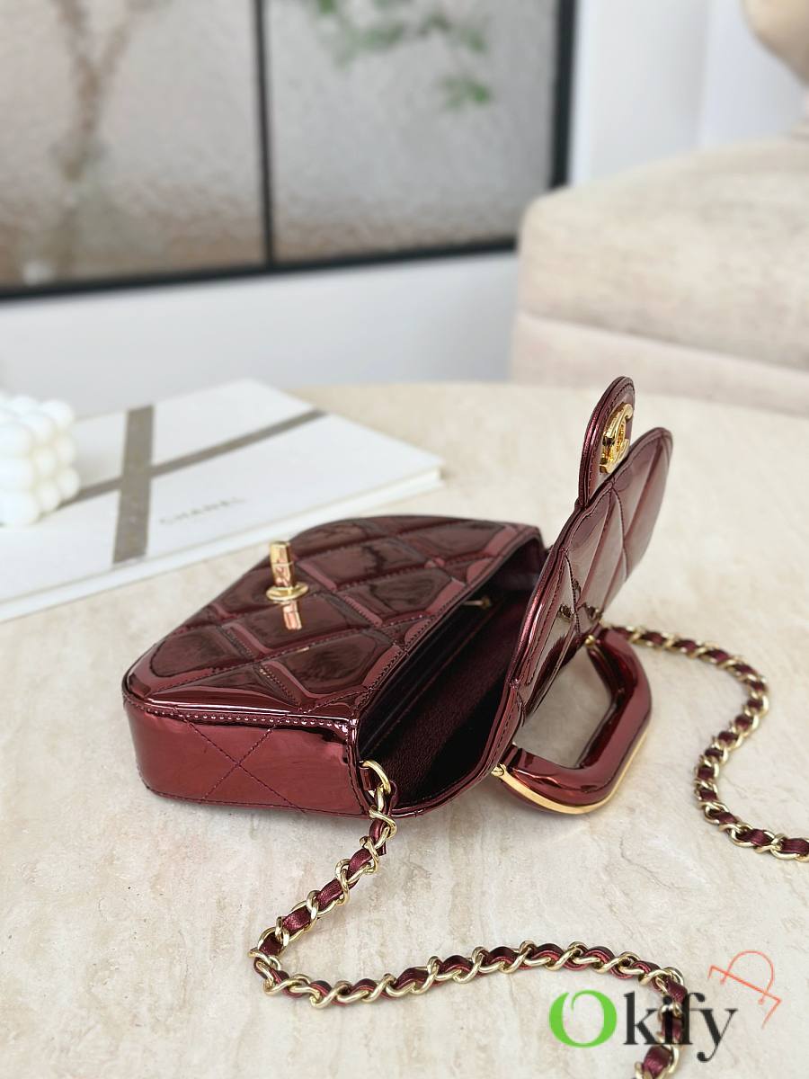 This bag features a large diamond pattern and a flap handle design, making it suitable for carrying by hand or over the shoulder. The patent leather mirror material is really eye-catching, just like a Sailor Moon bag. Radiant with her own light, a perfect blend of sweetness and coolness! She exudes a sophisticated, elegant vibe. The chain is made of leather in the same color family and is the perfect length – not too long!