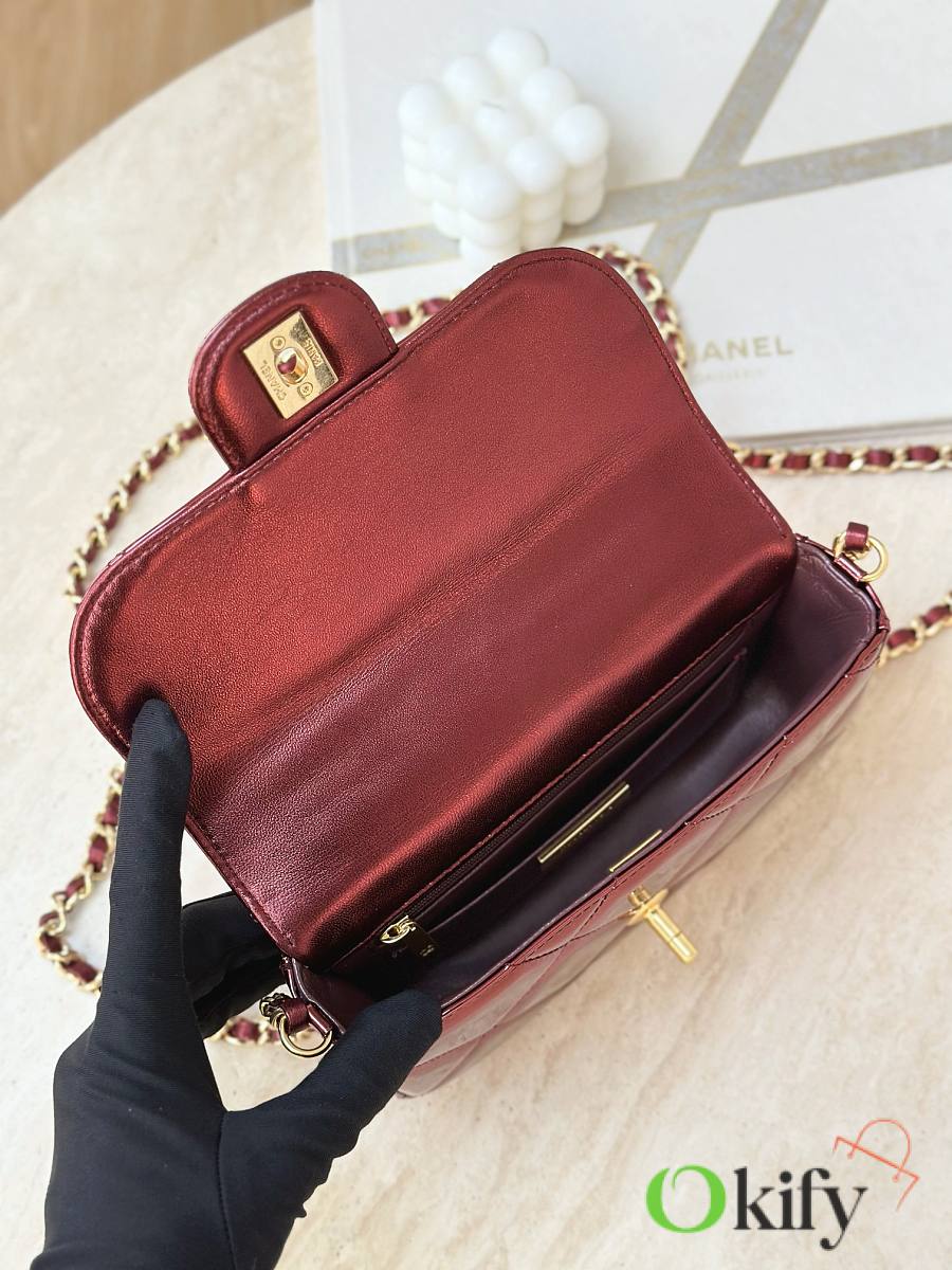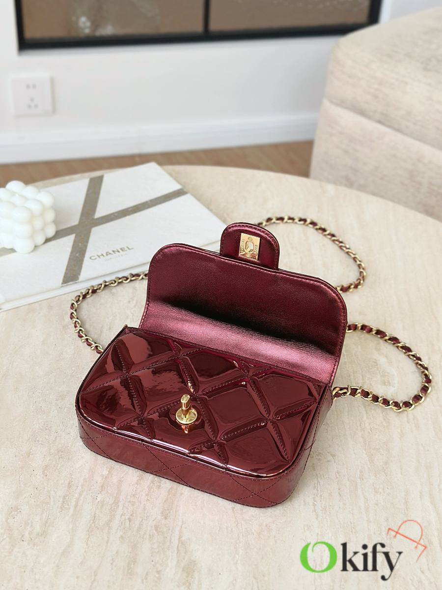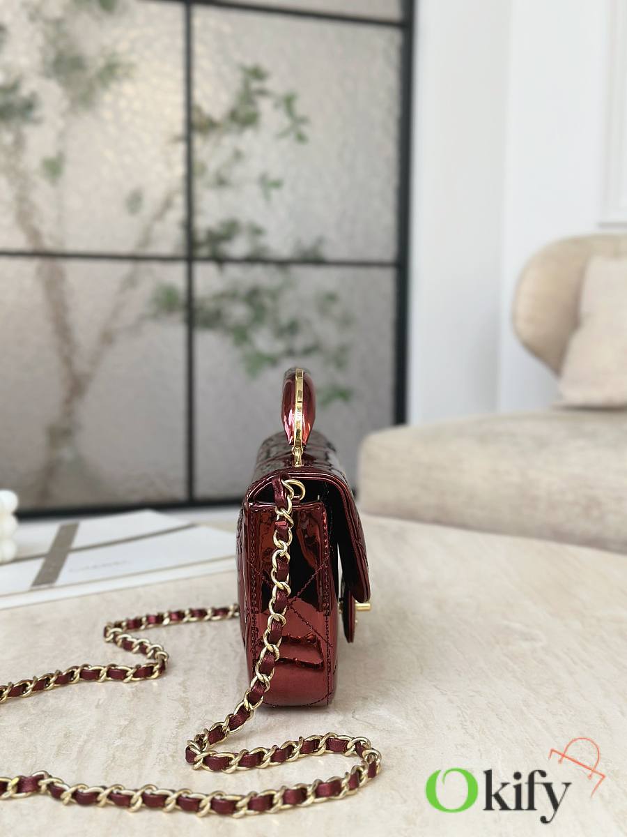 This bag features a large diamond pattern and a flap handle design, making it suitable for carrying by hand or over the shoulder. The patent leather mirror material is really eye-catching, just like a Sailor Moon bag. Radiant with her own light, a perfect blend of sweetness and coolness! She exudes a sophisticated, elegant vibe. The chain is made of leather in the same color family and is the perfect length – not too long!