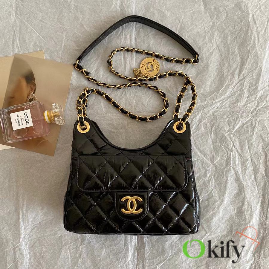 Okify CC Small Bag With Top Handle Lambskin & Gold-Tone Metal Black