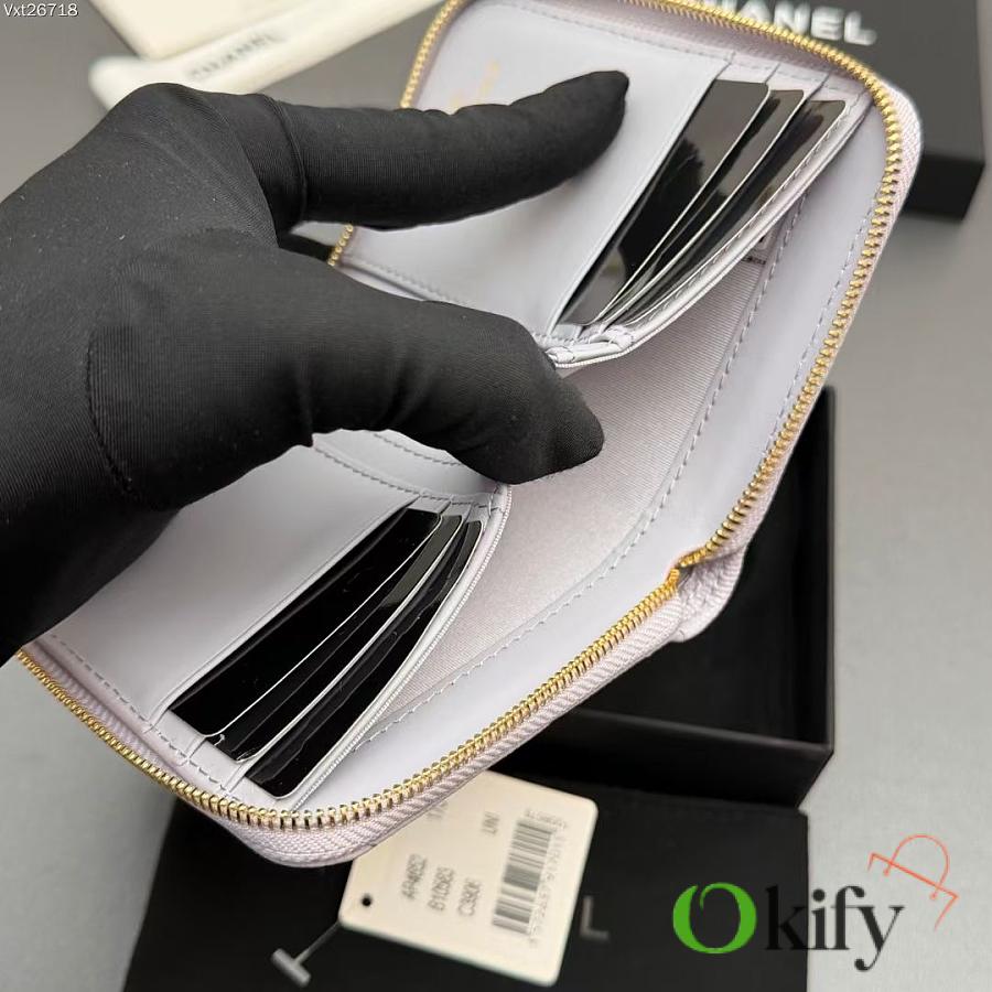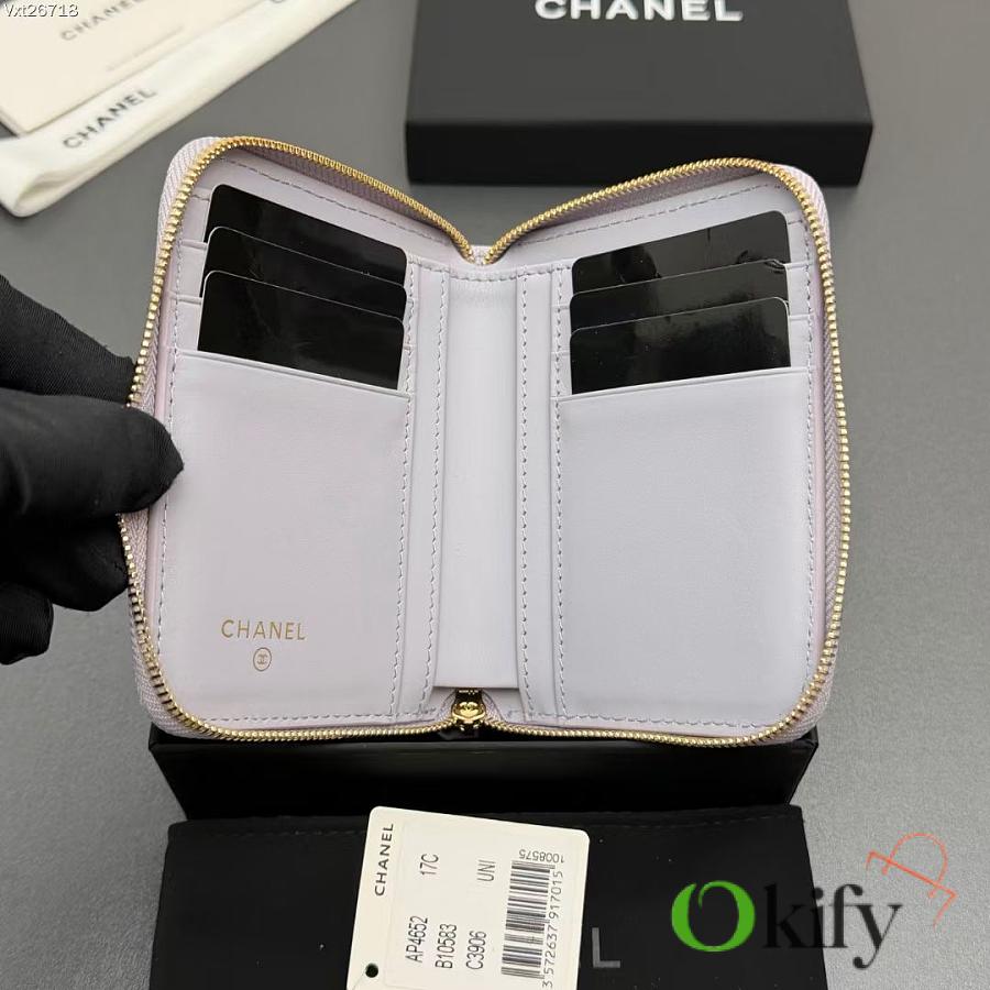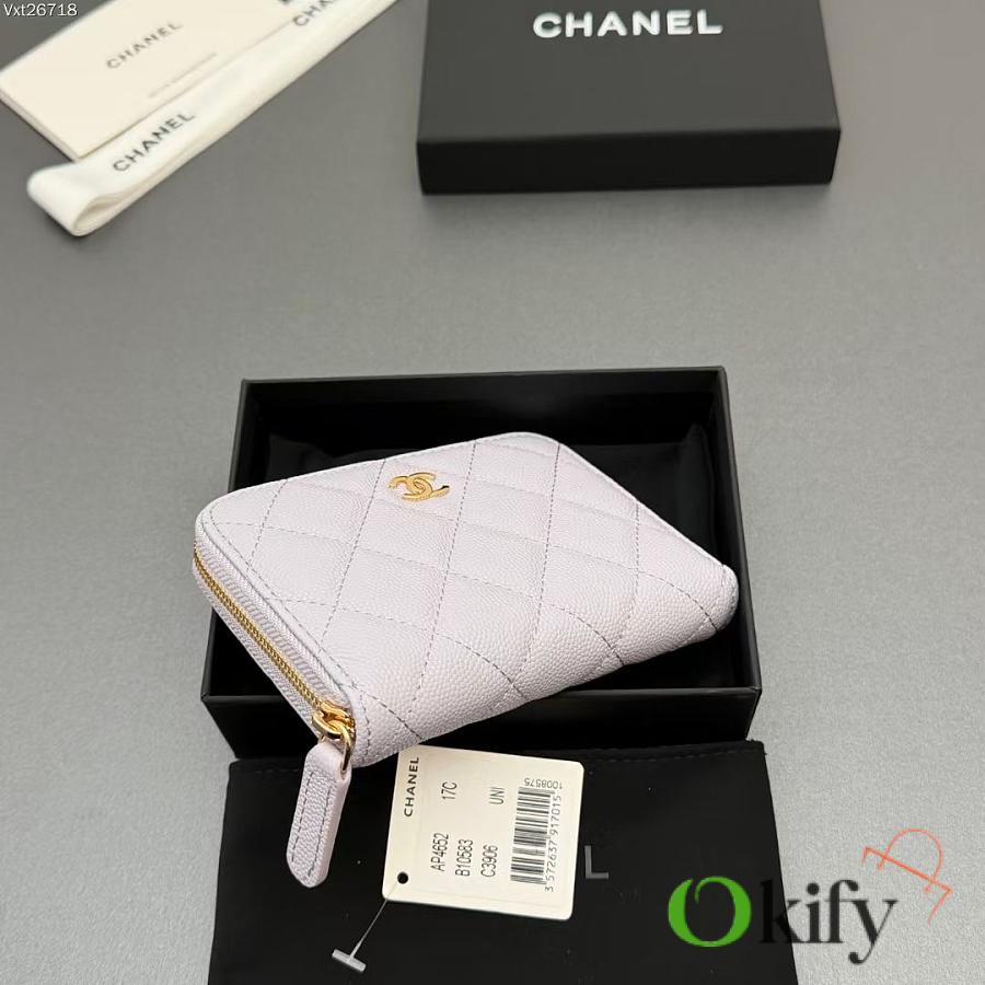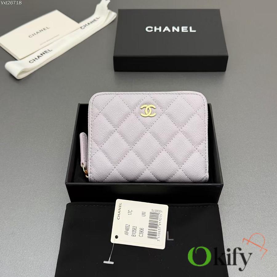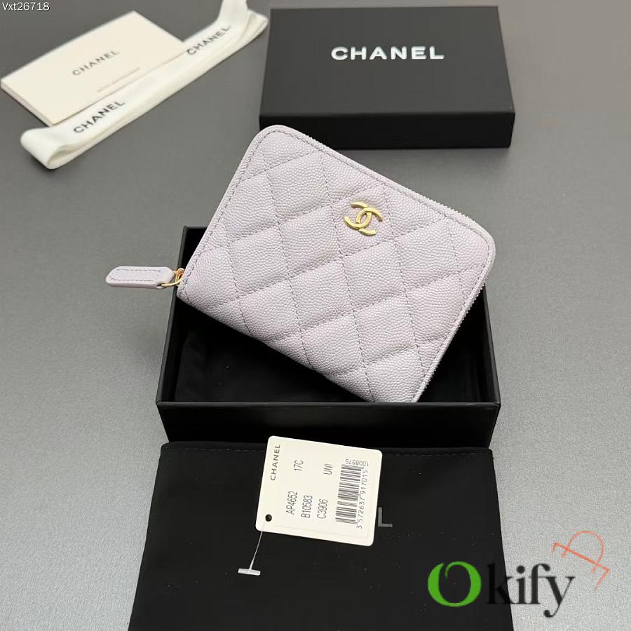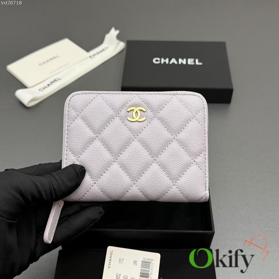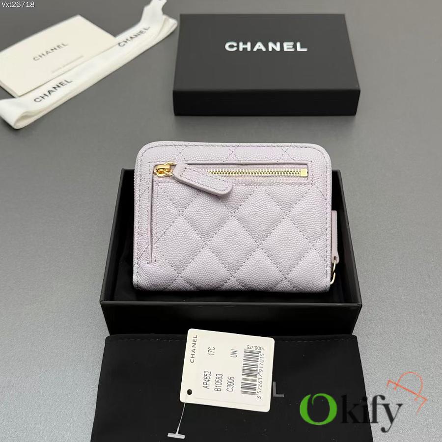 Okify CC Light Purple Caviar Zipper Small Wallet 12x9x2cm