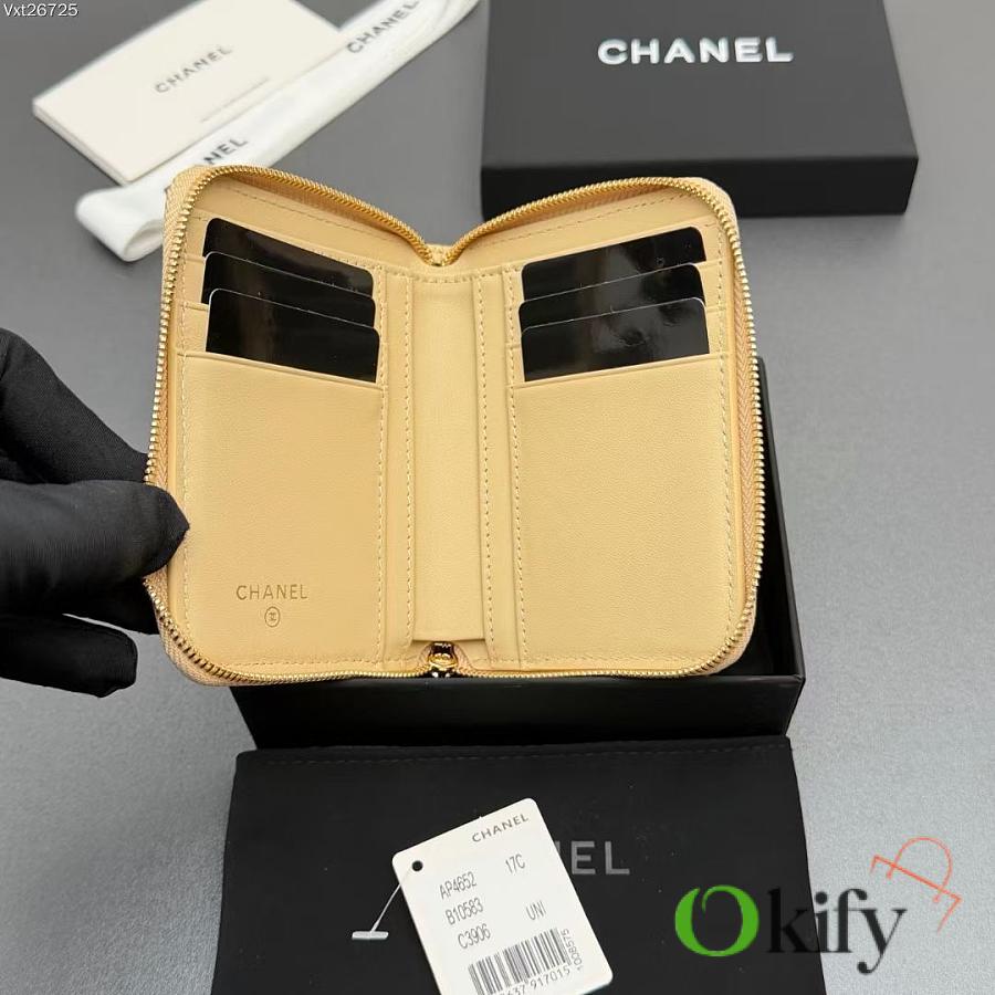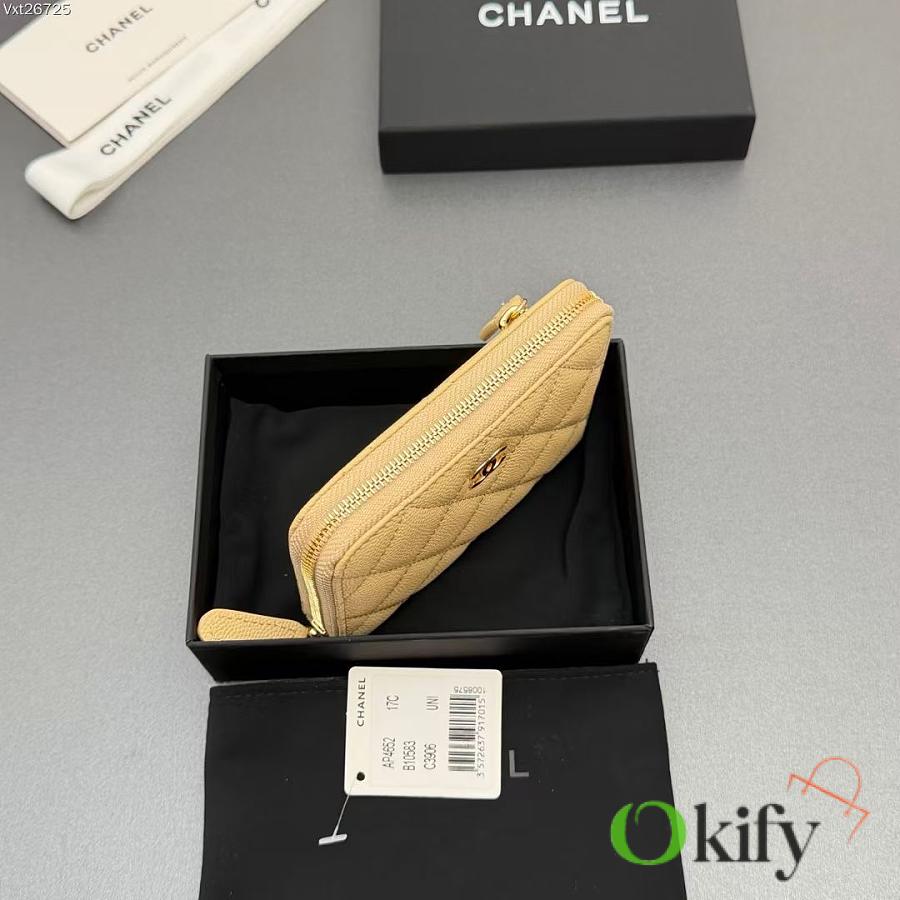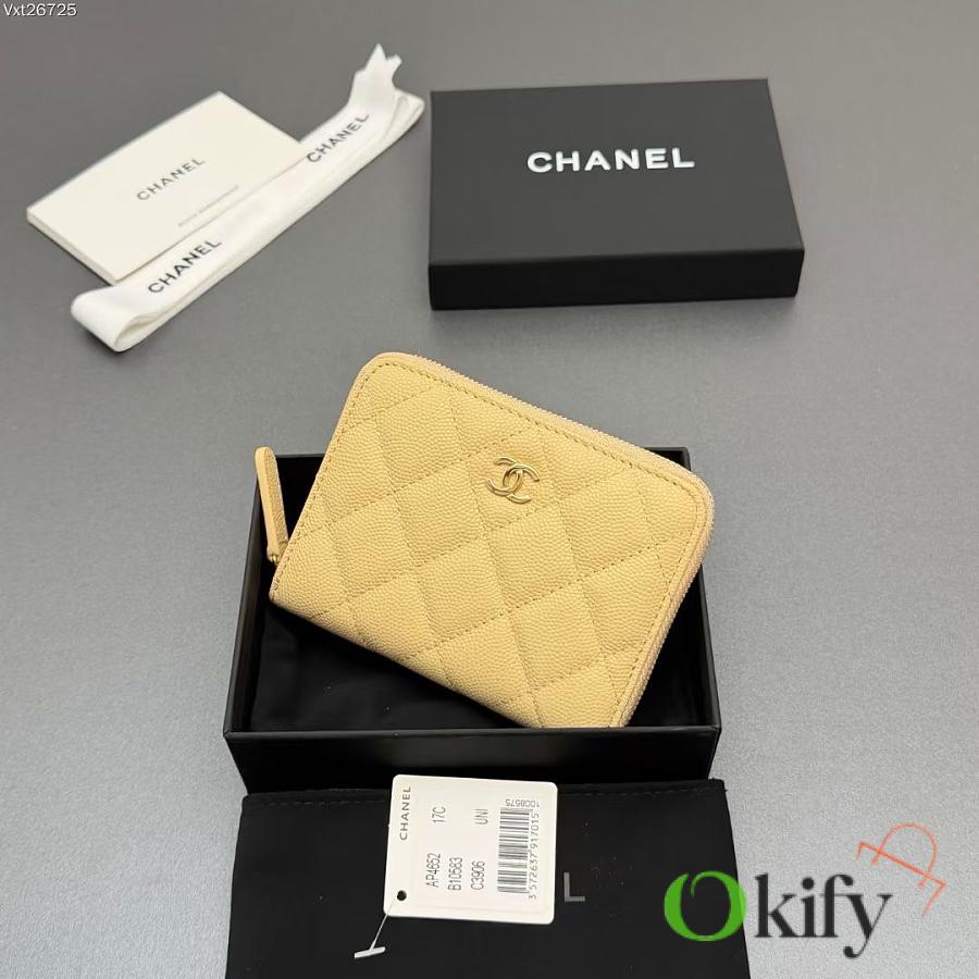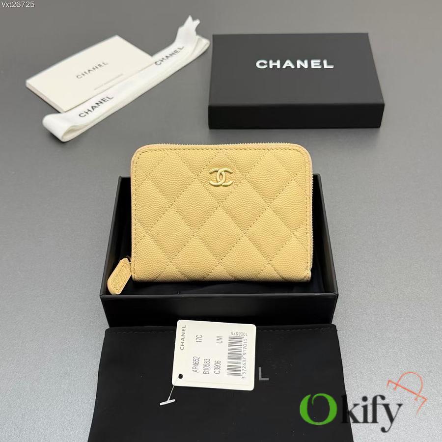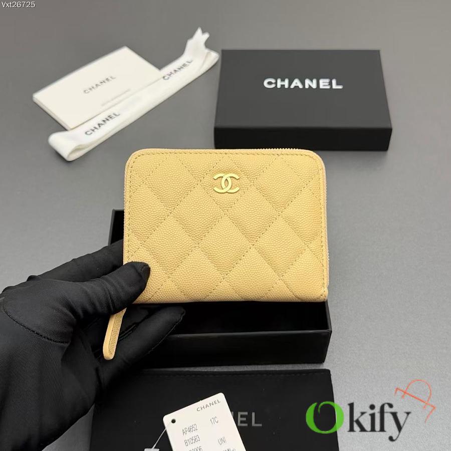 Okify CC Light Yellow Caviar Zipper Small Wallet 12x9x2cm