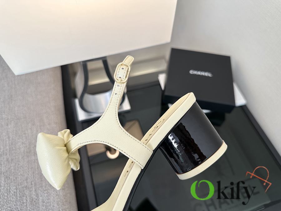 Okify CC Off White Bow High Heel Sandals 5.5cm