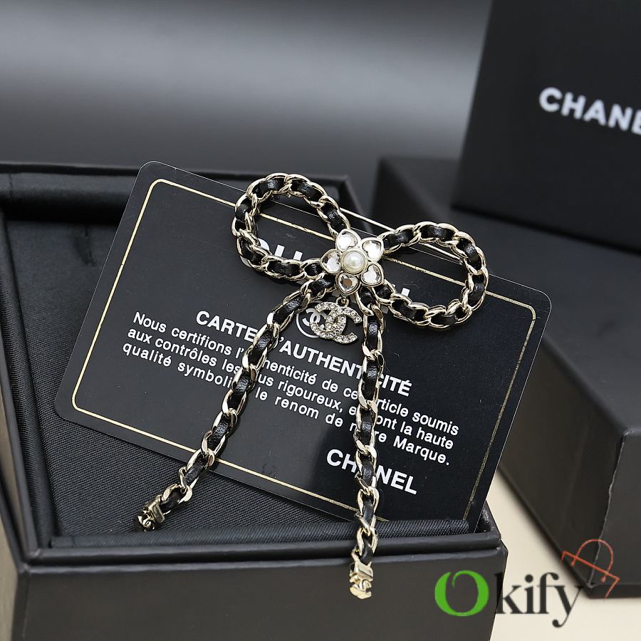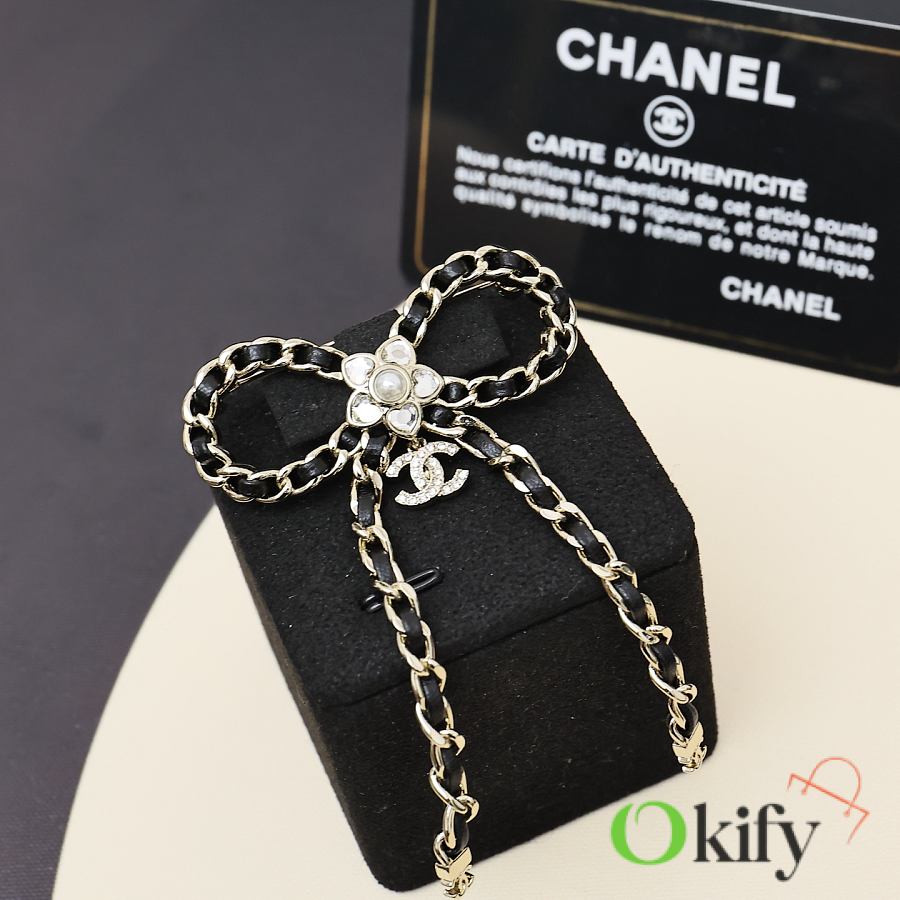 Okify CC Silver Chain Bow Brooch
