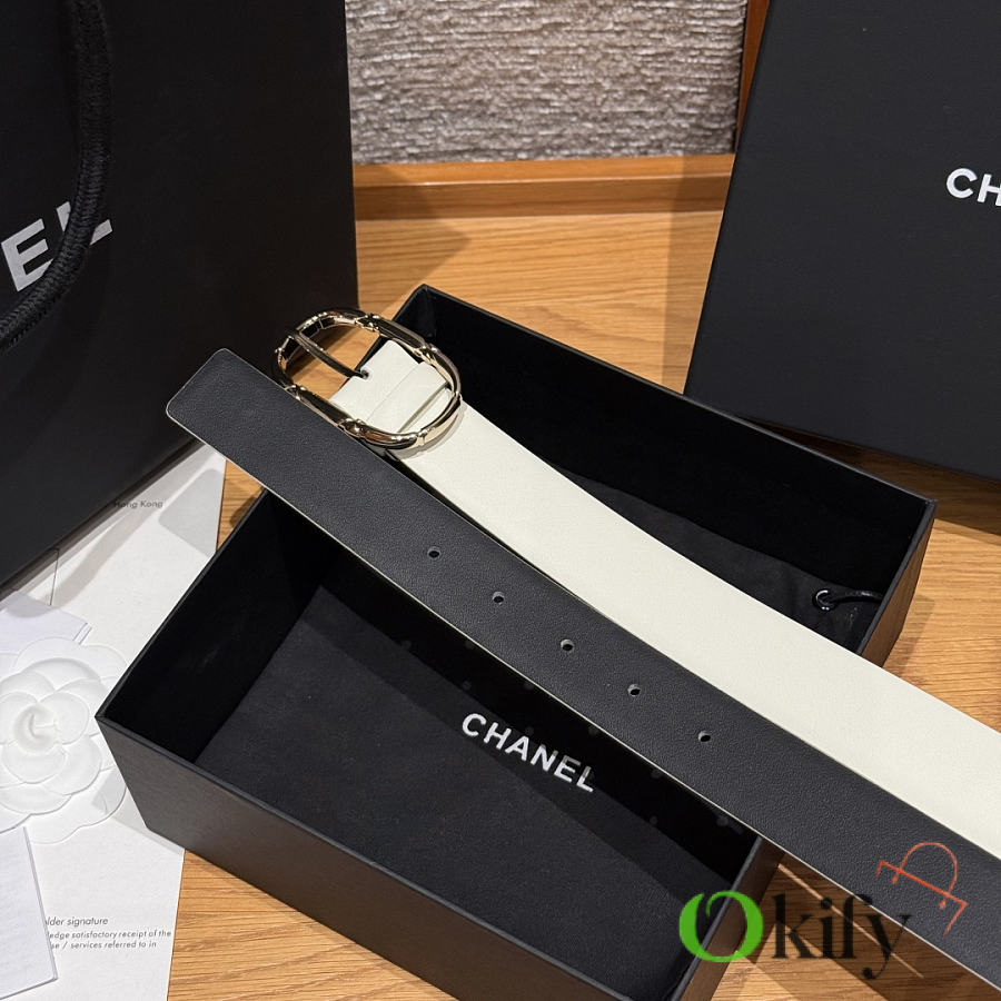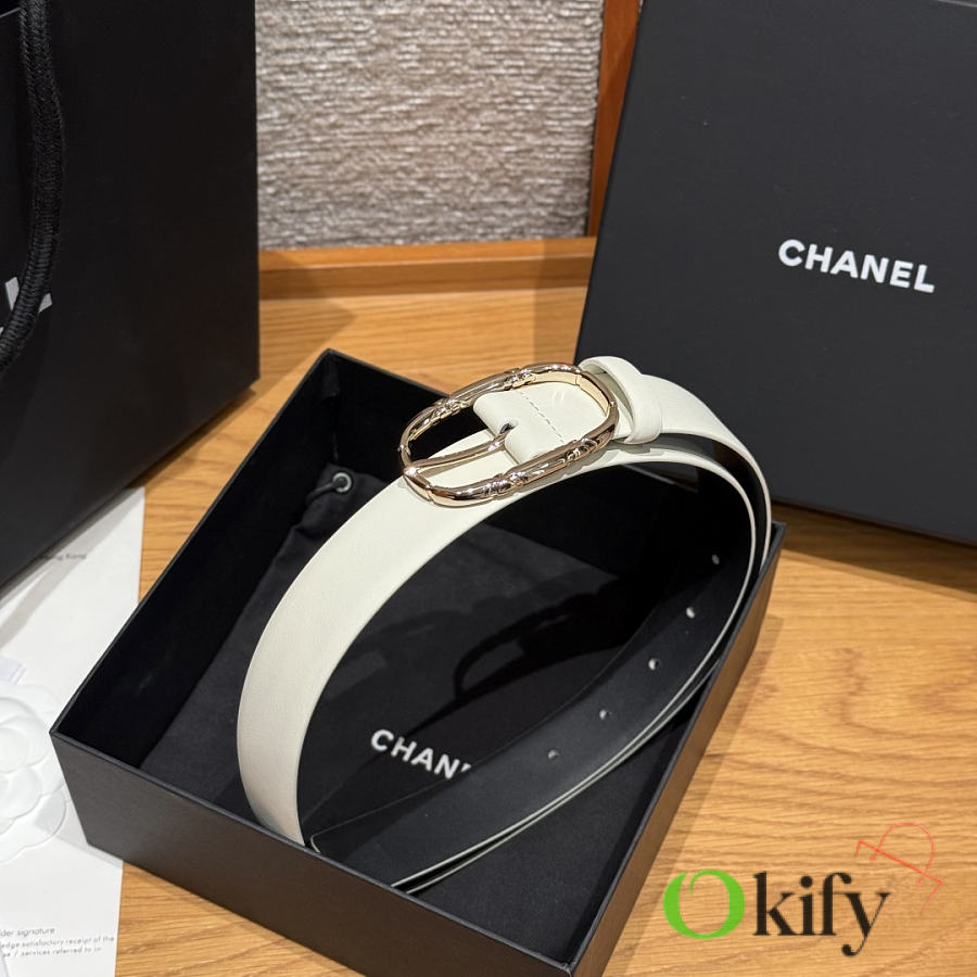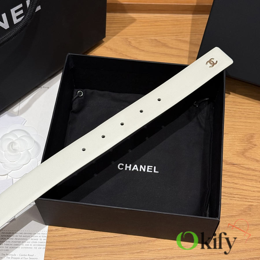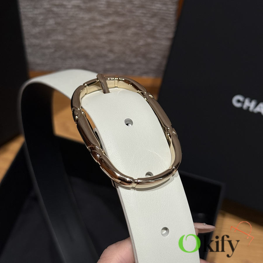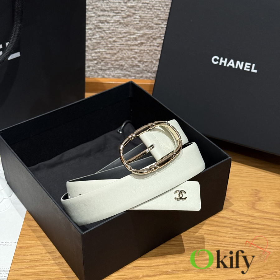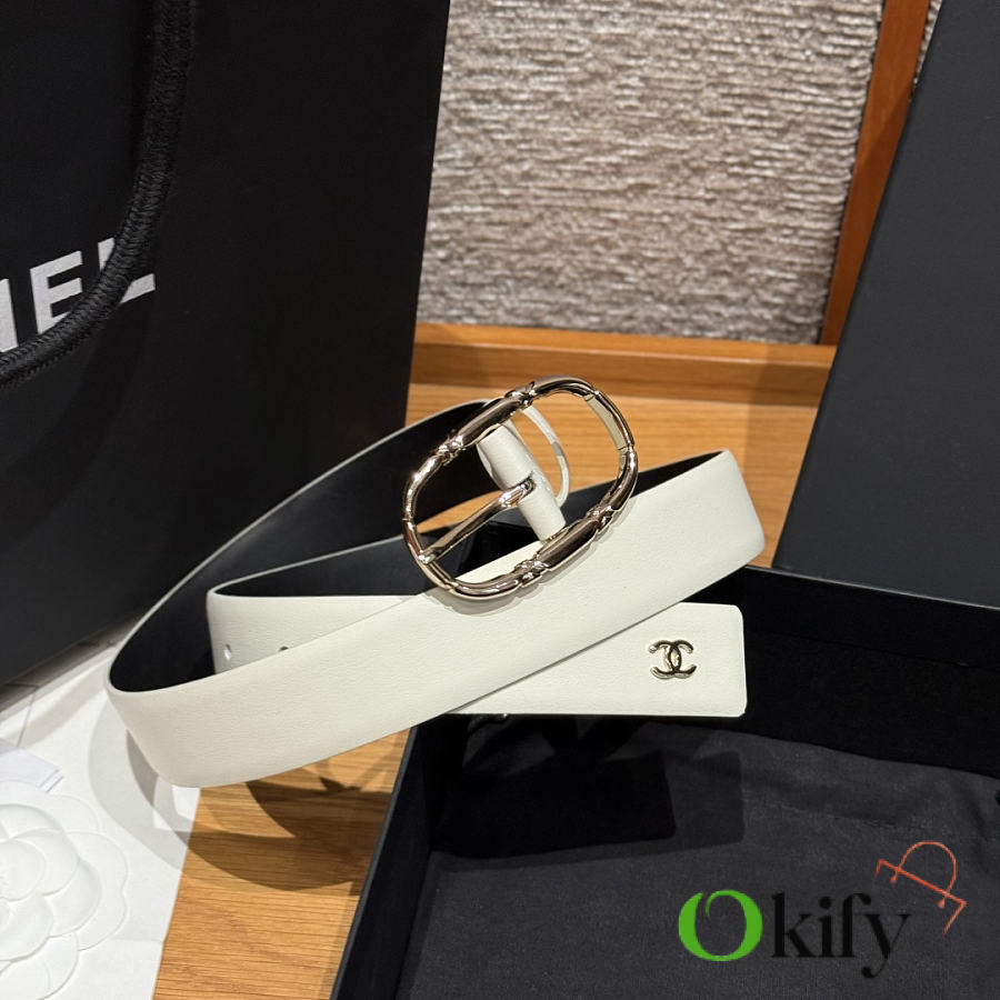 Okify CC White Plain Belt Silver Hardware 3cm