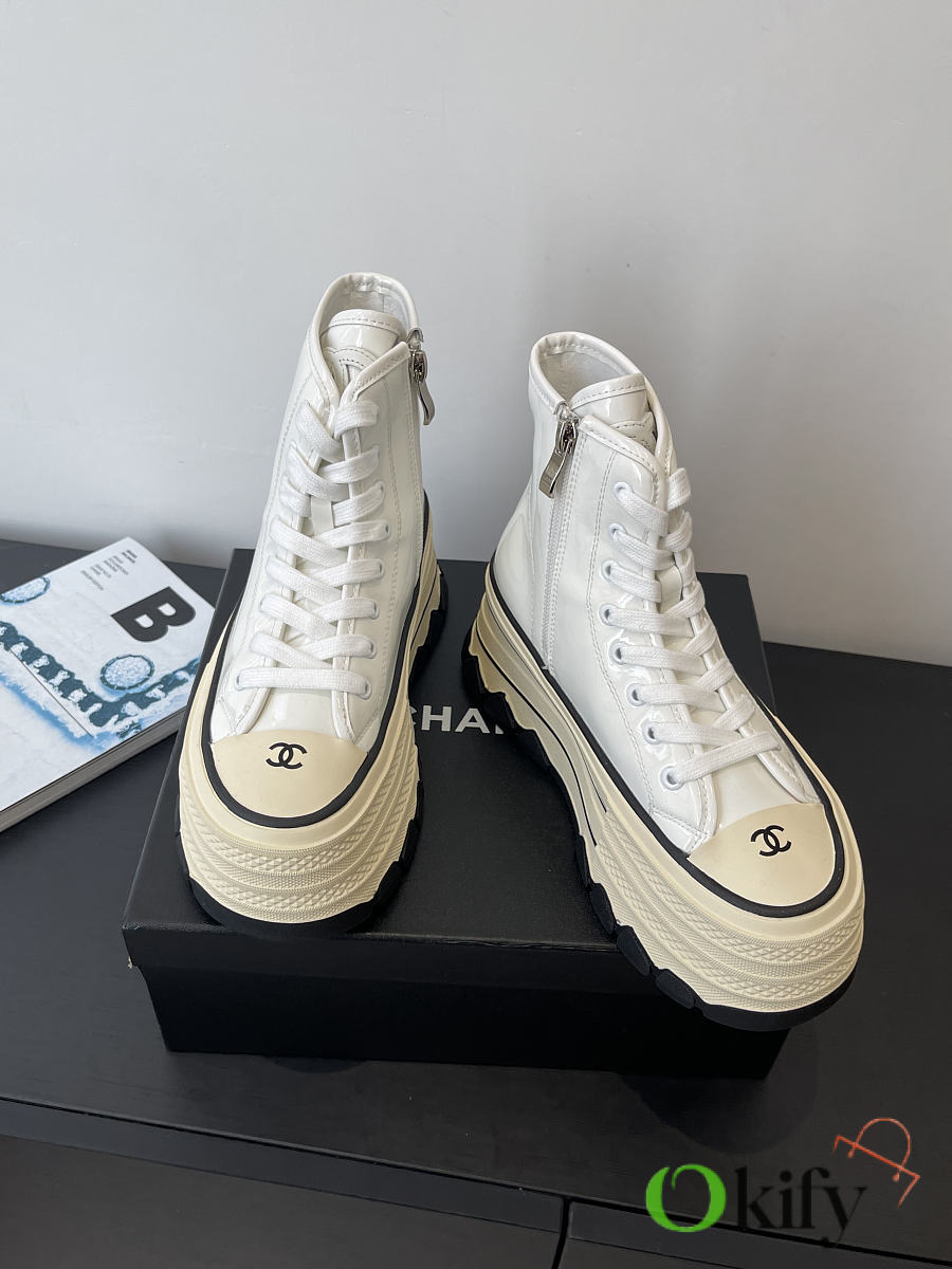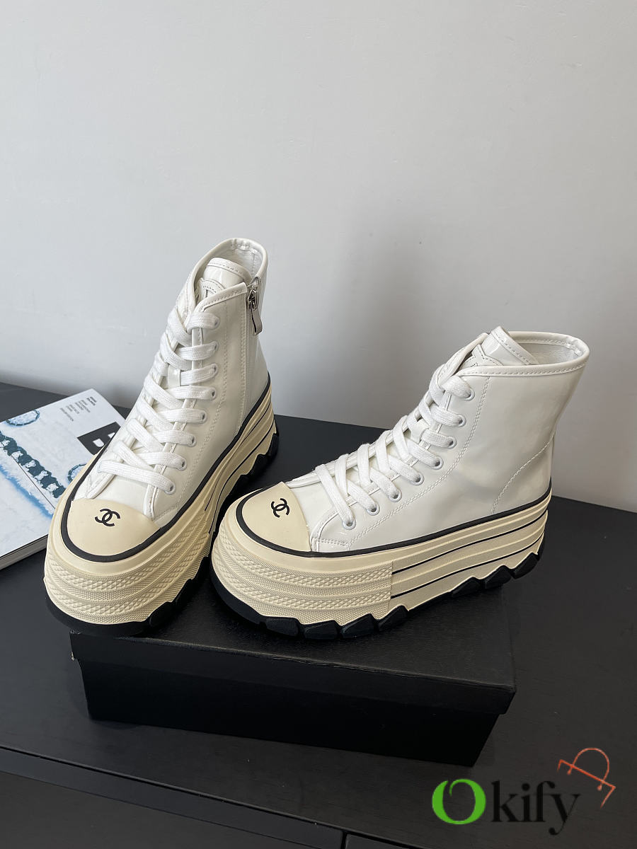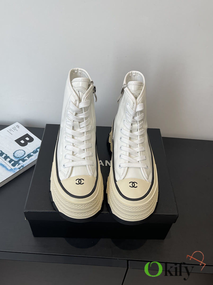 I've got this vintage-inspired retro style! The white sneakers paired with black and white color blocking have a Chanel vibe, while the socks give it a retro, preppy feel. The upper is made of cowhide and the lining is made of sheepskin. 6cm heel height, original TPU composite outsole