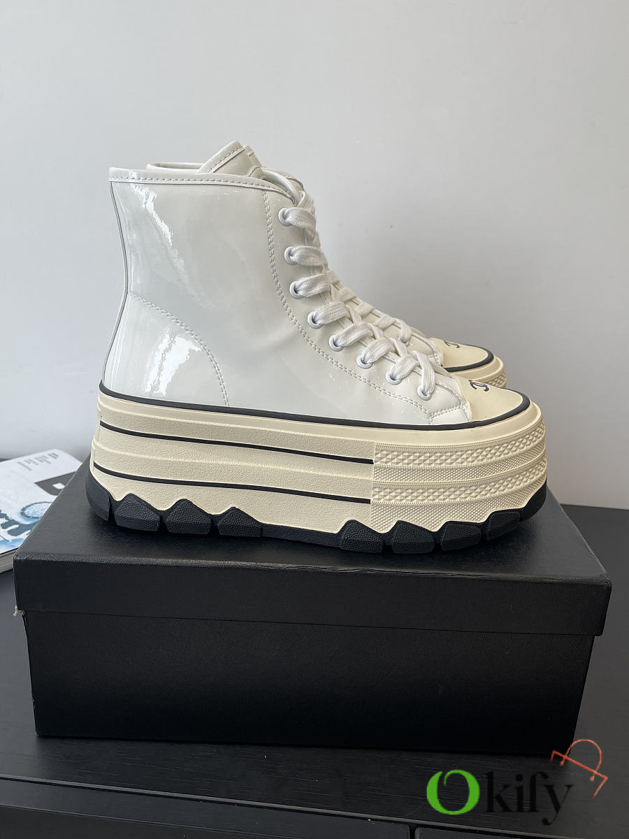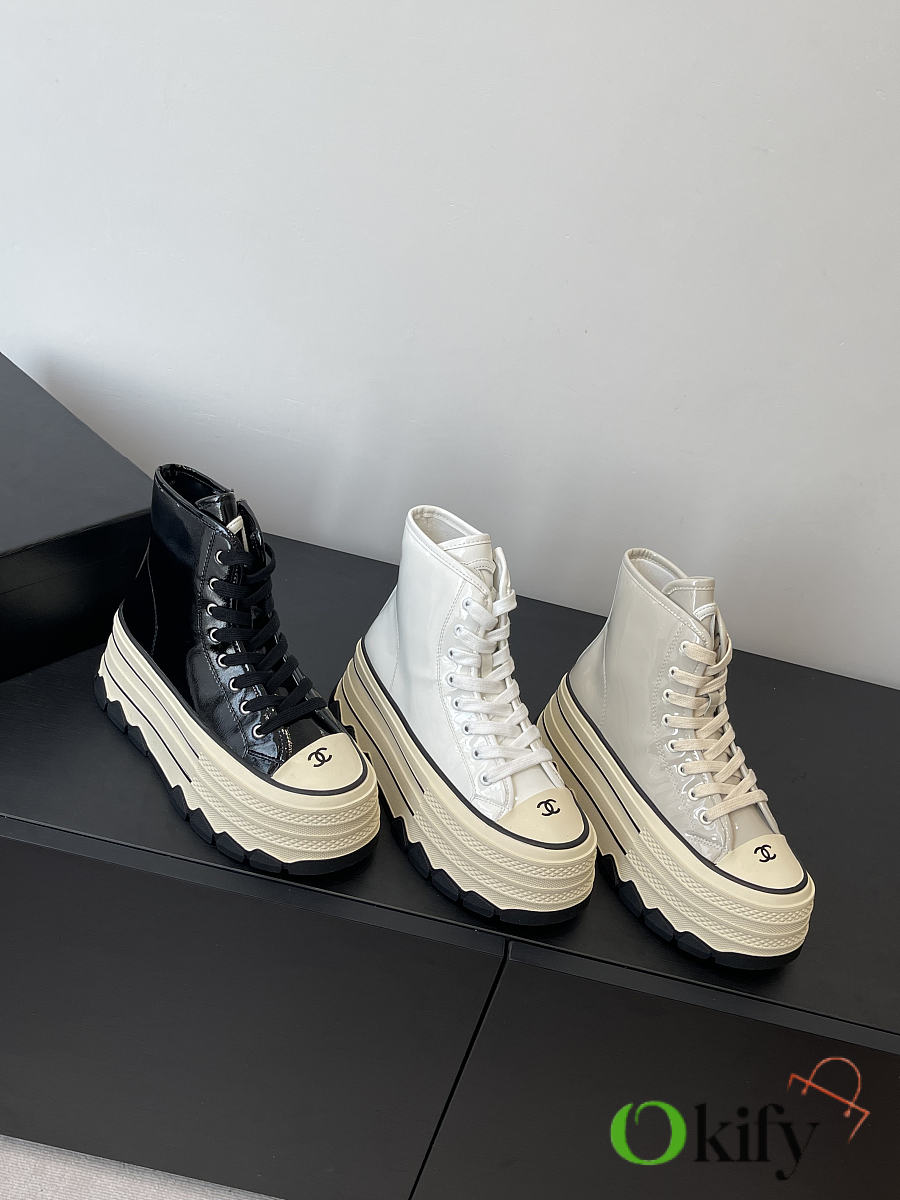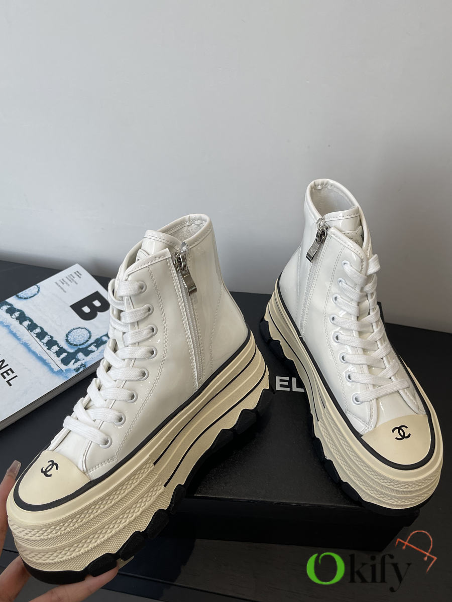 I've got this vintage-inspired retro style! The white sneakers paired with black and white color blocking have a Chanel vibe, while the socks give it a retro, preppy feel. The upper is made of cowhide and the lining is made of sheepskin. 6cm heel height, original TPU composite outsole