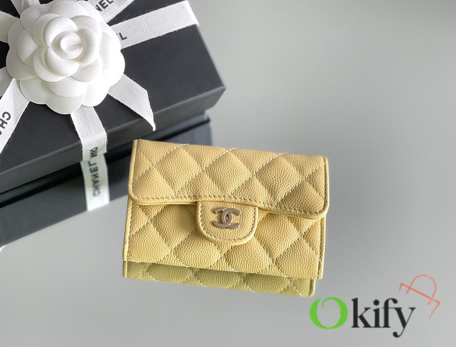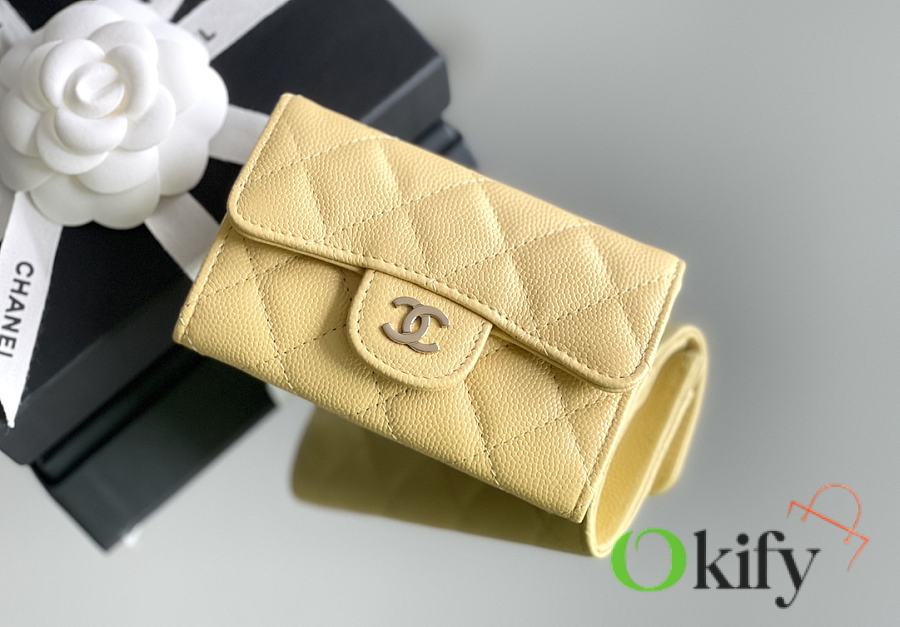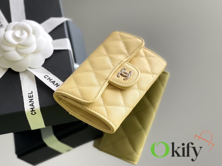 Okify CC Yellow Caviar Small Flap Wallet 11x7.5x2cm