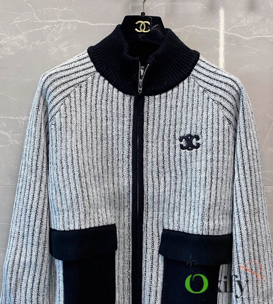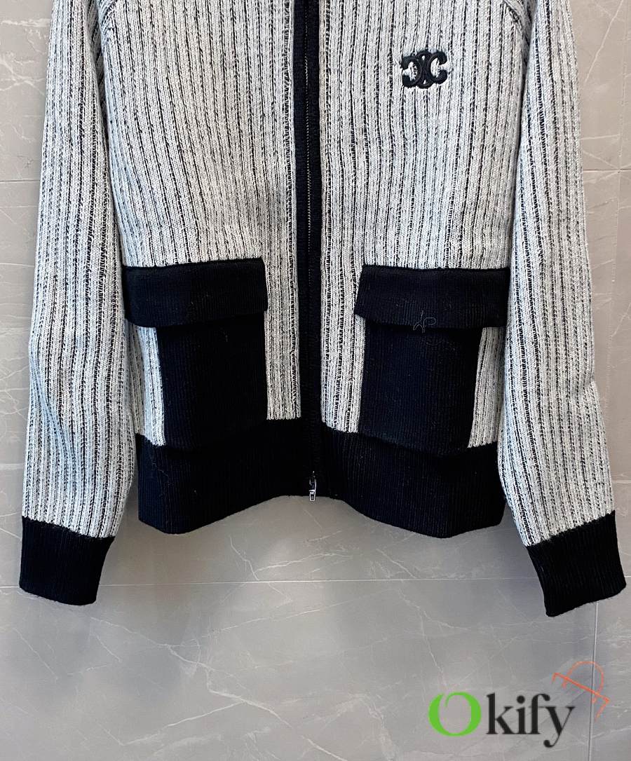 Okify Celine Black Ribbed Knit Jacket